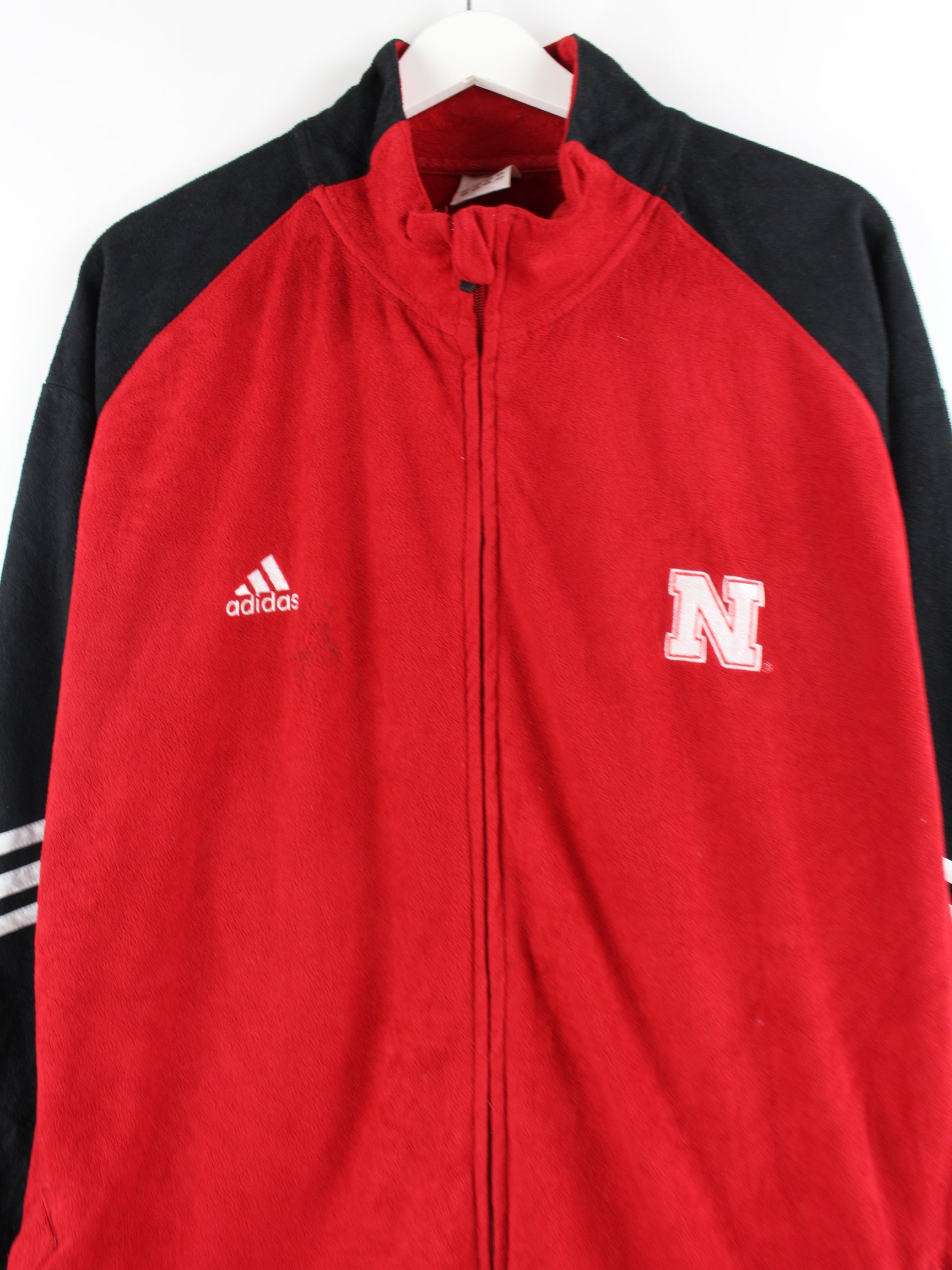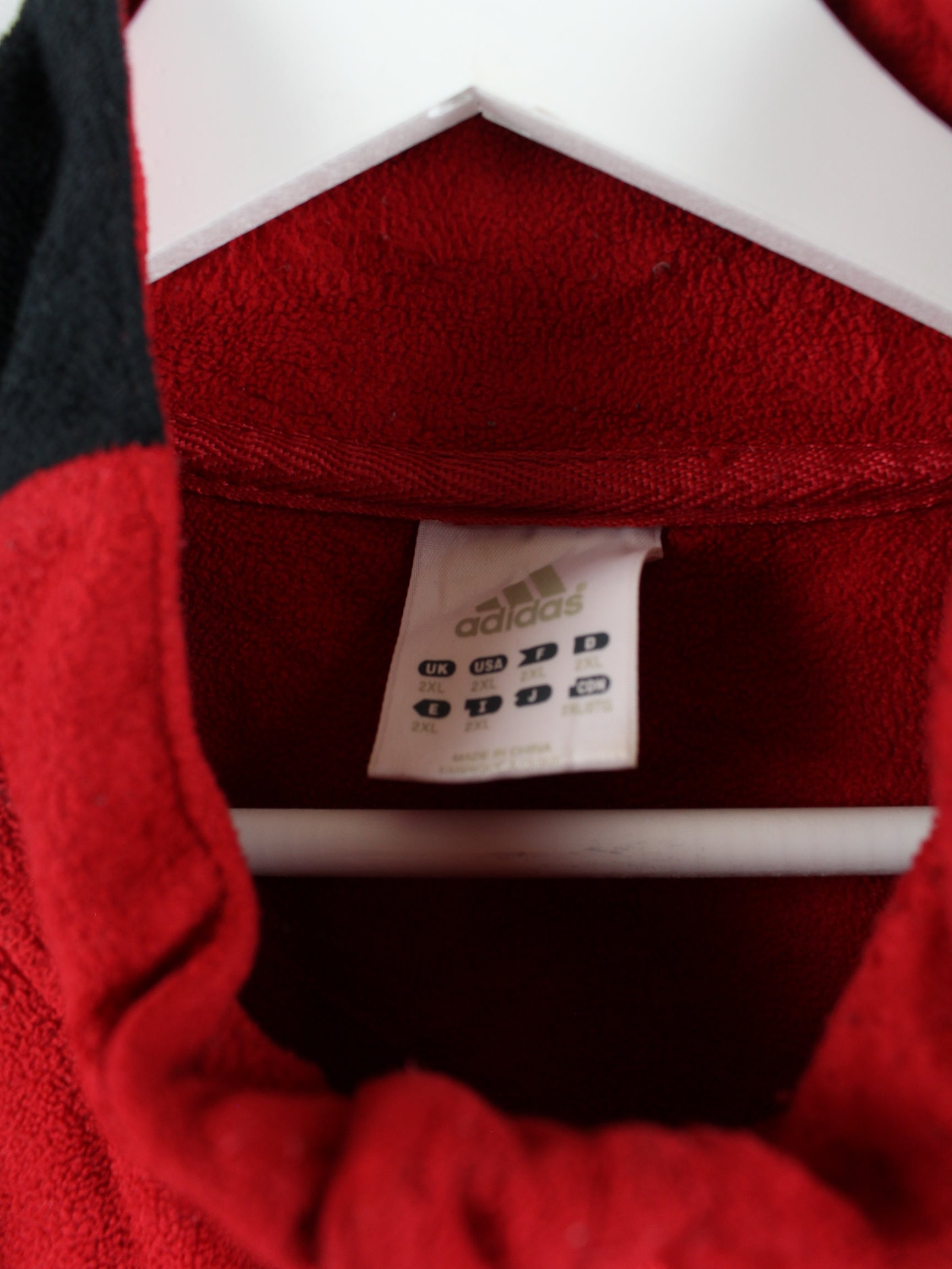 Red sweat jacket from Adidas from the early 2000s in size 3XL. It is made from a cotton blend and is in good condition.