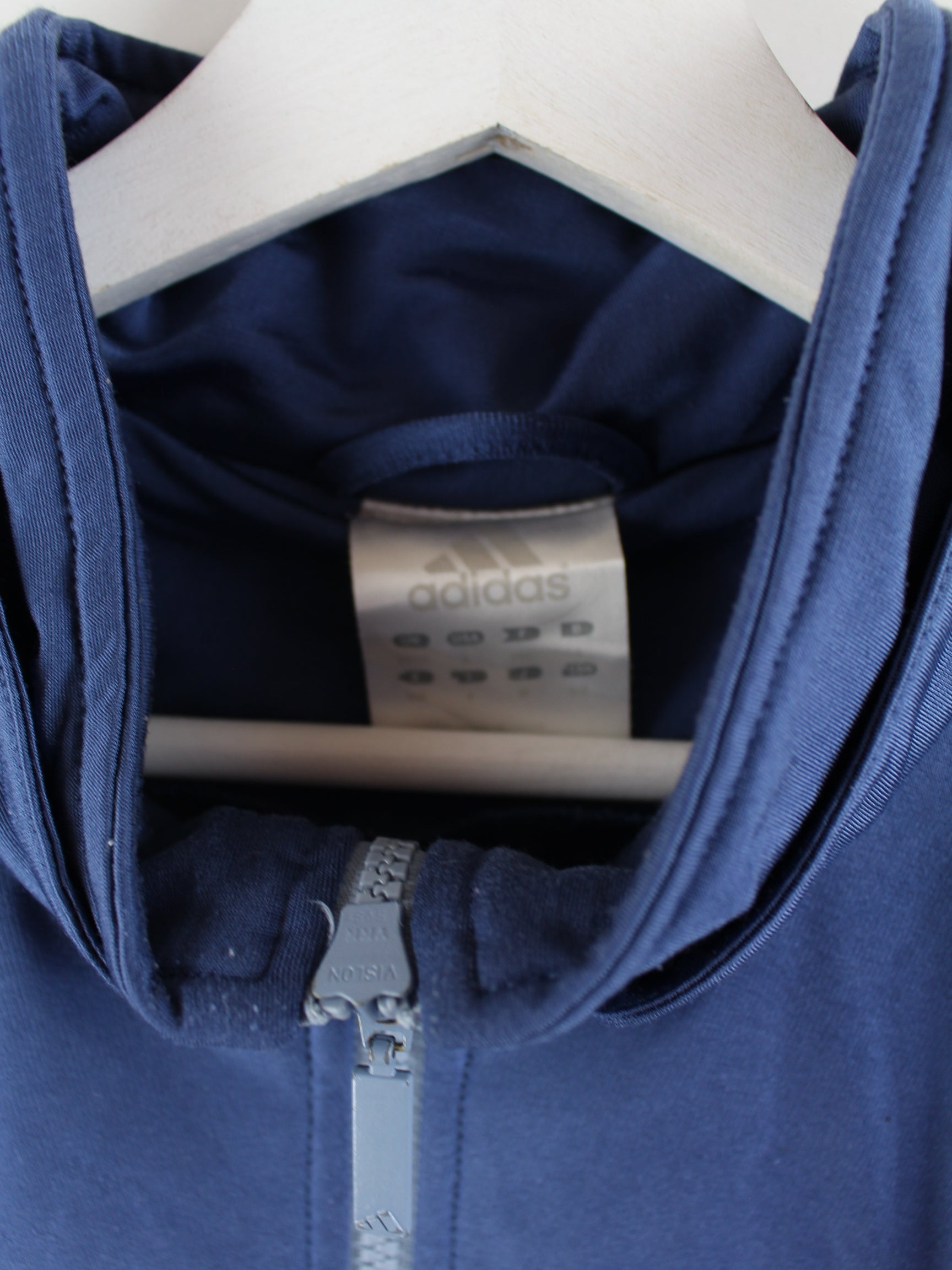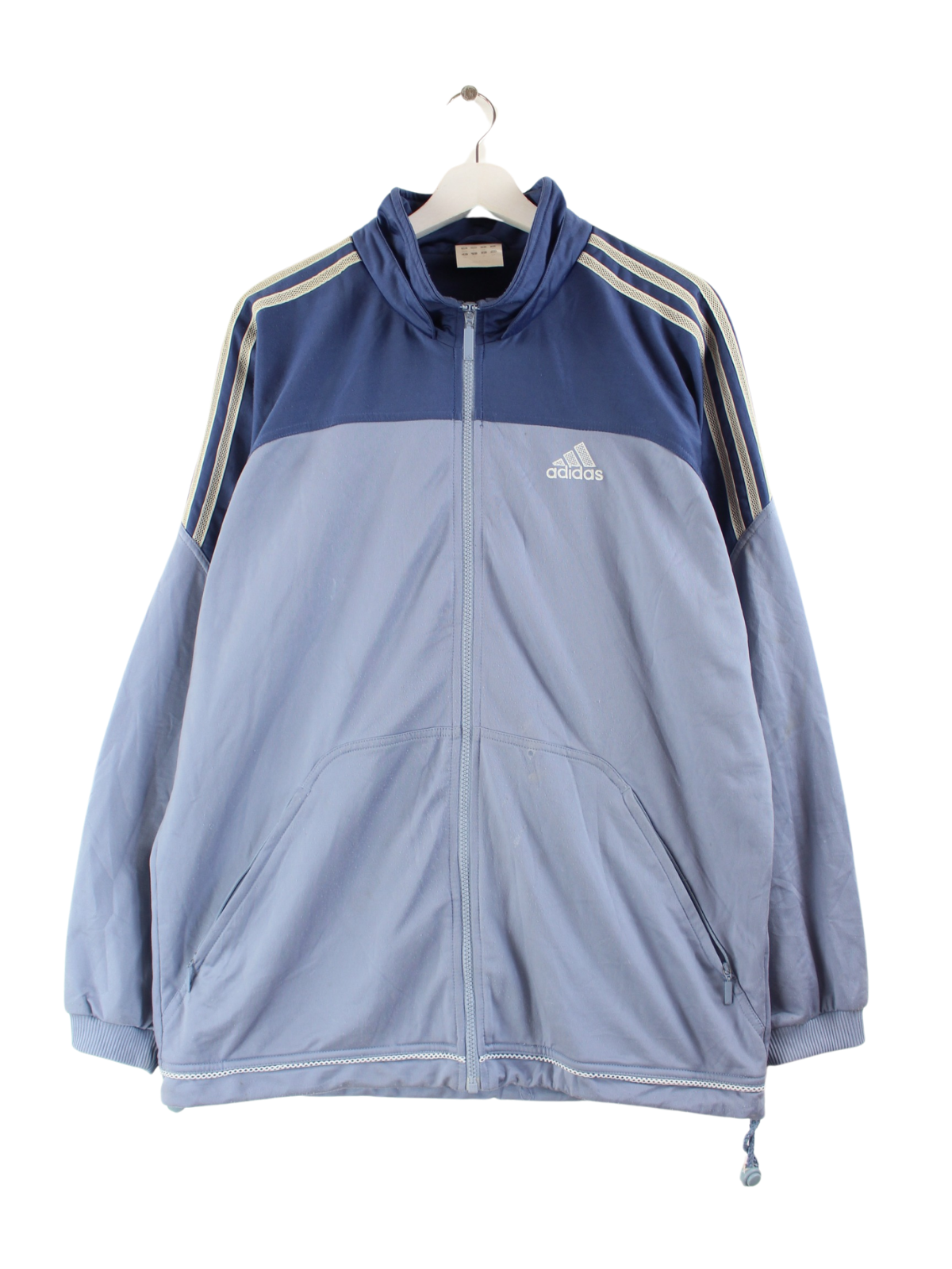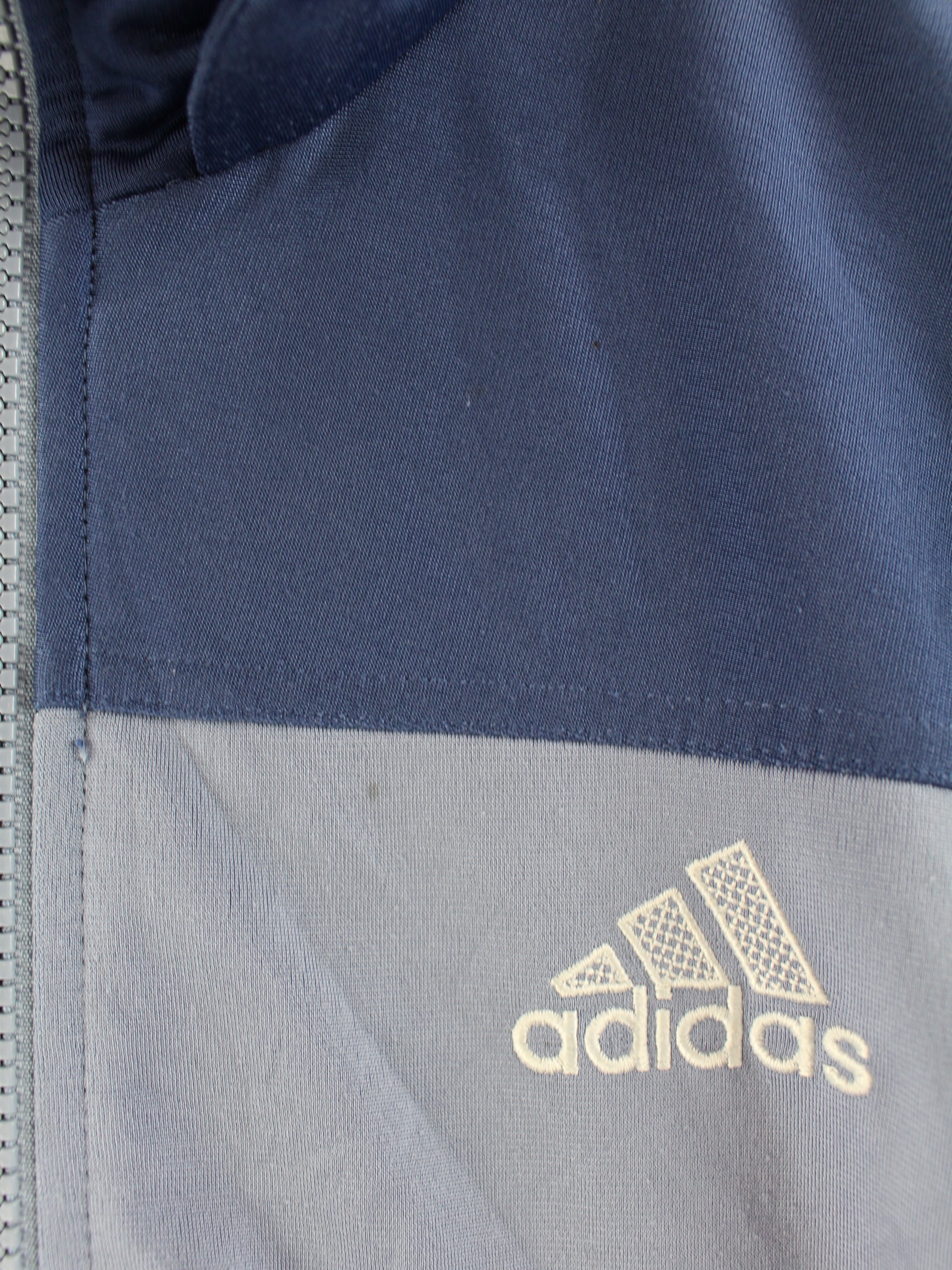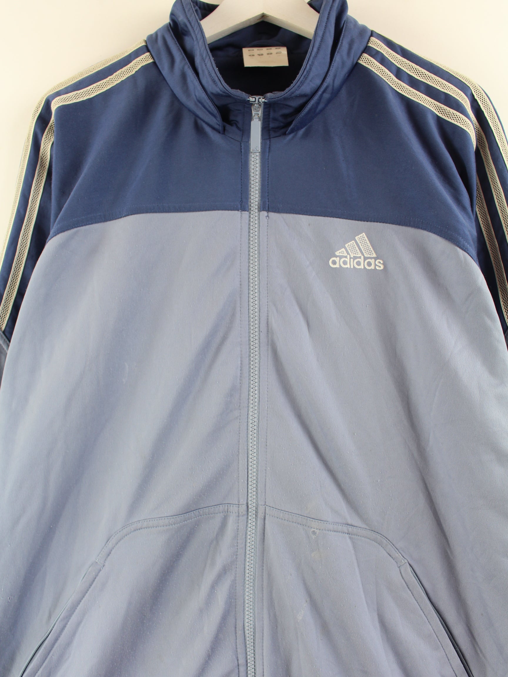Blue training jacket from the Adidas label from the early 2000s in size XL. It is made of synthetic. We would describe the condition as 'OK' (see pictures).