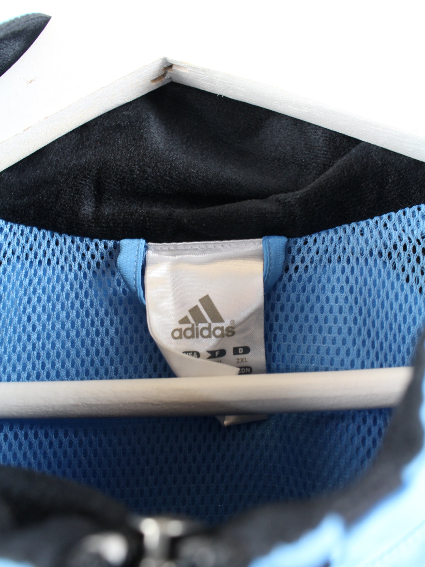 Adidas brand training jacket in size XXL from the early 2000s. It is made of synthetic and available in blue.