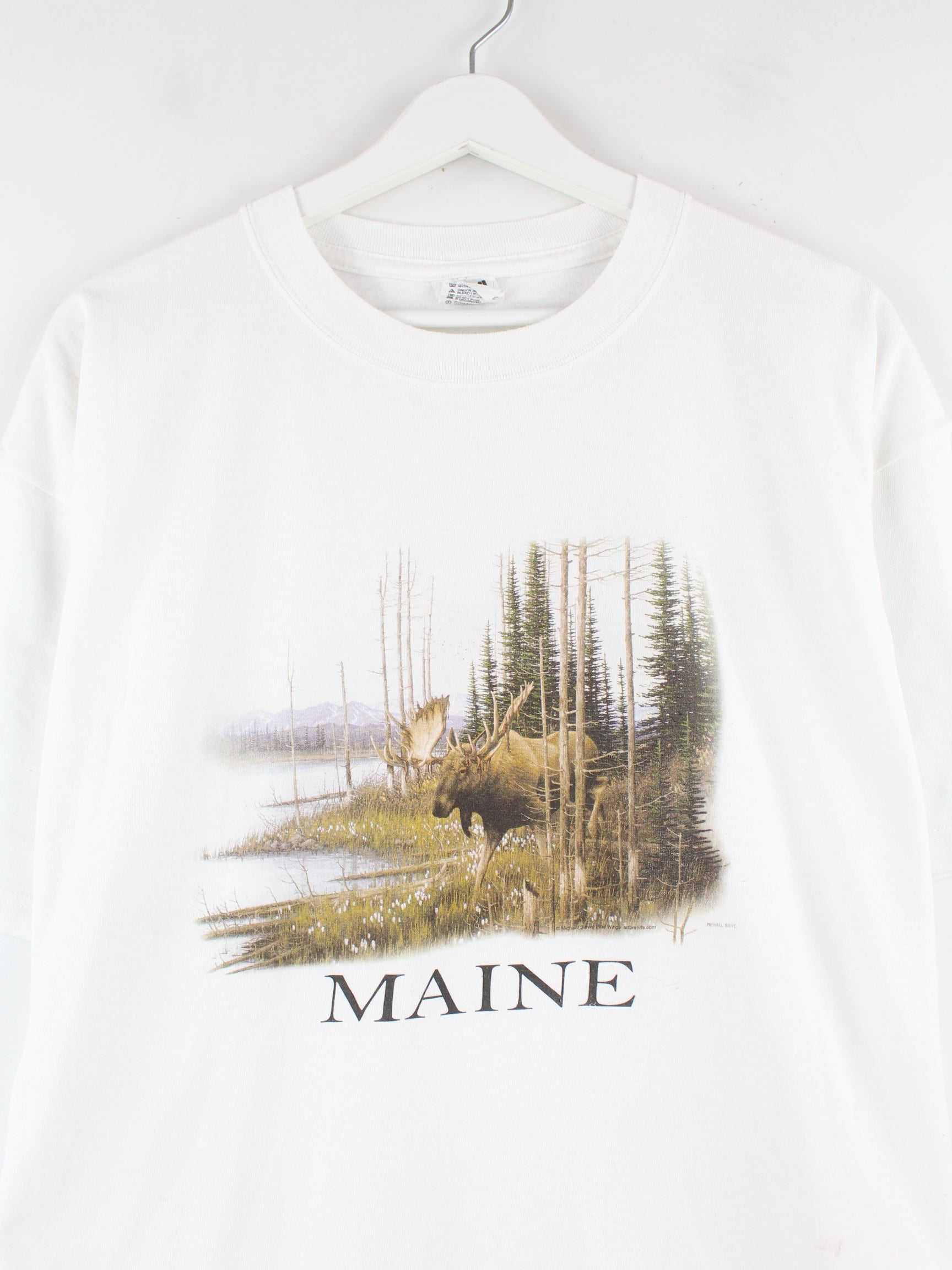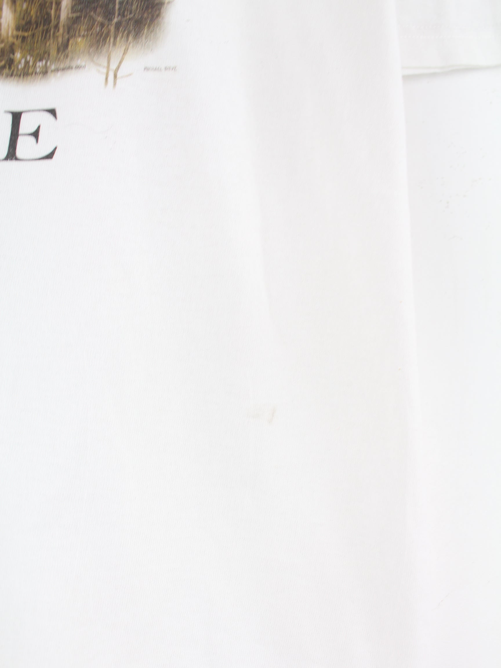 T-shirt from the label Anvil in size XL. It is made of cotton and available in white. With a rare animal print.
