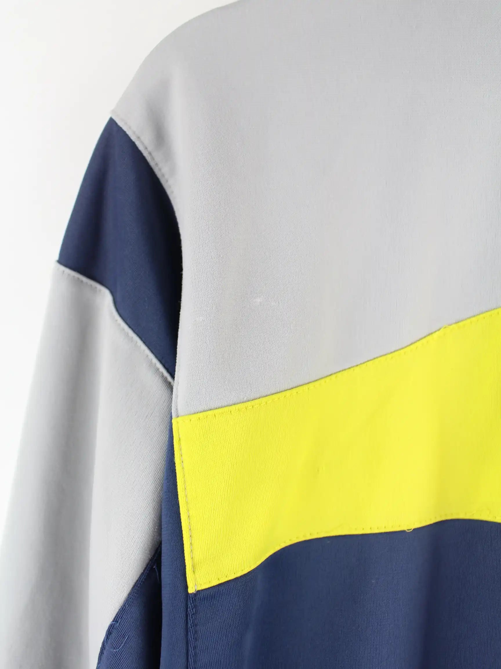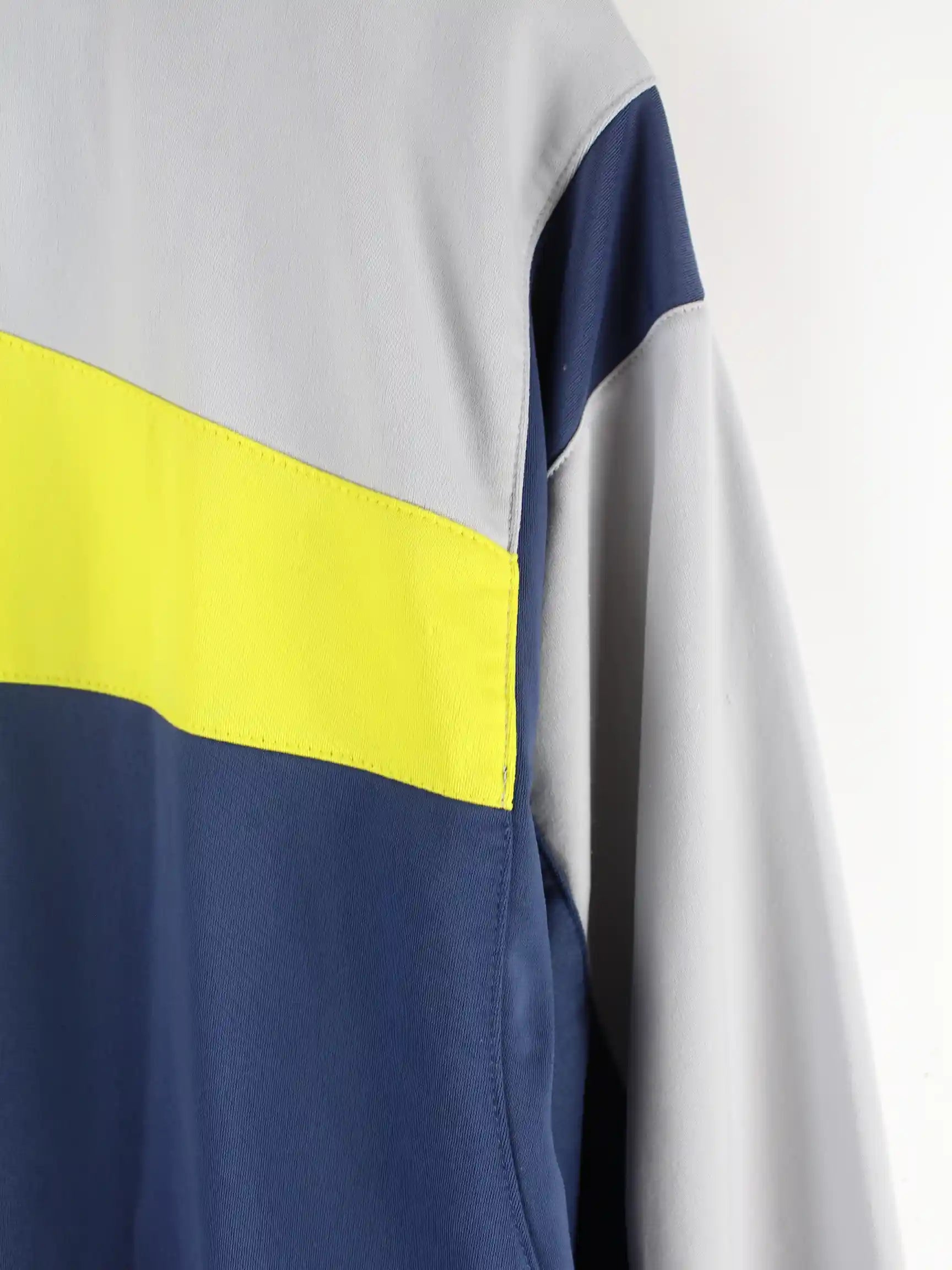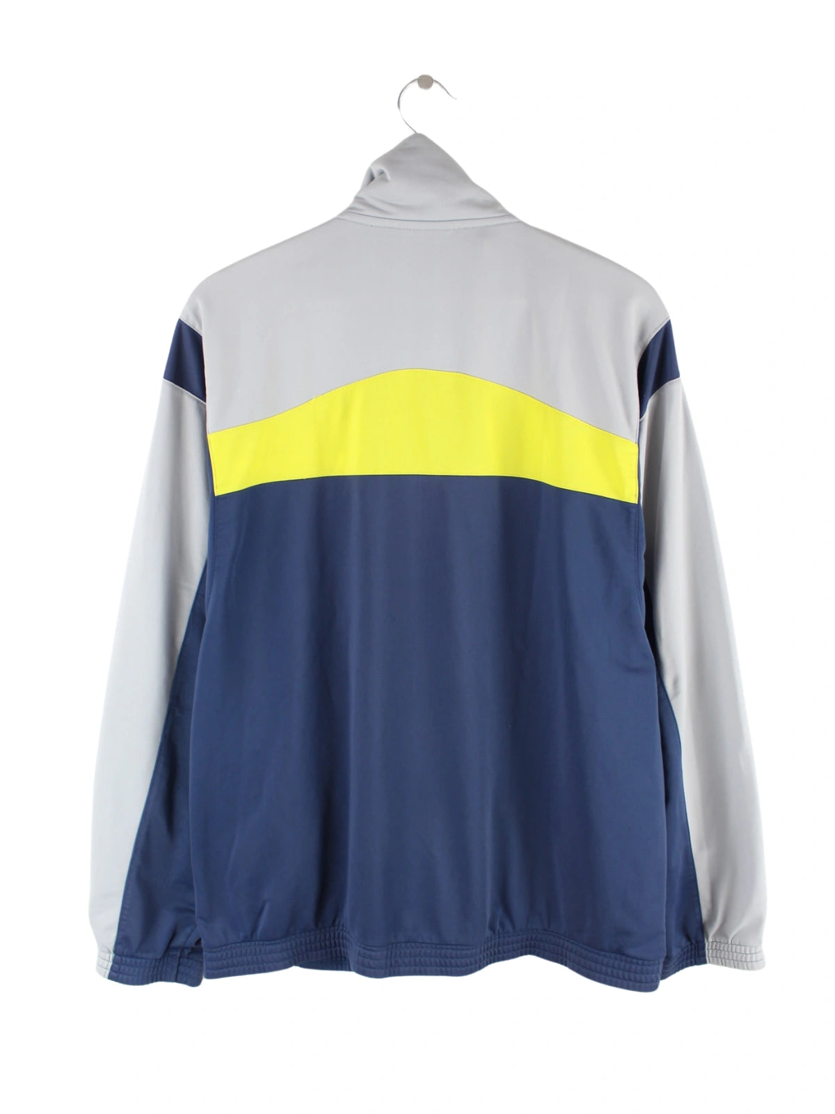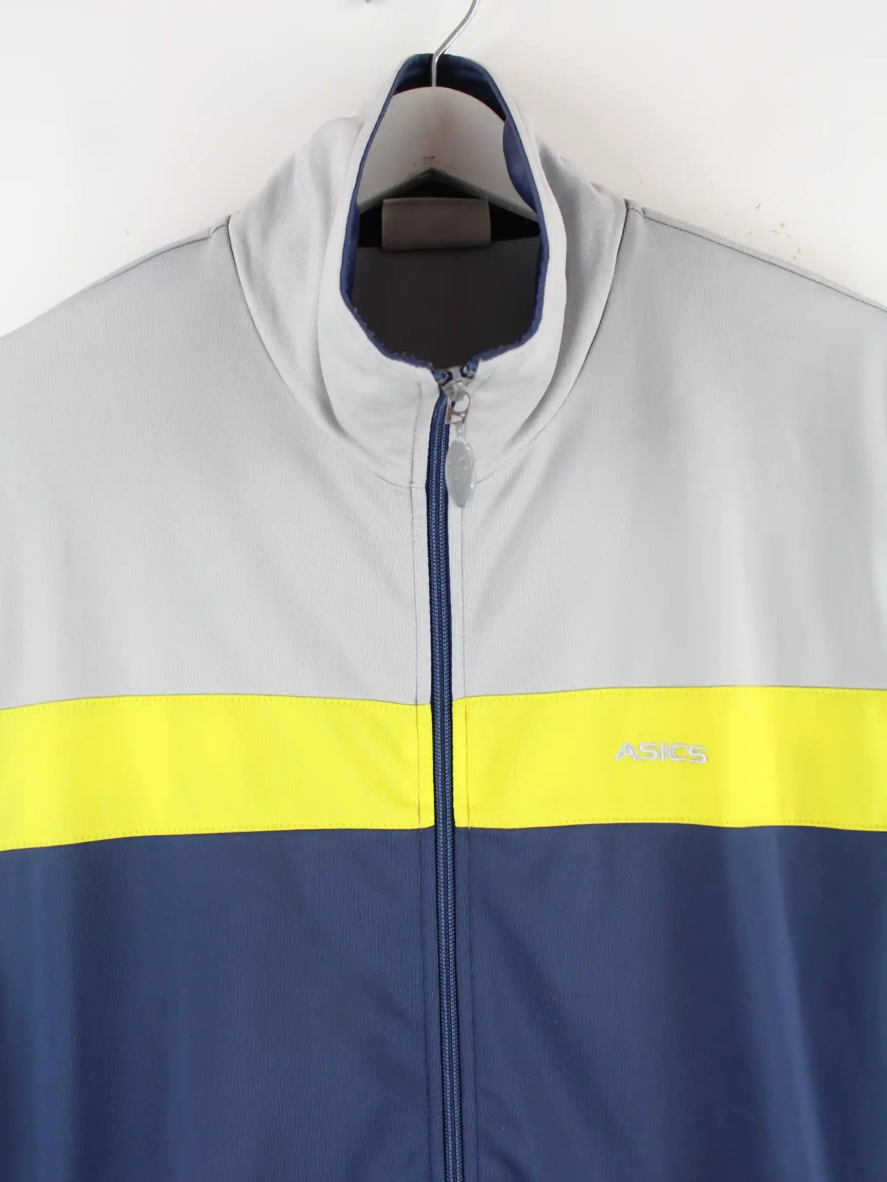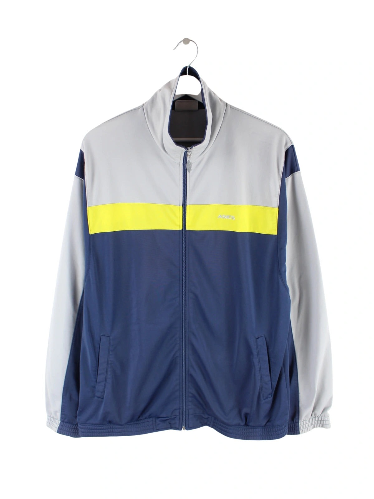 Trainingsjacke des Labels Asics in Größe XL. Sie ist aus Synthetik gemacht und in Blau bei uns zu bekommen.