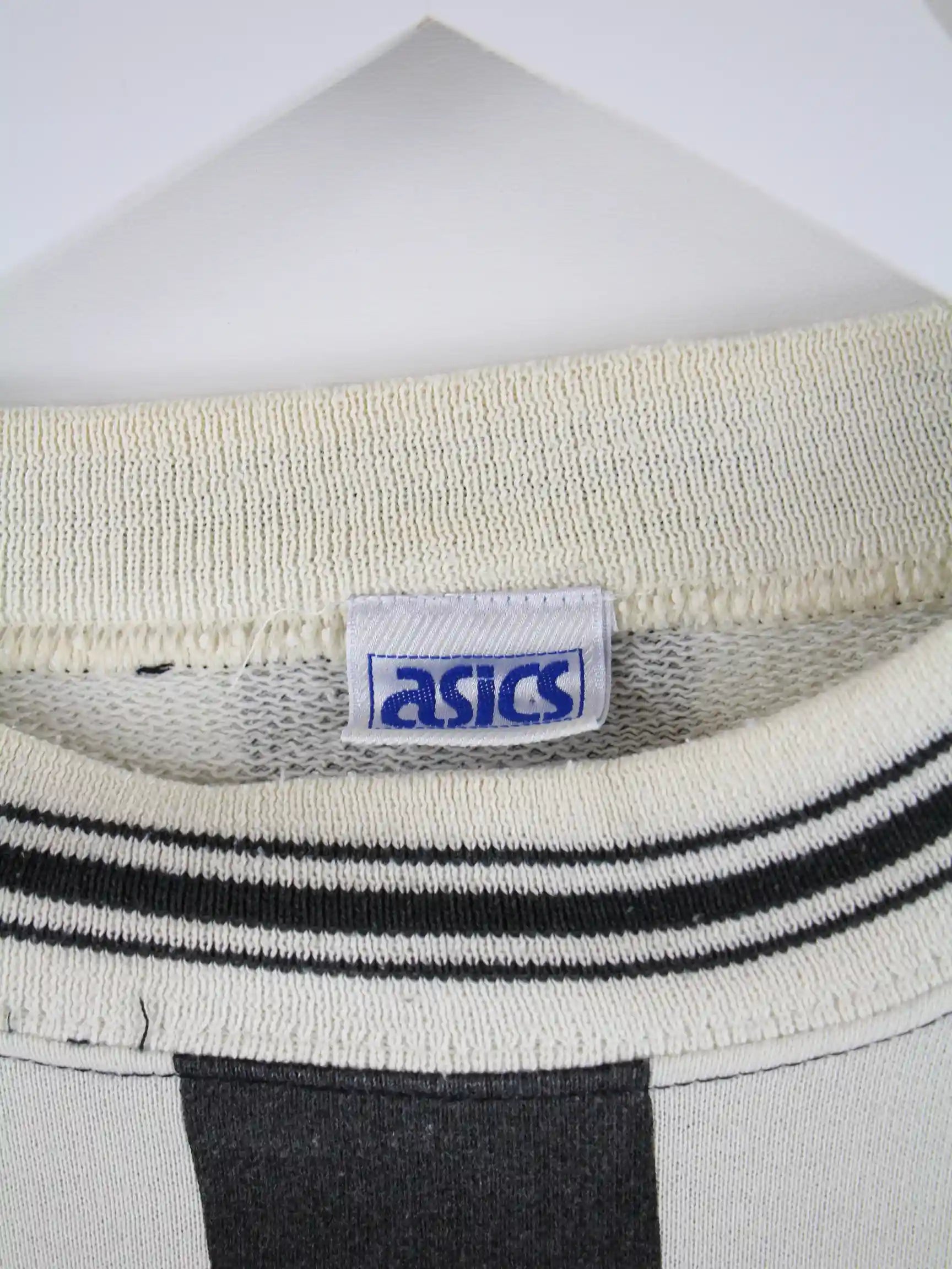 Weißer Sweater der Marke Asics aus den 90'ern in Größe XL. Er ist aus einer Baumwollmischung hergestellt und in gutem Zustand im Bestand.
