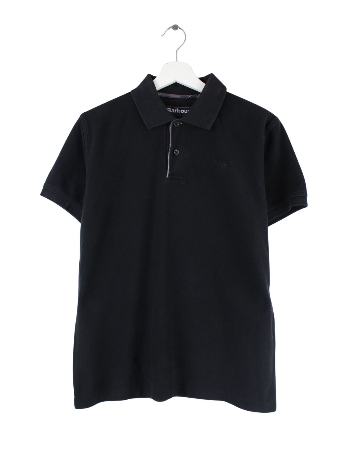 Schwarzes Poloshirt aus dem Hause Barbour in Größe M. Es ist aus Baumwolle hergestellt und in sehr gutem Zustand vorrätig.
