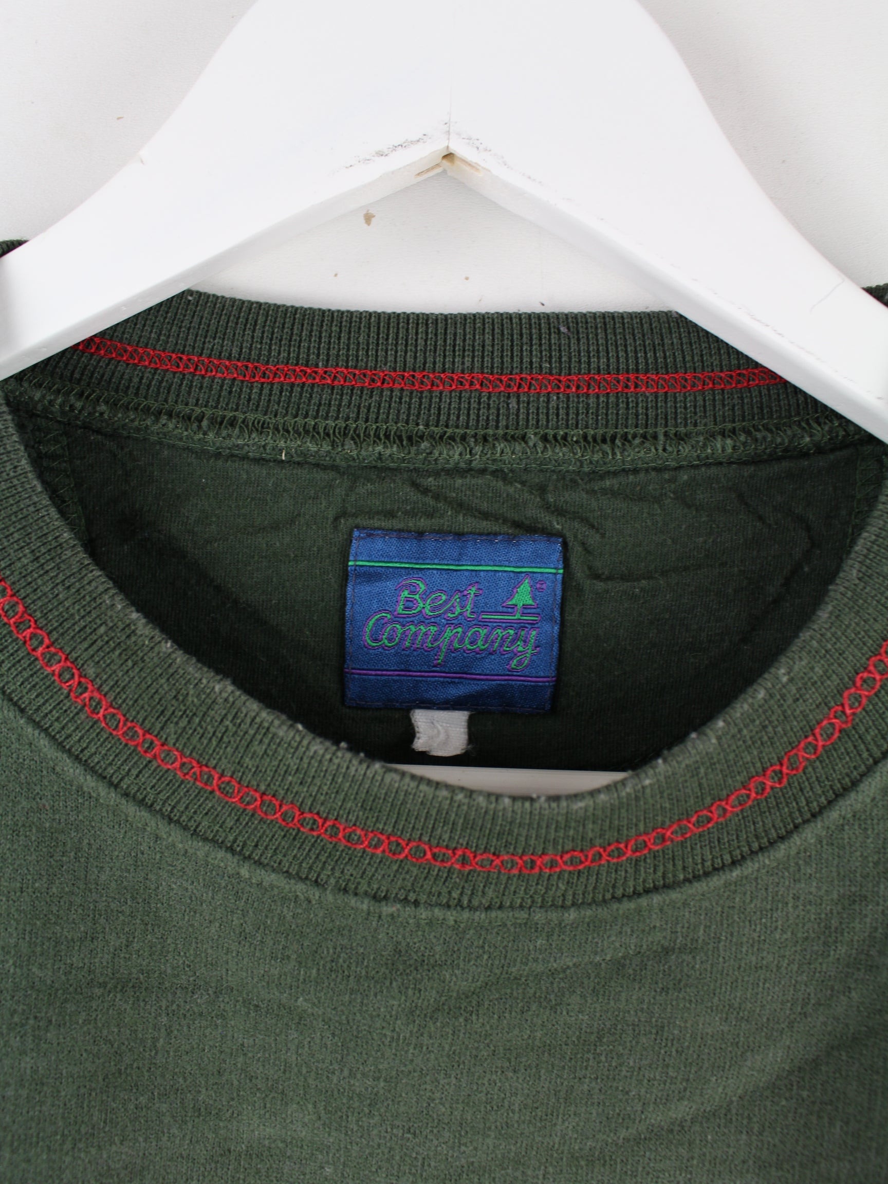 Grüner Sweater mit gesticktem Logo der Brand Best Company aus den 90'ern in Größe XL. Er ist aus einer Baumwollmischung gefertigt und in sehr gutem Zustand im Angebot.