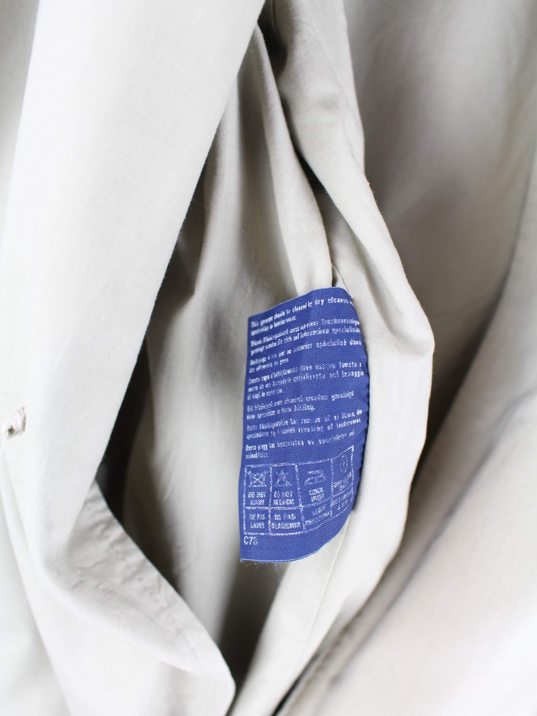 Beigefarbener Mantel vom Label Burberry aus den 80'ern in Größe XL. Er ist aus Baumwolle gemacht. Den Zustand würden wir als 'In Ordnung' bezeichnen (vergl. Bilder).