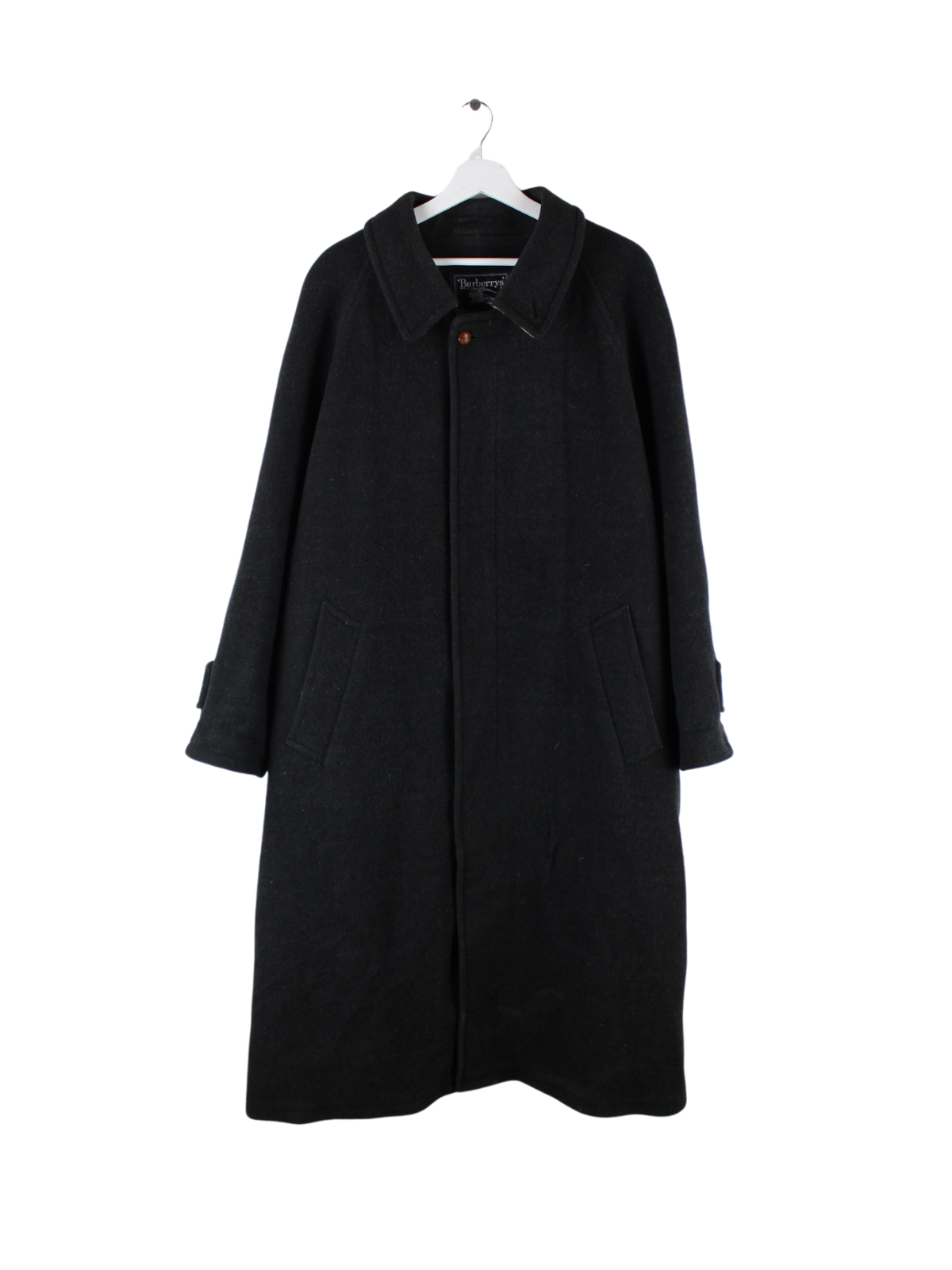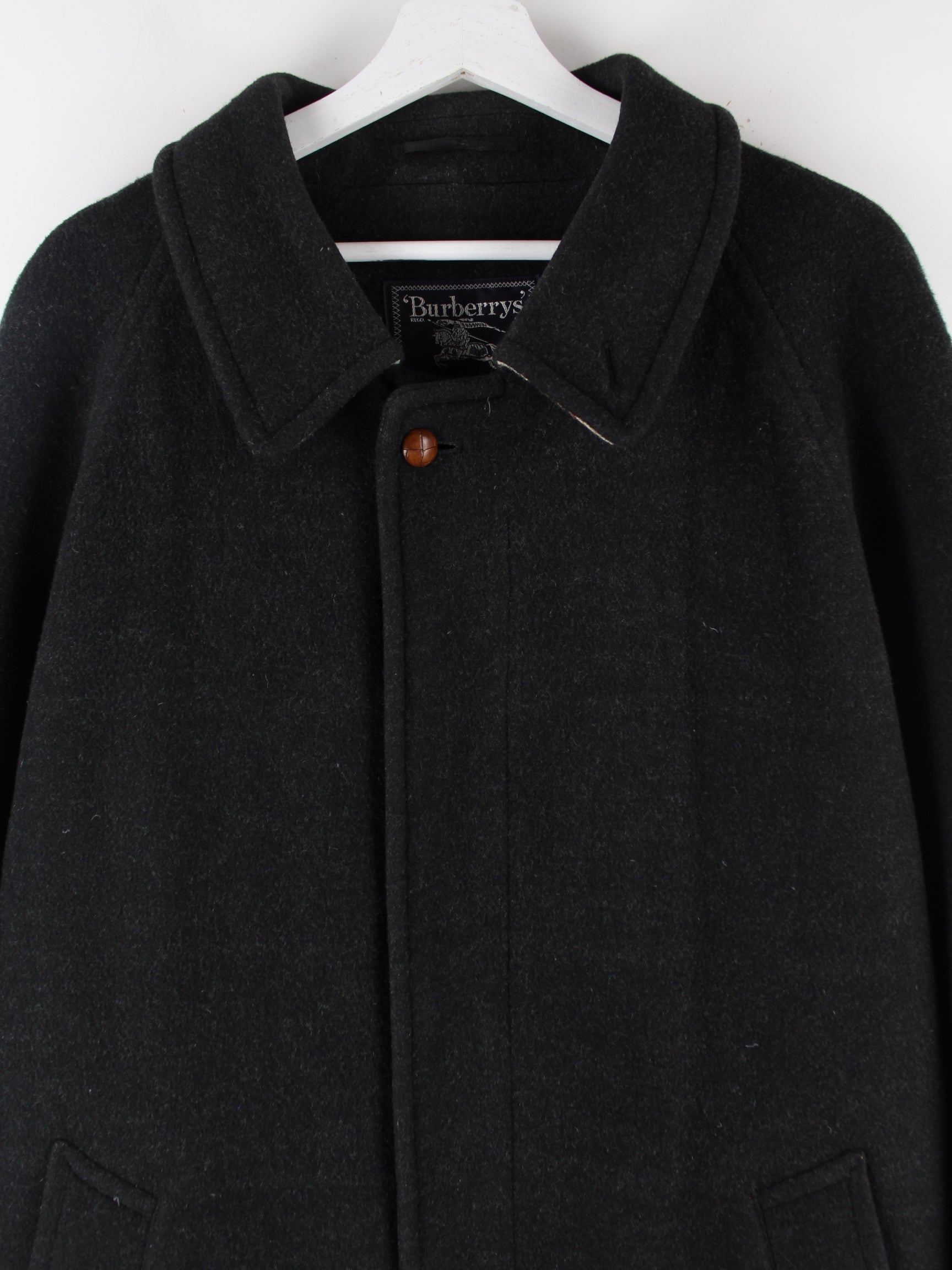 Mantel der Brand Burberry in Größe XL aus den 80'ern. Er ist aus einer Wollmischung gemacht und in Grau in Stock.