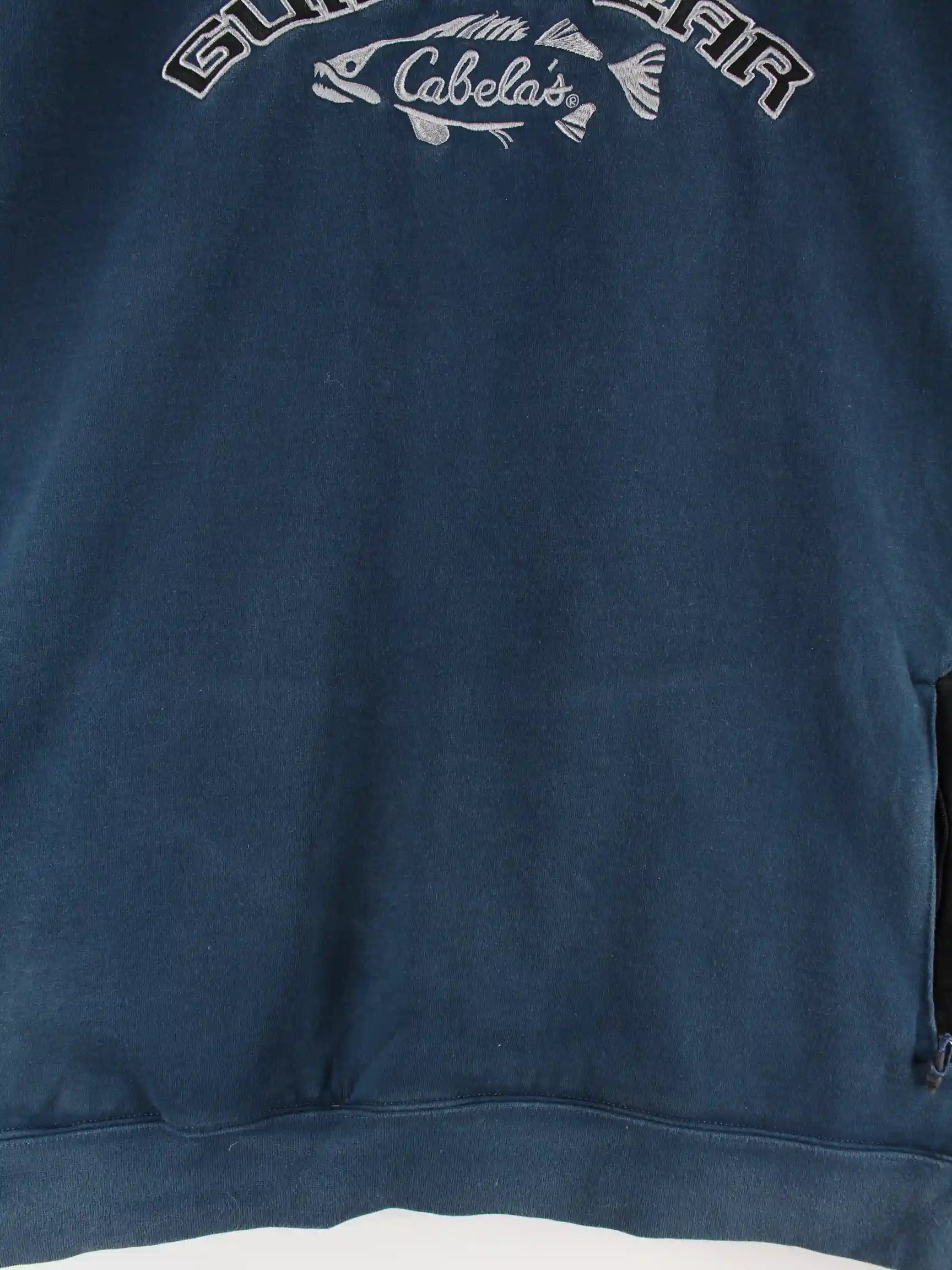 Blauer Hoodie mit Stick der Brand Cabela's in Größe 3XL. Er ist aus einer Baumwollmischung hergestellt und in gutem Zustand vorrätig.