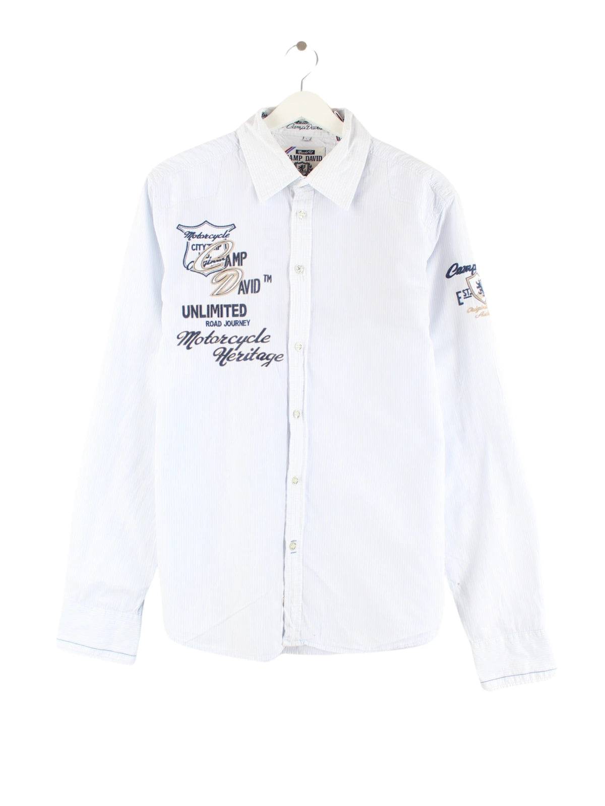 Freizeit Hemd vom Brand Camp David mit Stick in Größe L. Es ist aus Baumwolle und in Blau auf Lager.