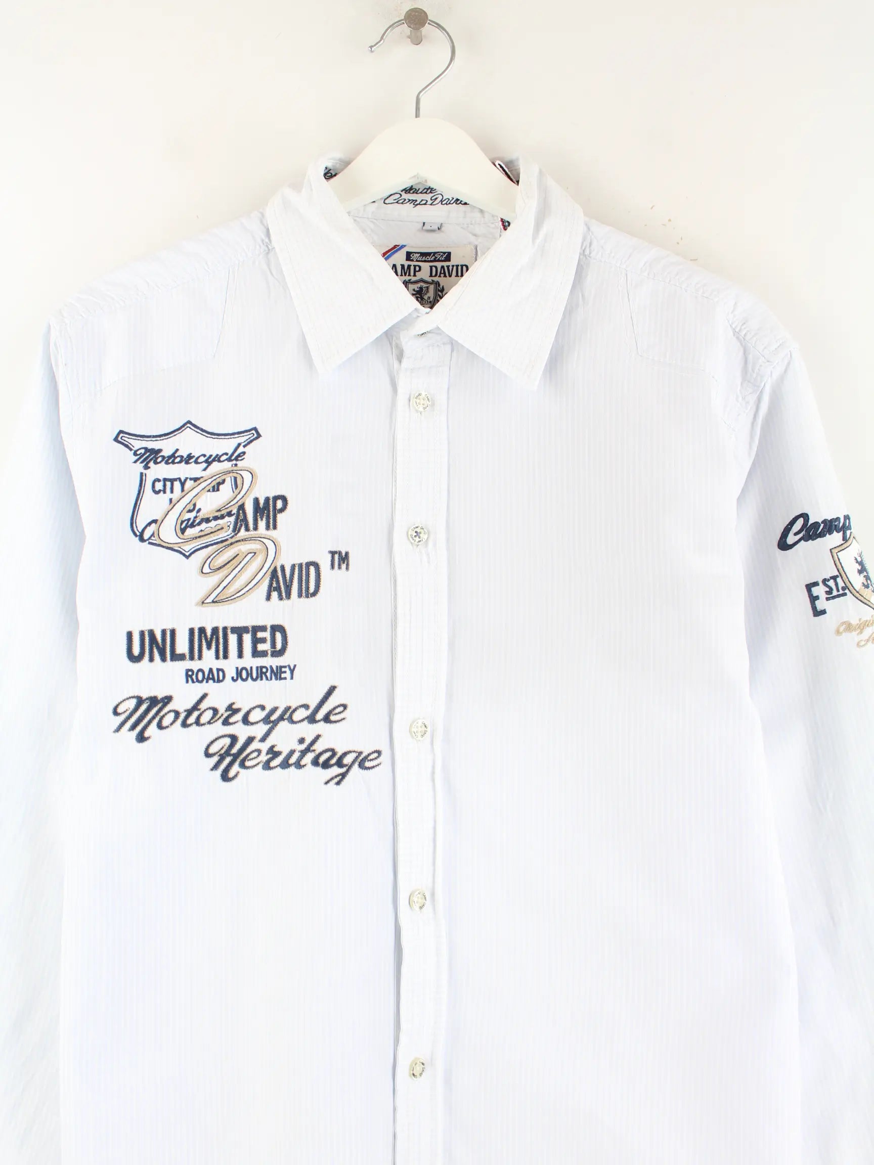 Camp David 00s Embroidered Hemd Blau L