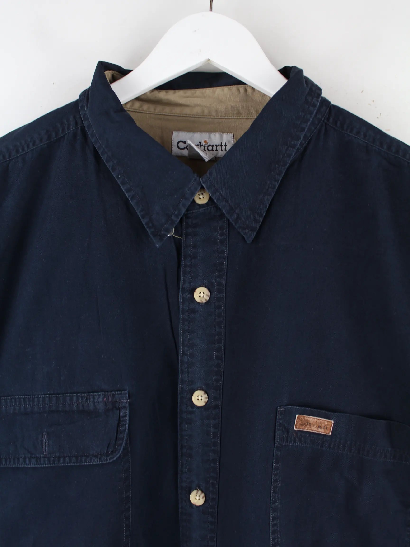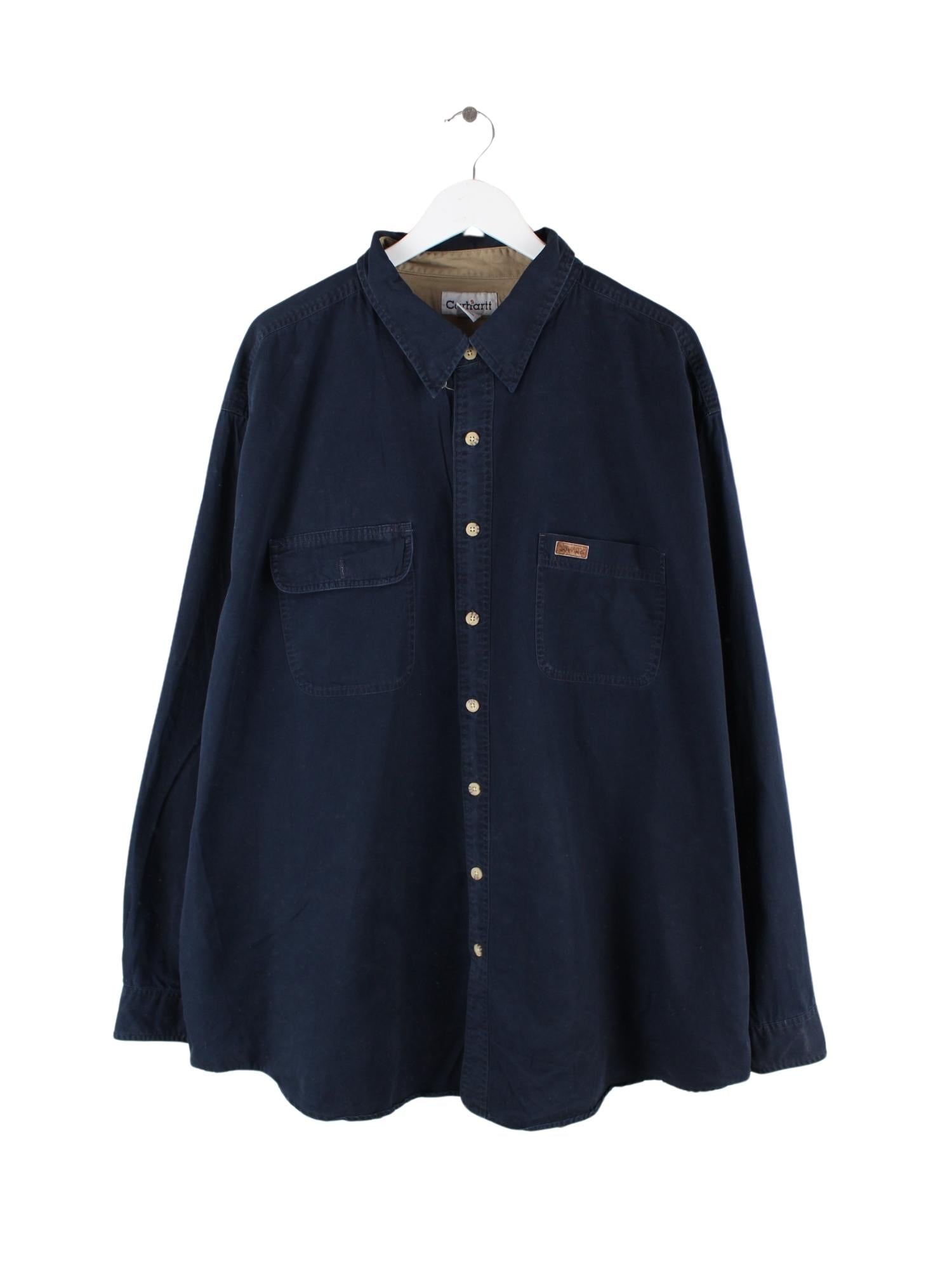Freizeit Hemd der Brand Carhartt in Größe 3XL aus den 90'ern. Es ist aus Baumwolle und in Blau in Stock.