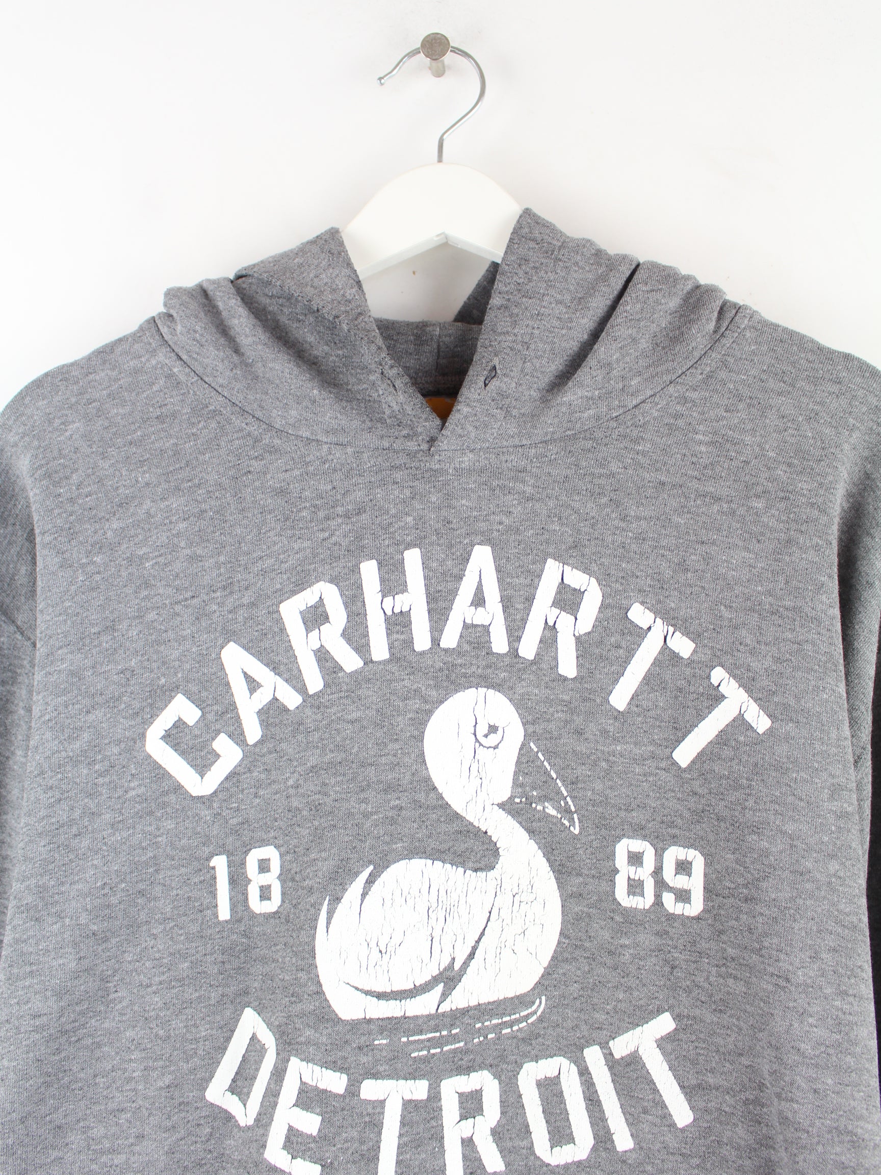 Hoodie from the Carhartt label in size XL. It is made from a cotton blend and is available in grey. With a chic Detroit print.