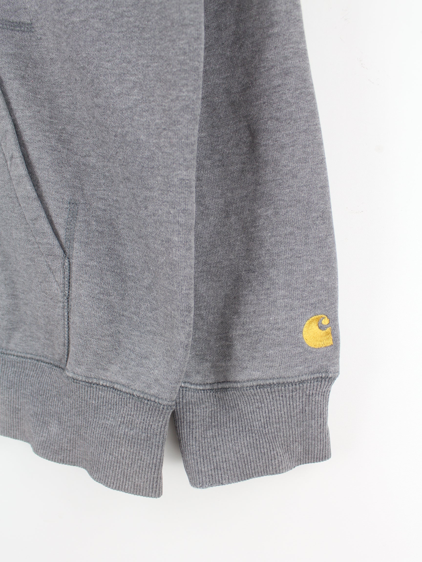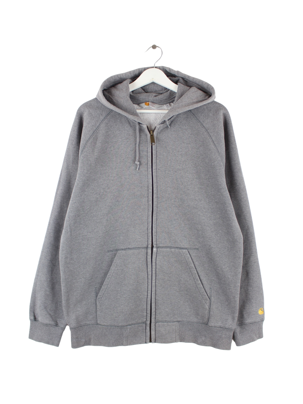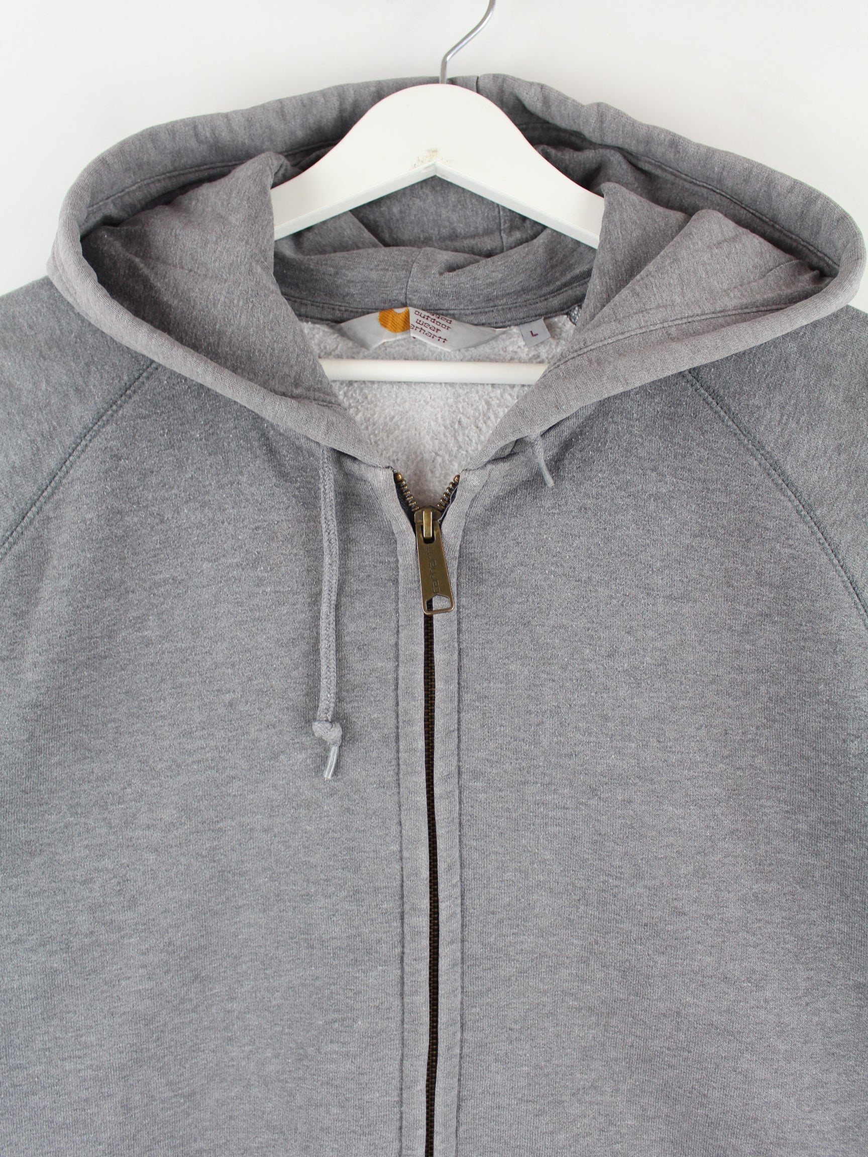 Grey hoodie with zipper from the label Carhartt in size L. It is made of a cotton blend and is in very good condition.