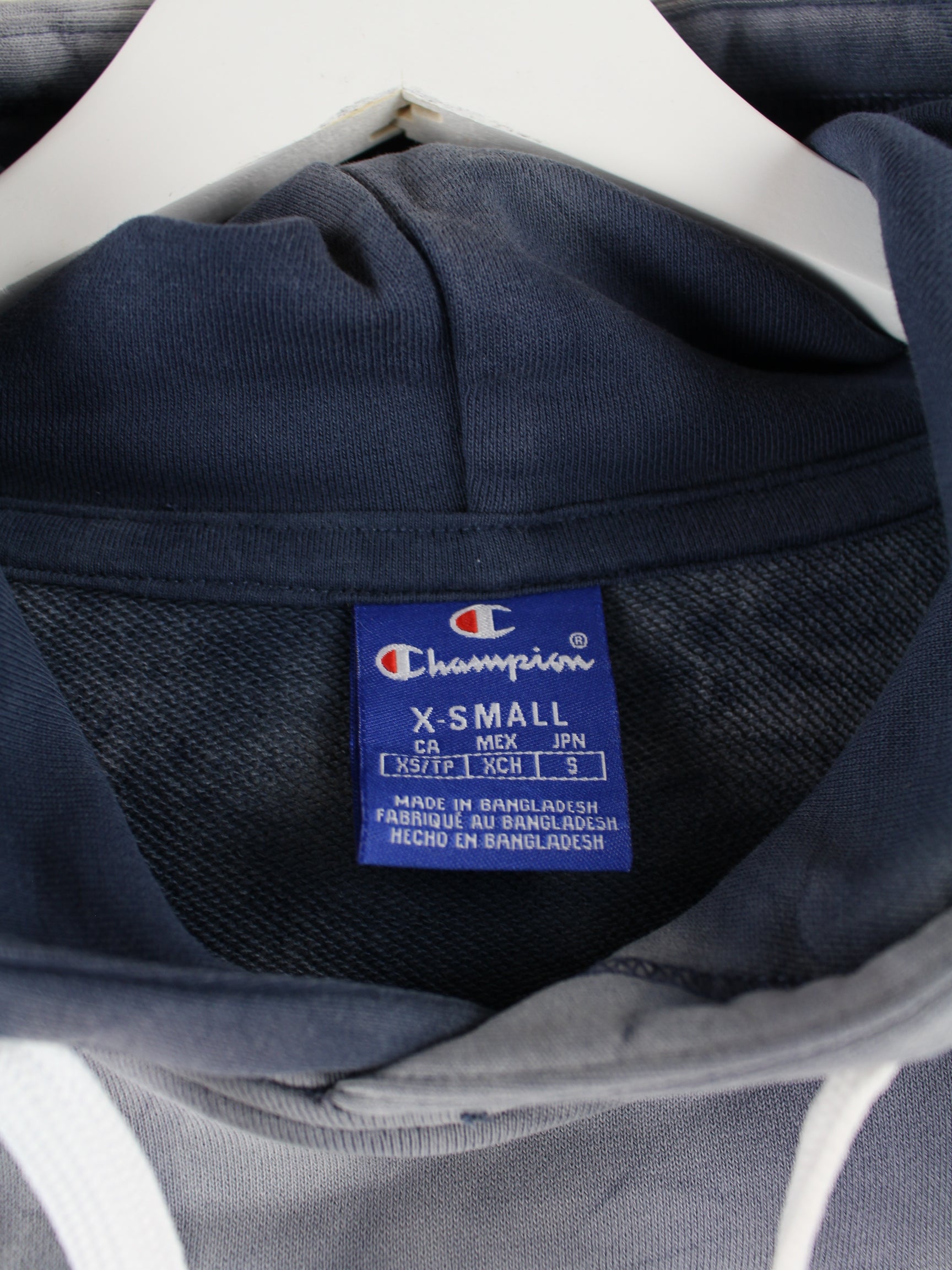 Grey hoodie with embroidery from the Champion brand in size XS. It is made from a cotton blend and is in good condition.