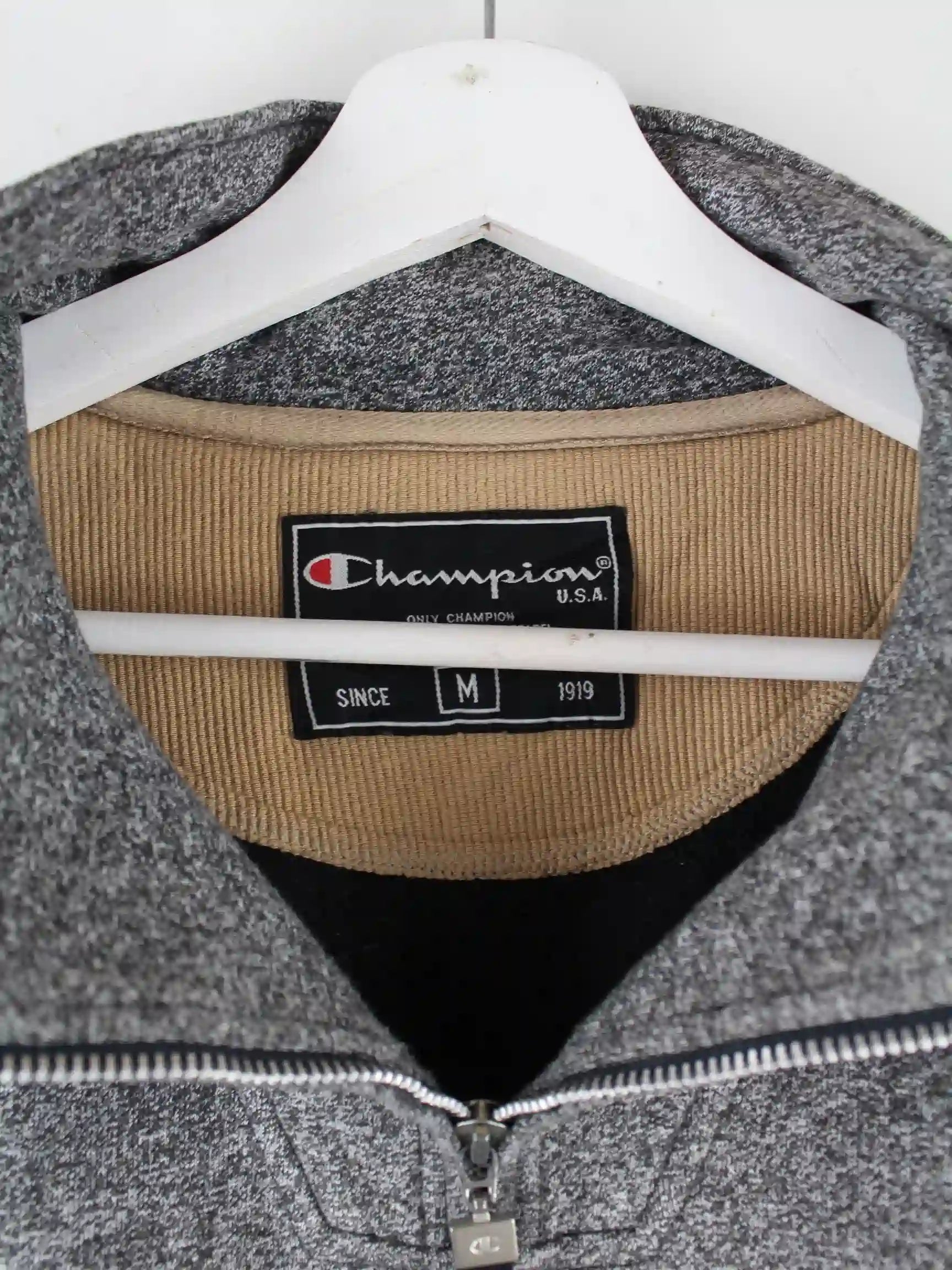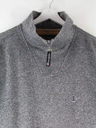 Sweater aus dem Hause Champion mit kurzem Reißverschluß in Größe M. Er ist aus einer Baumwollmischung produziert und in Grau vorrätig.
