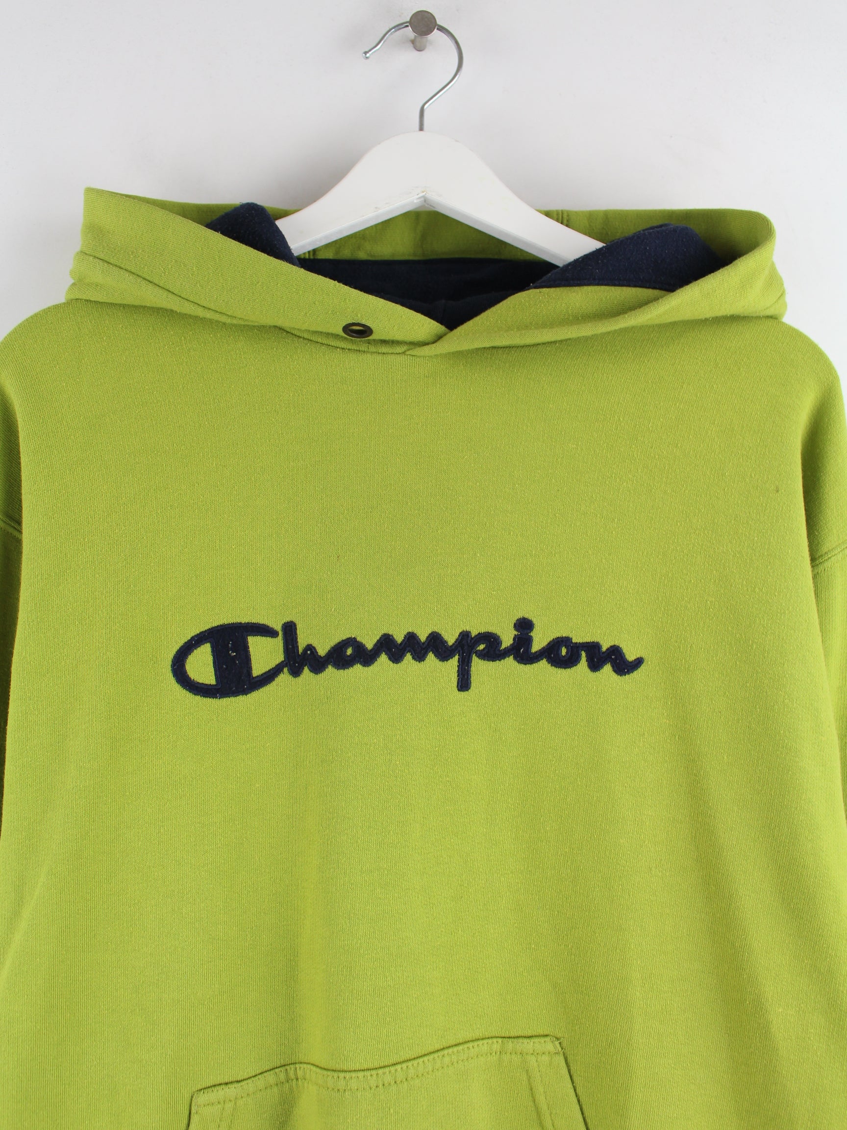 Hoodie from the brand Champion in size XL. It is made from a cotton blend and is available in green.