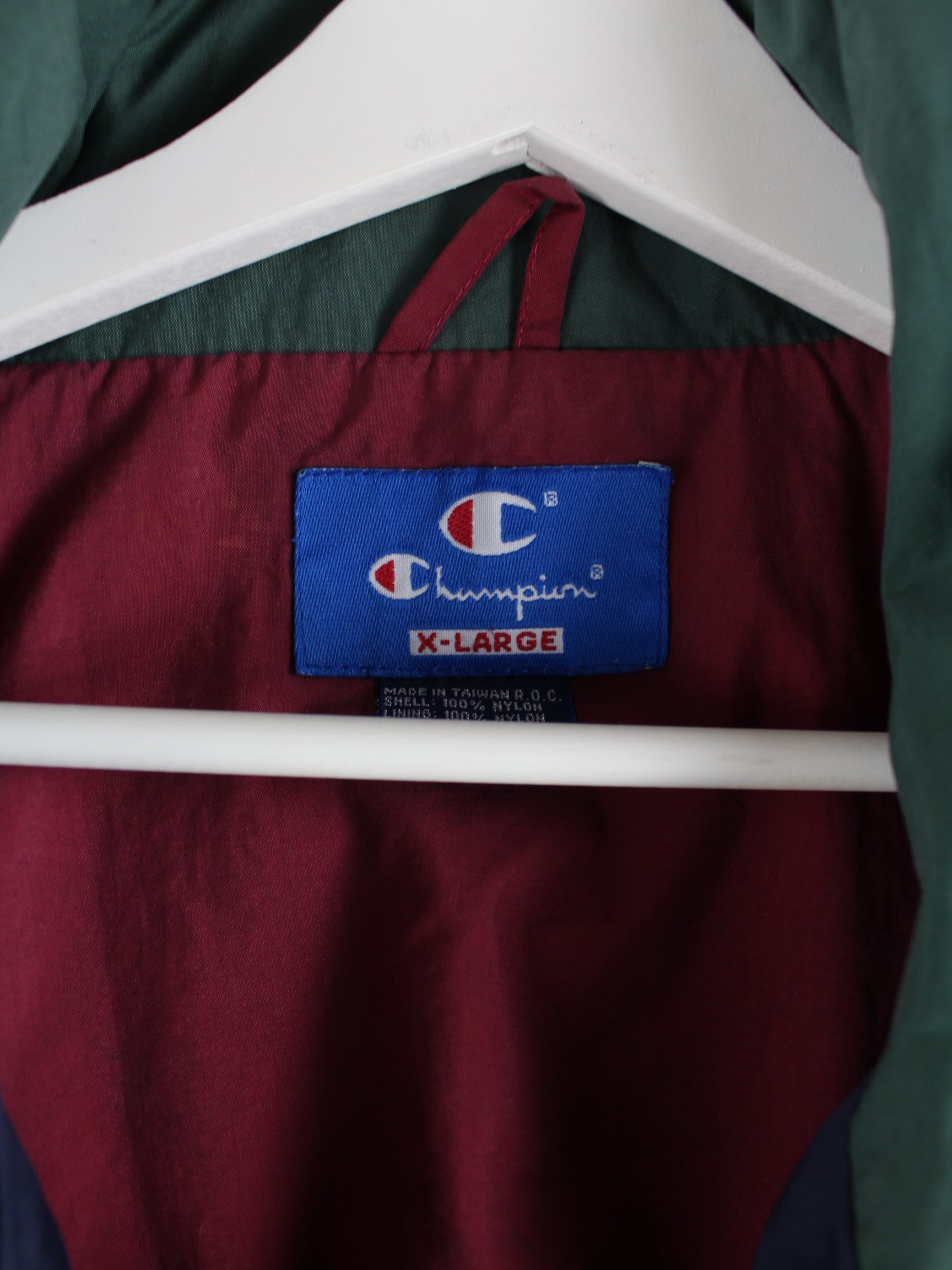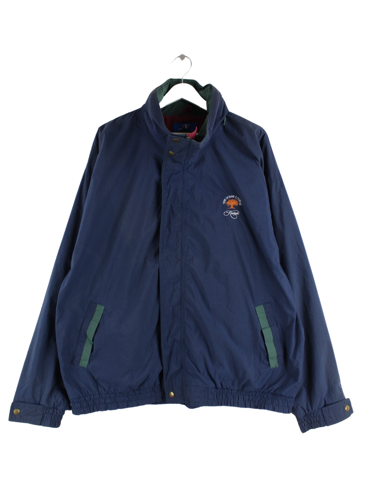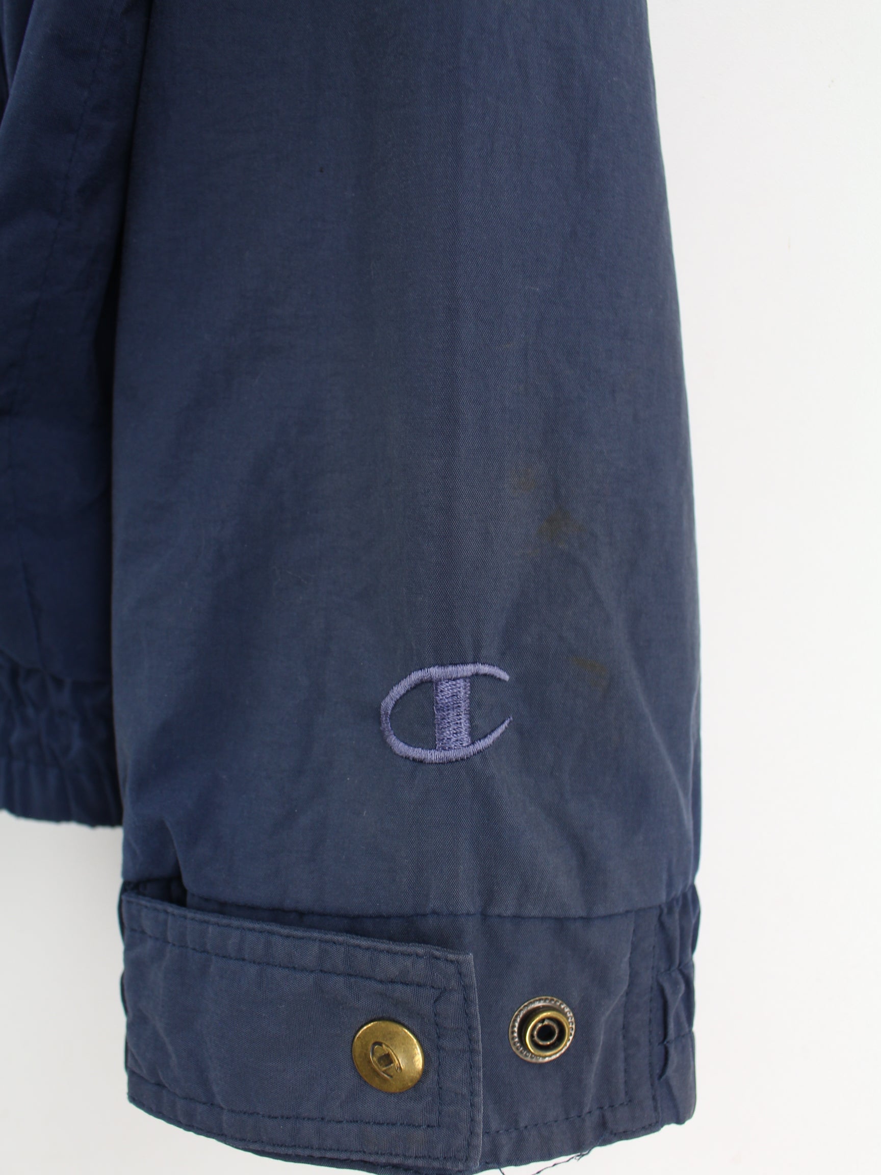 Lightweight jacket from the Champion brand in size XL from the 90's. It is made of synthetic material and is available in blue.