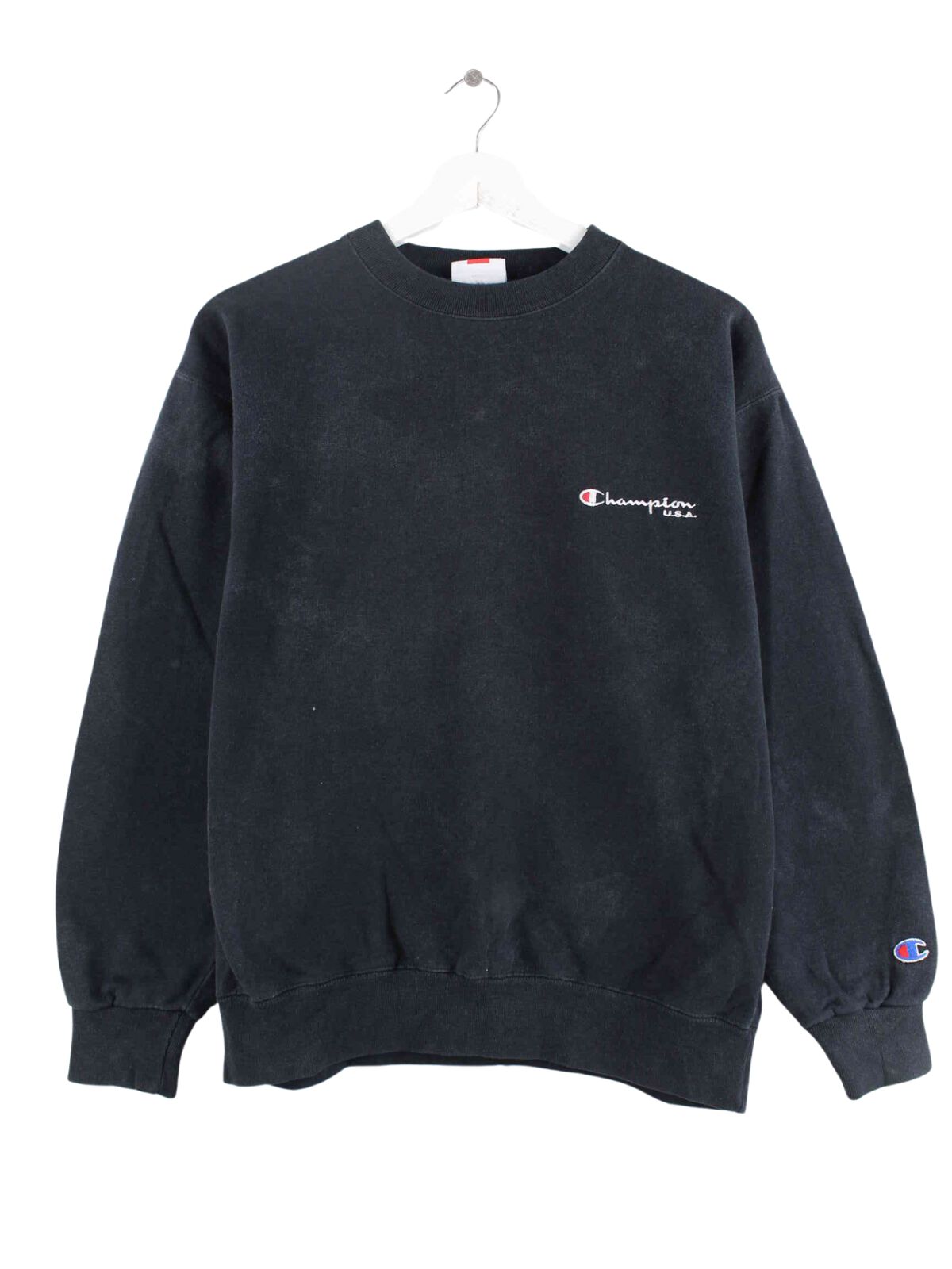 Sweater from the Champion label with an embroidered logo in size S. It is made from a cotton blend and is available in black.