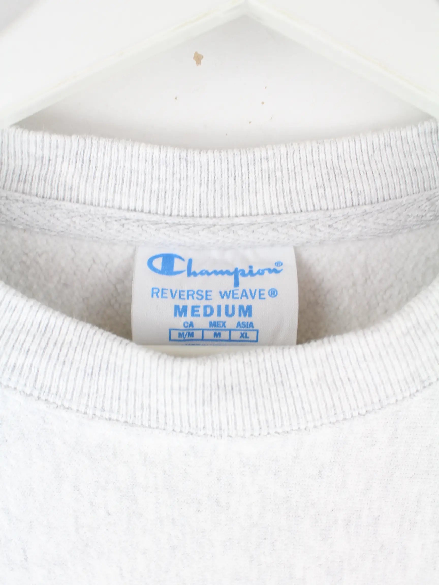 Grauer Sweater von Champion in Größe M. Er ist aus einer Baumwollmischung und in gutem Zustand in Stock.