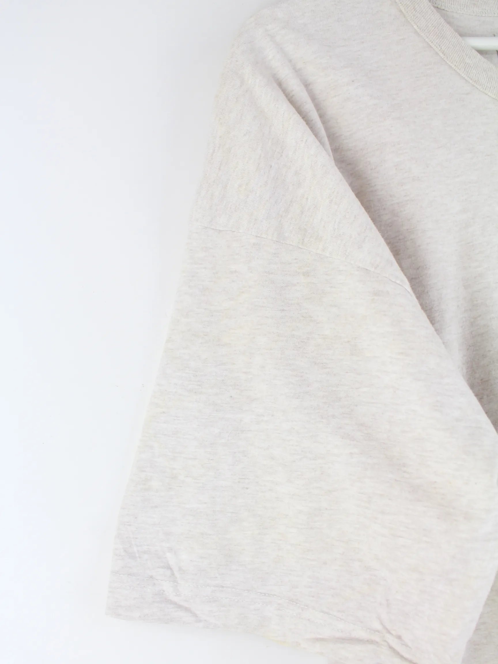 Graues T-Shirt der Marke Champion in Größe XL. Es ist aus Baumwolle gemacht. Den Zustand würden wir als 'In Ordnung' bezeichnen (vergl. Bilder).