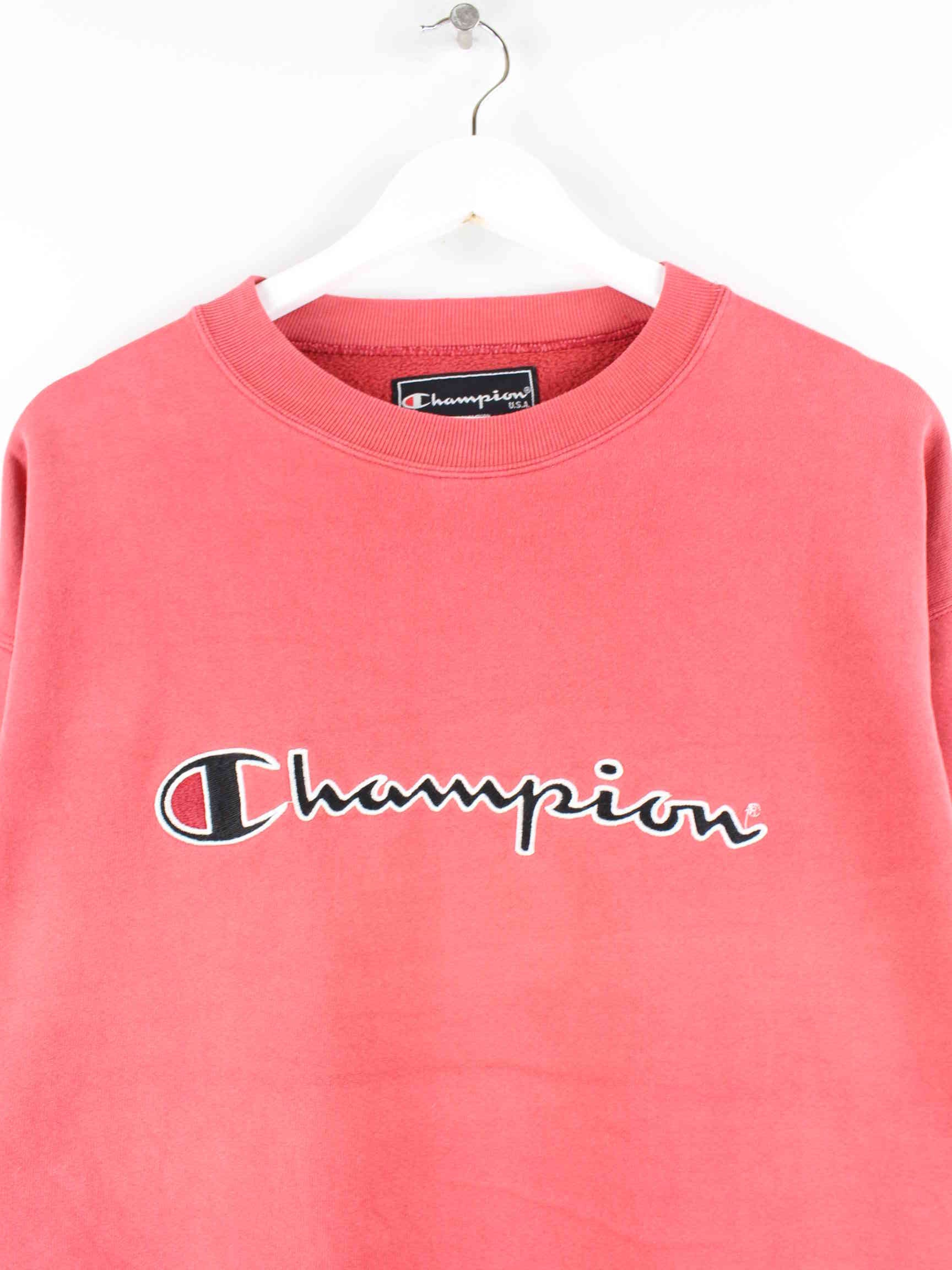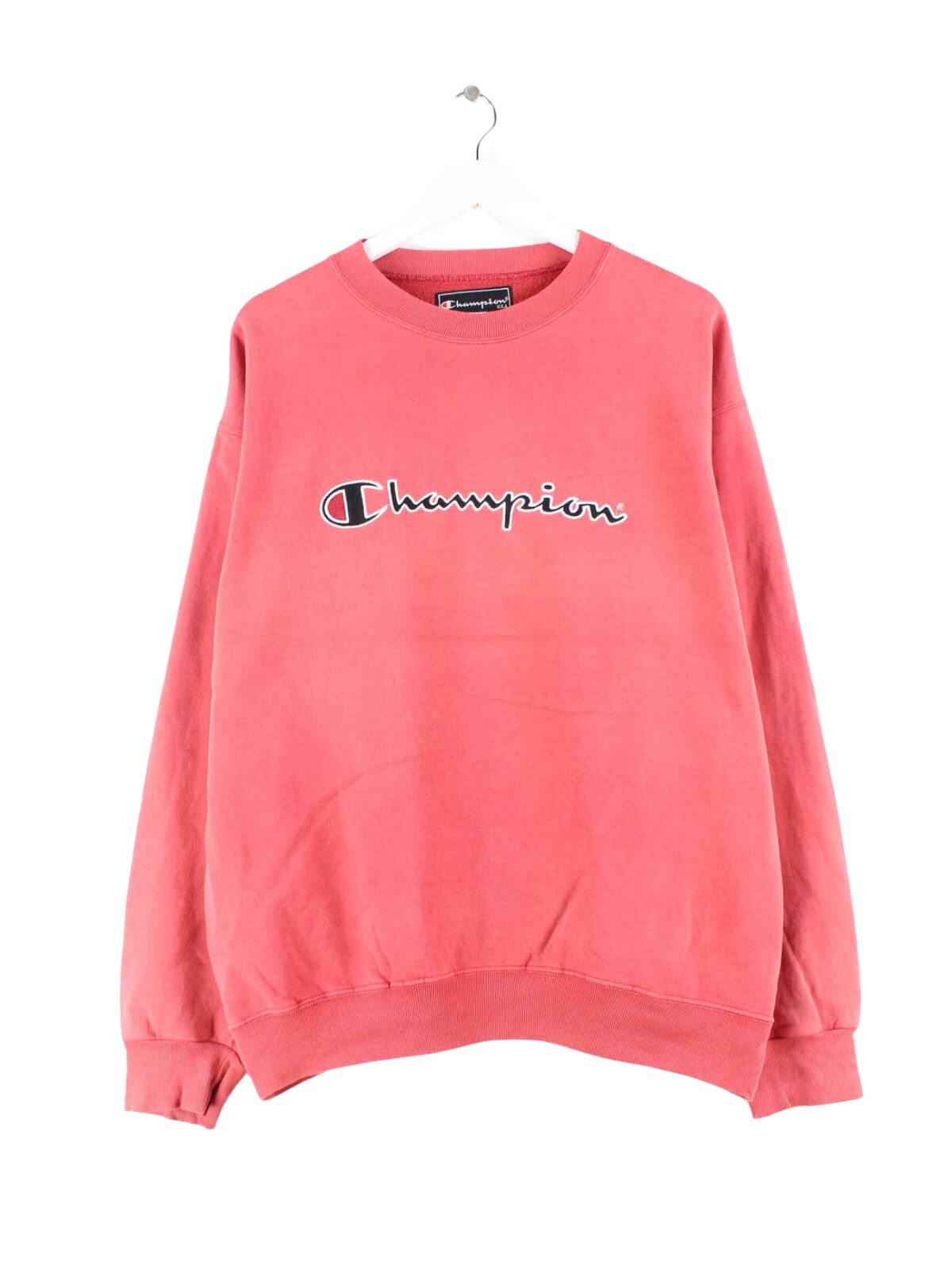 Sweater from the brand Champion with embroidered logo in size L from the early 2000s. It is made from a cotton blend and is available in red.