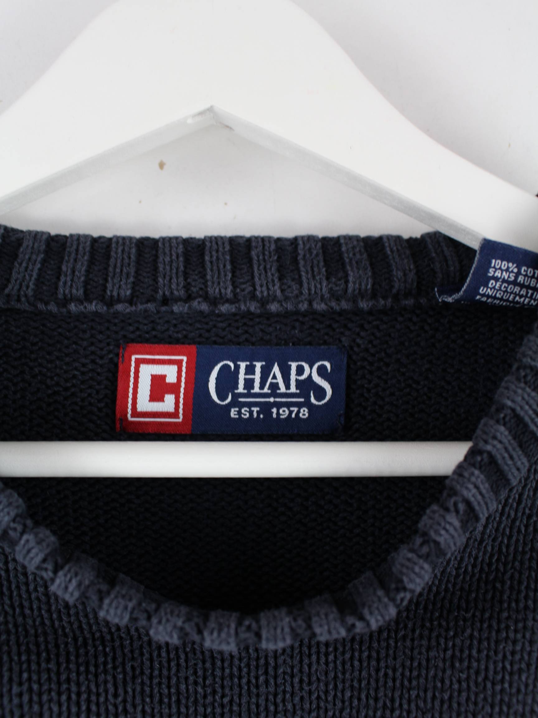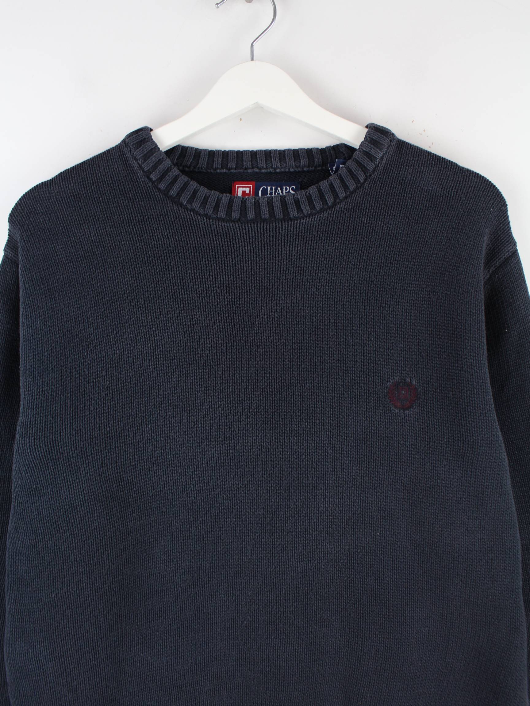 Blauer Pullover vom Label Chaps by Ralph Lauren in Größe M. Er ist aus Baumwolle angefertigt und in sehr gutem Zustand lieferbar.