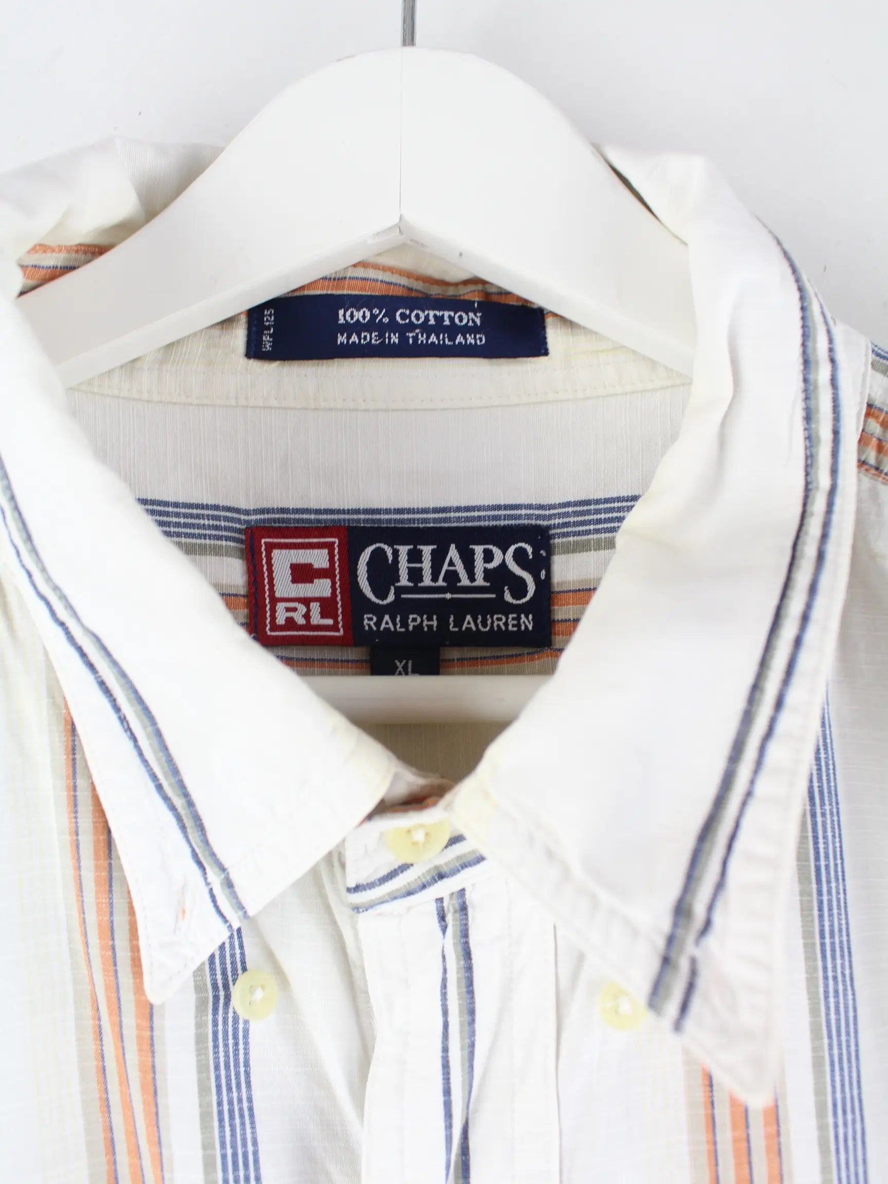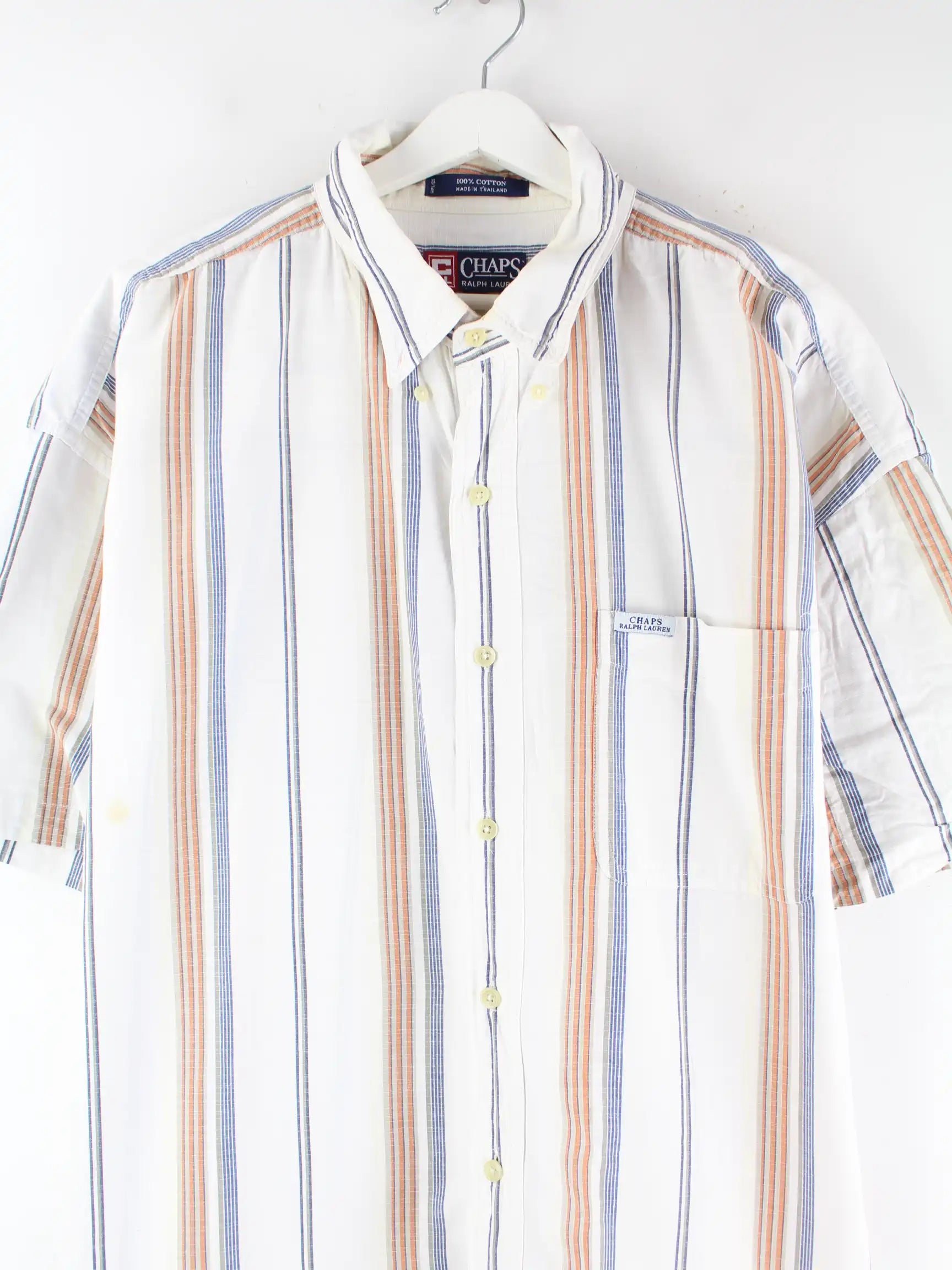 Chaps by Ralph Lauren 00s Striped Kurzarm Hemd Weiß XL