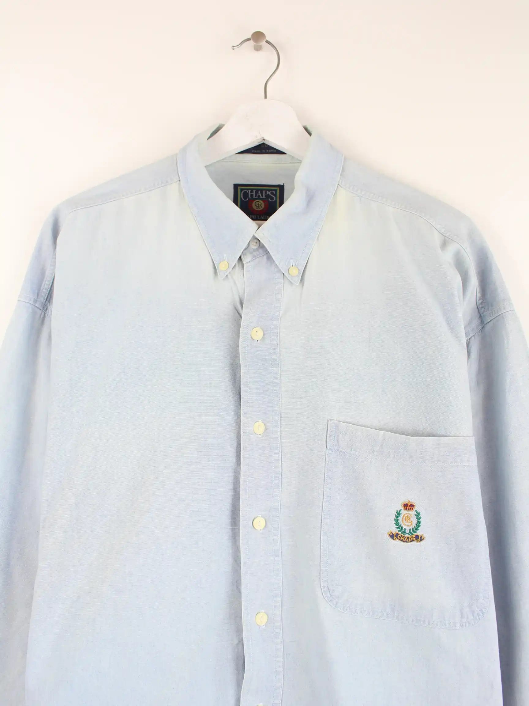 Blaues Freizeit Hemd vom Label Chaps by Ralph Lauren aus den 80'ern in Größe L. Es ist aus Baumwolle gefertigt und in gutem Zustand im Bestand.