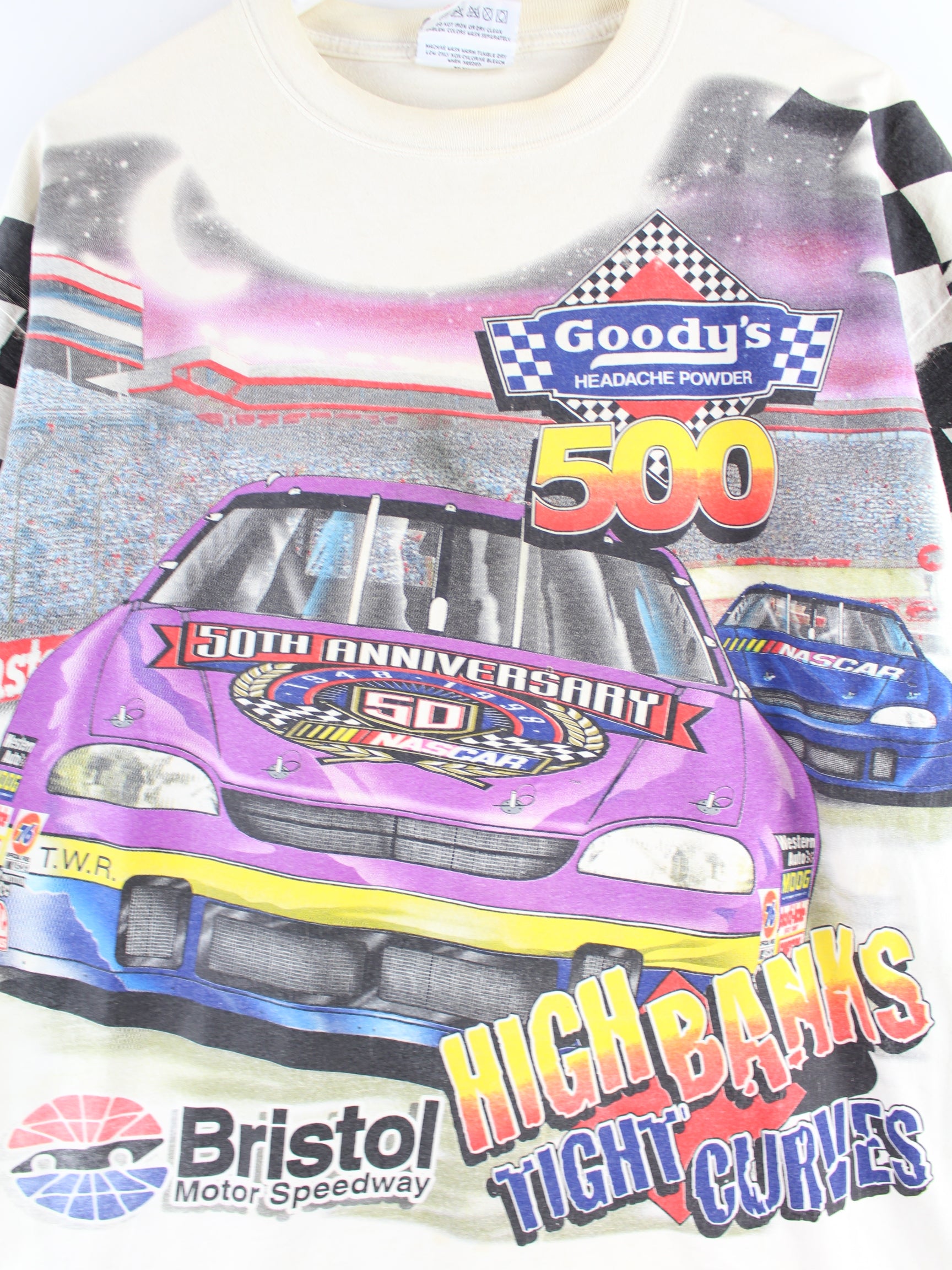 Chase 1998 Vintage Nascar Racing Print T-Shirt Beige L
