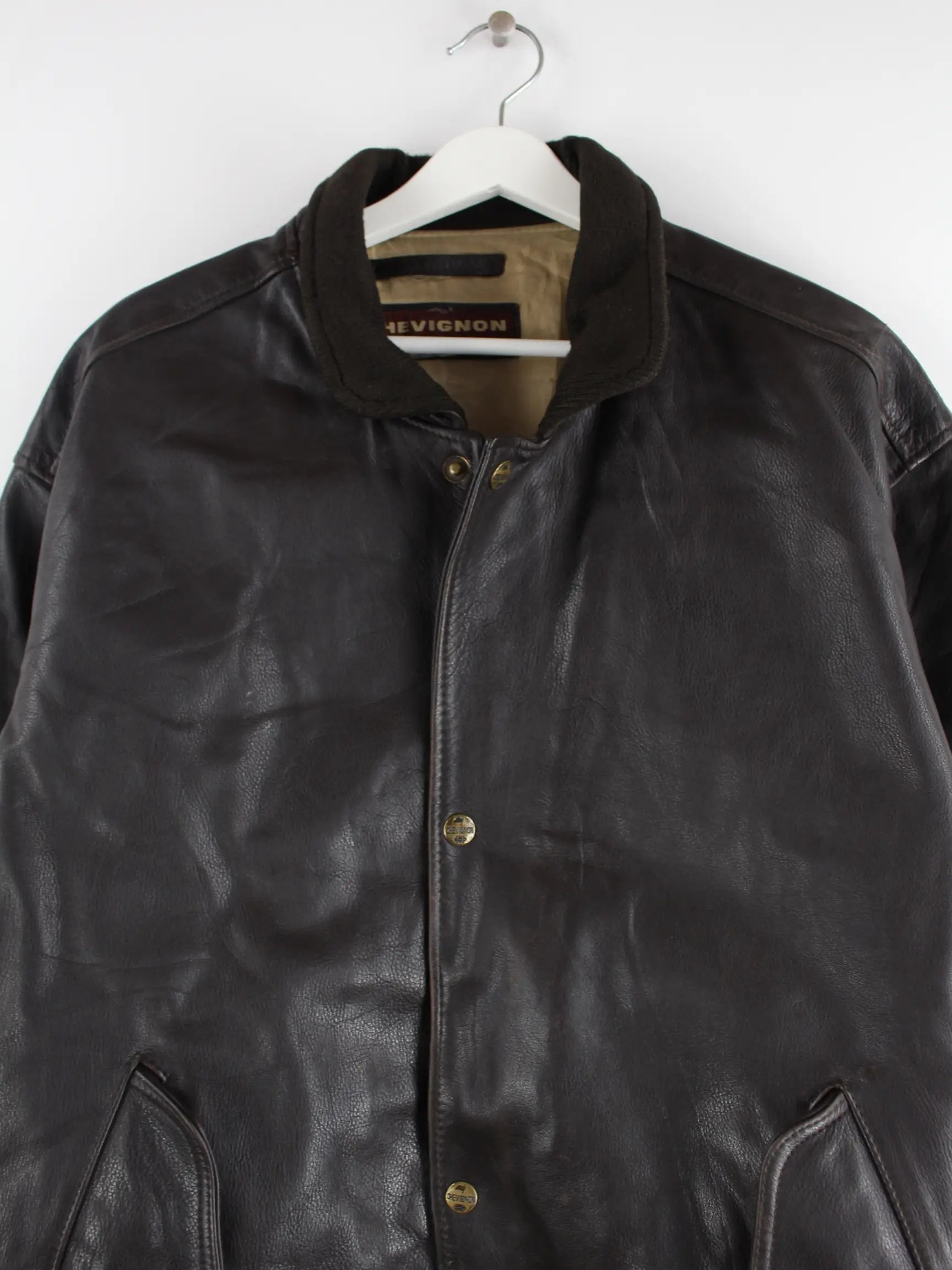 Jacke von Chevignon in Größe XXL aus den 90'ern. Sie ist aus Leder und in Schwarz zu haben.