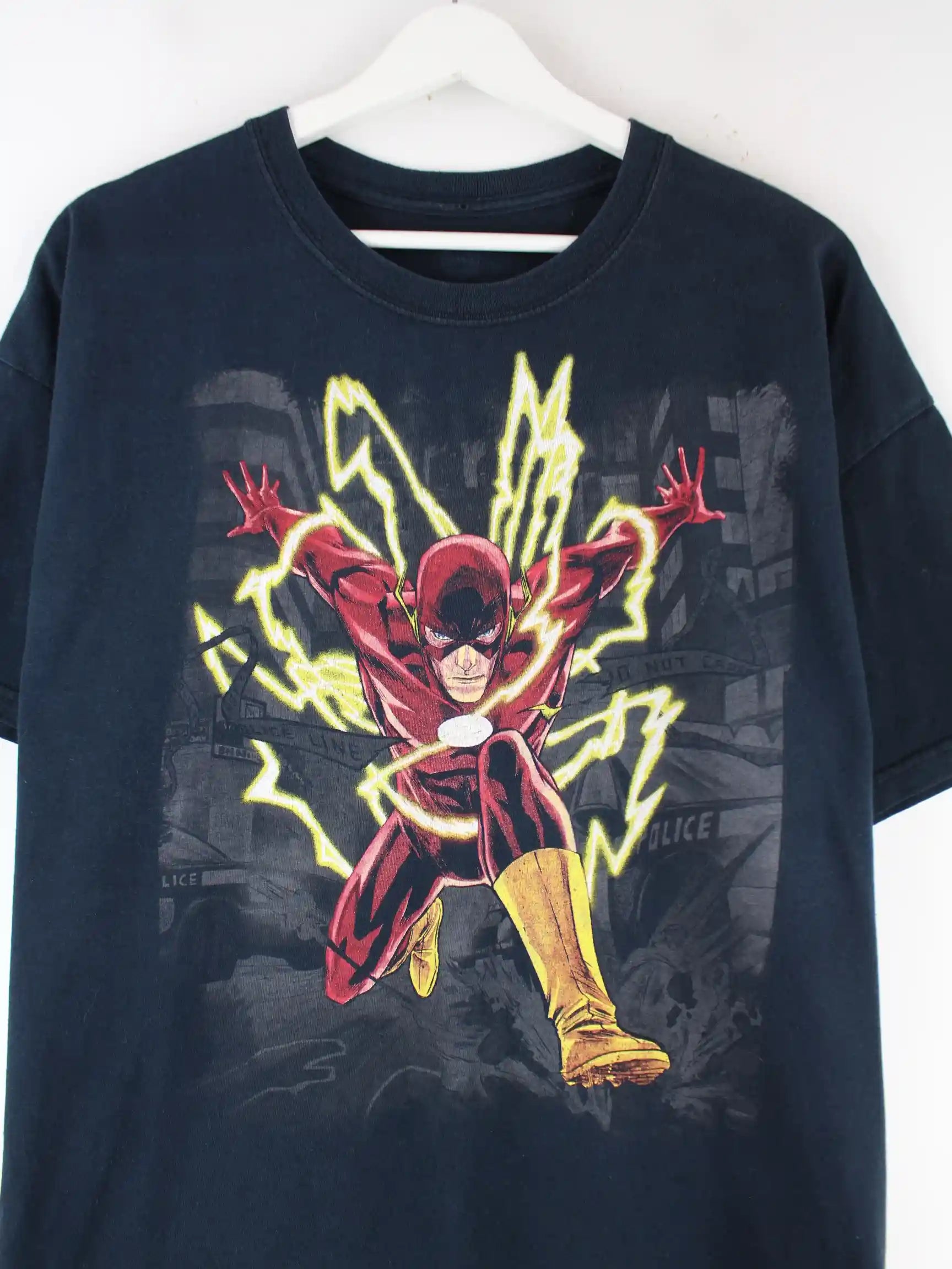 Schwarzes T-Shirt der Brand DC Comics in Größe XL. Es ist aus Baumwolle gemacht und in sehr gutem Zustand vorrätig. Mit schönem Flash Print.