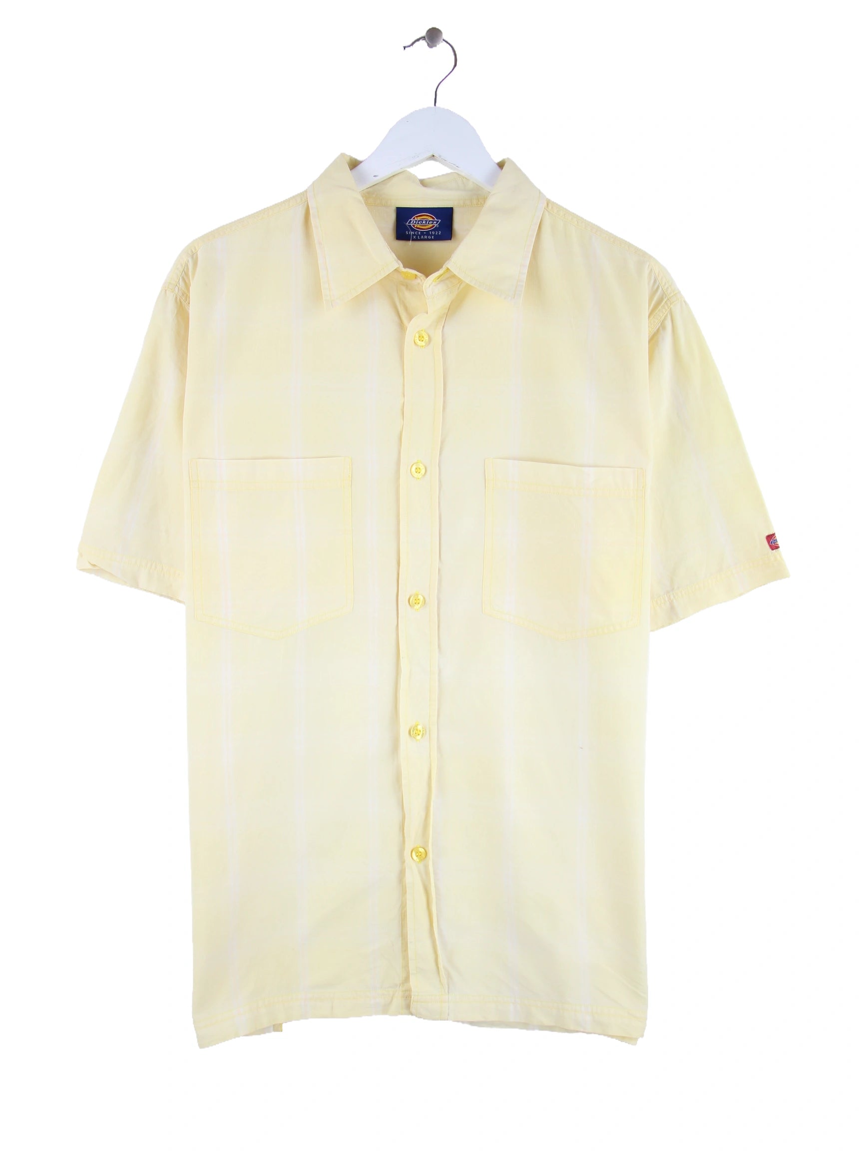 Gelbes Freizeit Hemd des Labels Dickies aus den 90'ern in Größe XL. Es ist aus Baumwolle gefertigt und in sehr gutem Zustand in Stock.