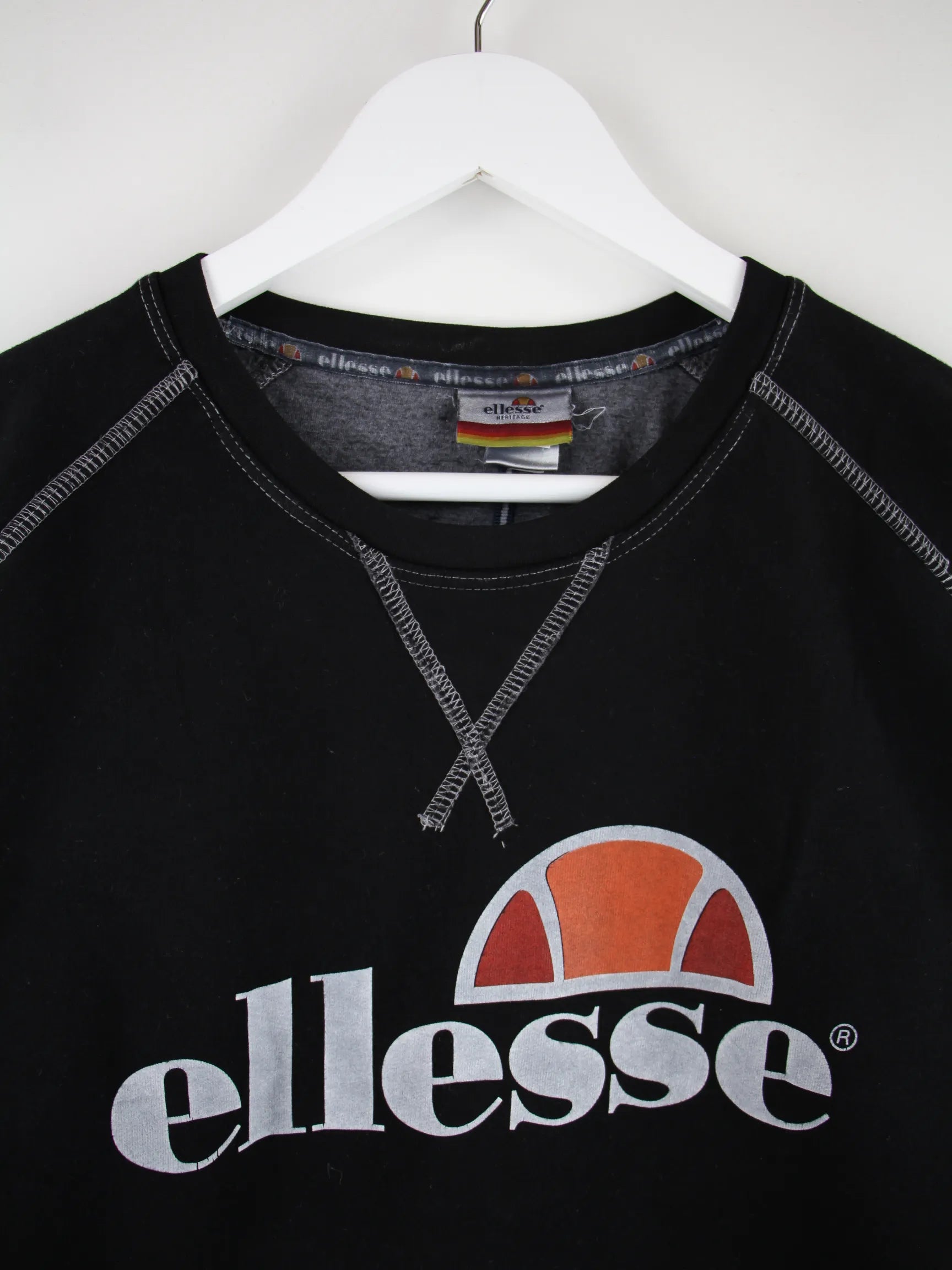 Sweater des Labels Ellesse in Größe L. Er ist aus einer Baumwollmischung und in Schwarz vorrätig. Mit chiquem Logo Print.