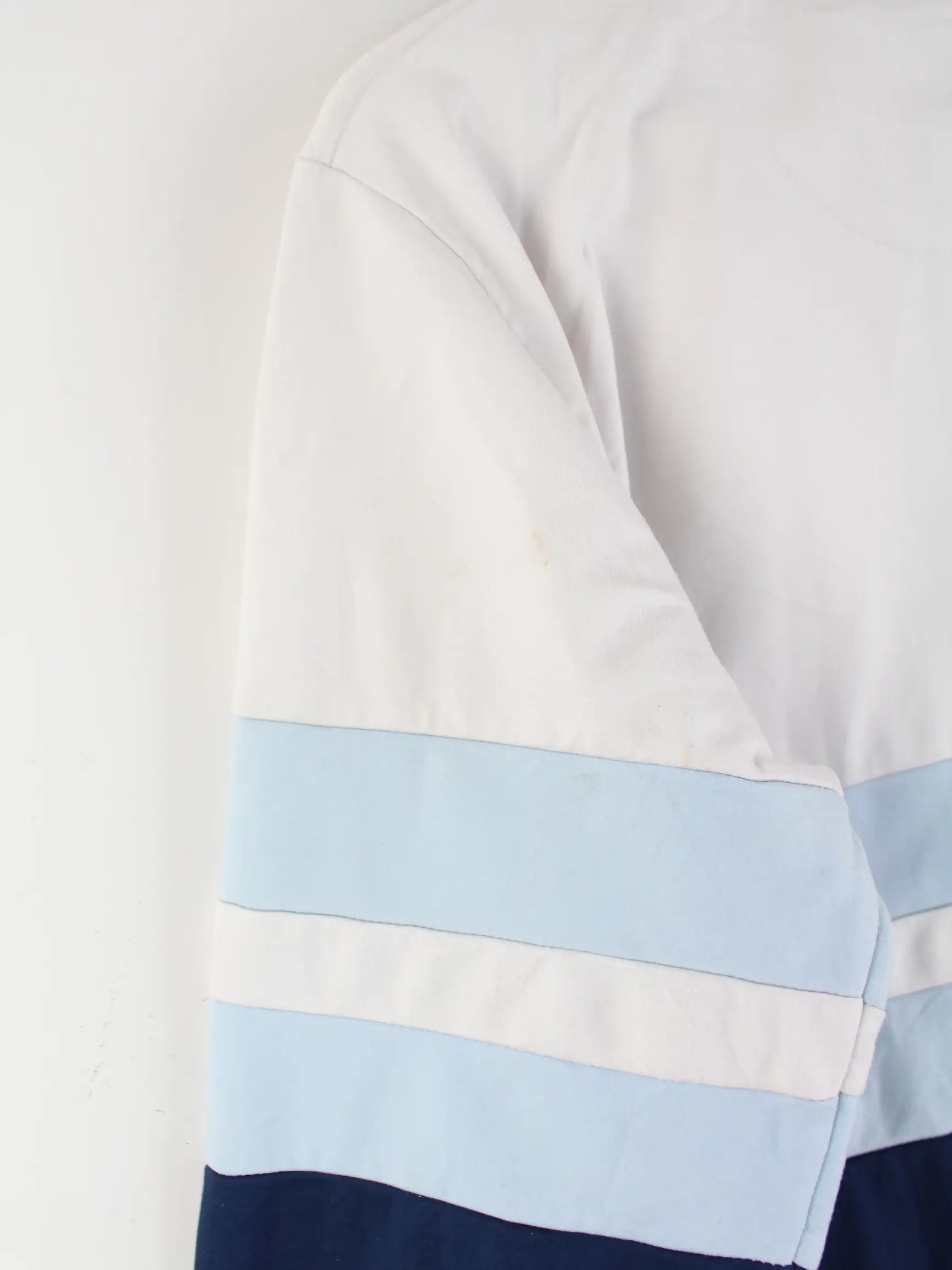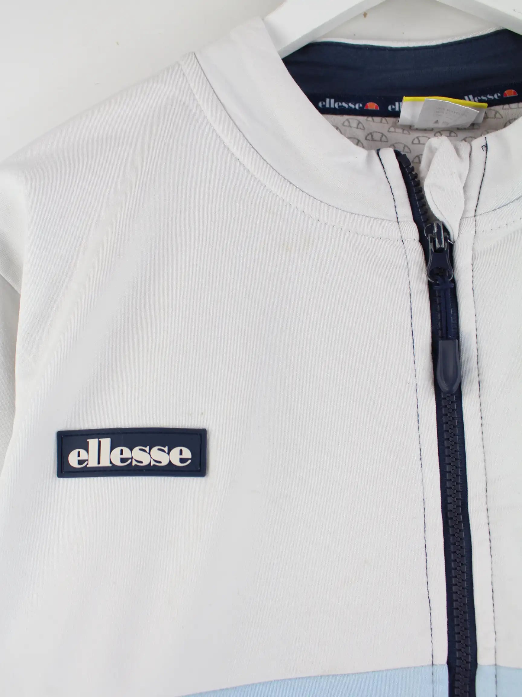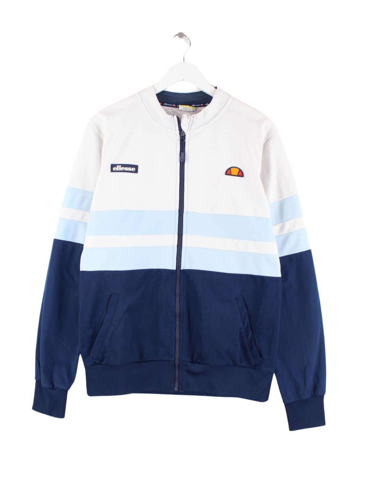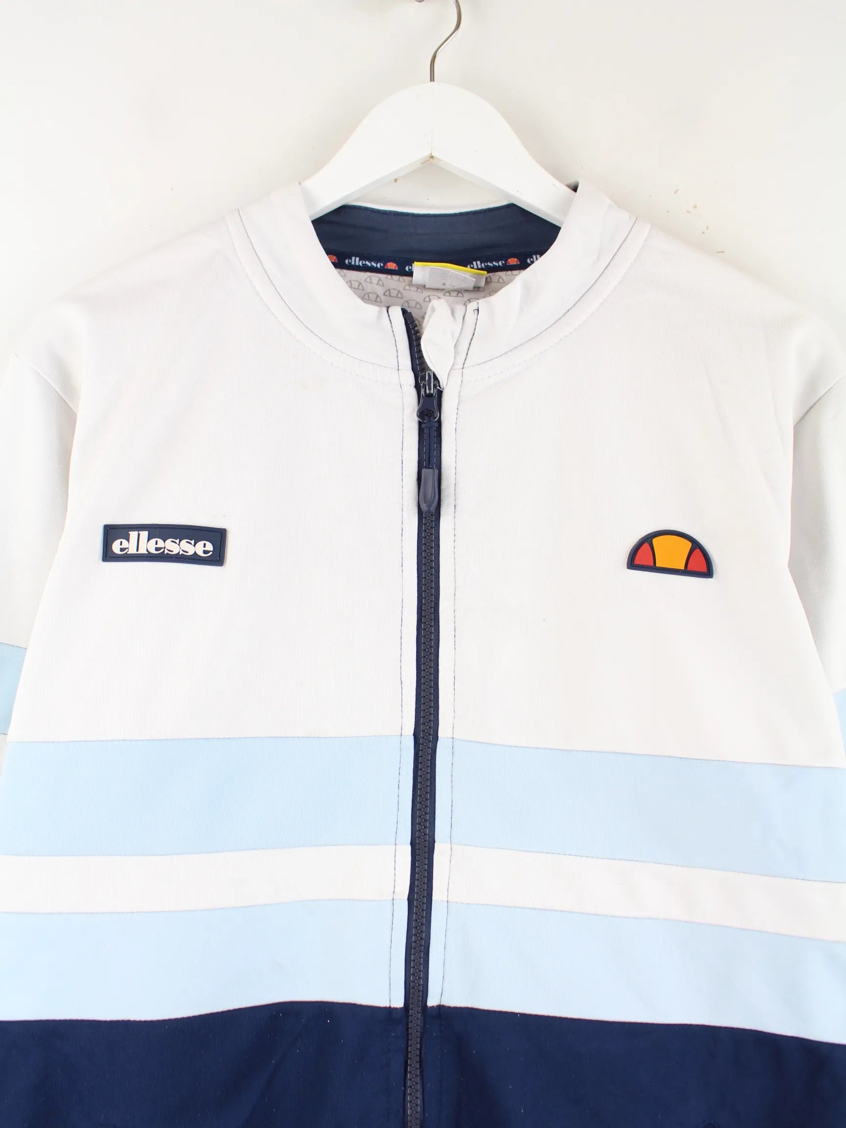Weiße Trainingsjacke aus dem Hause Ellesse in Größe L. Sie ist aus Synthetik gemacht. Den Zustand würden wir als 'In Ordnung' bezeichnen (vergl. Bilder).