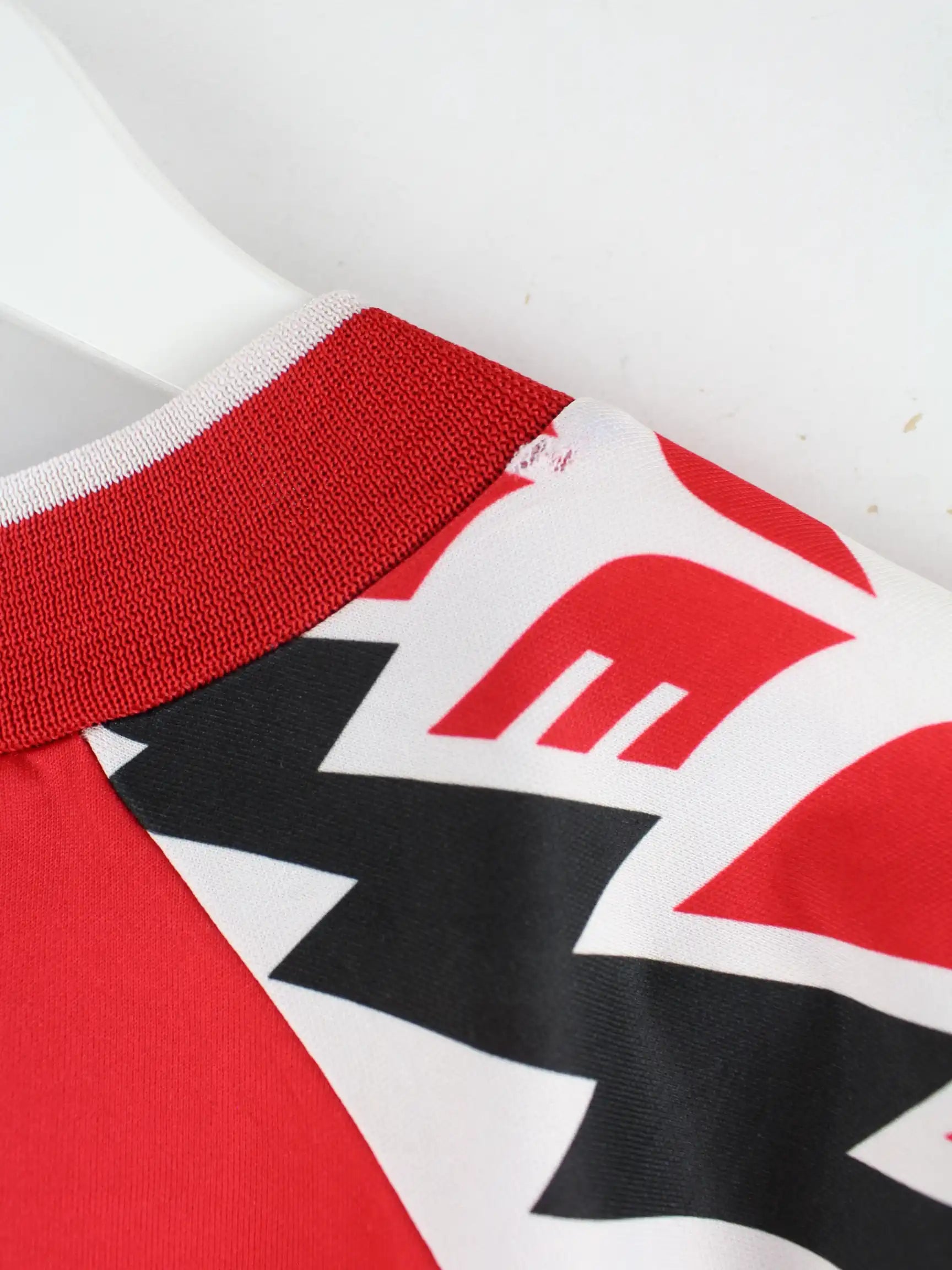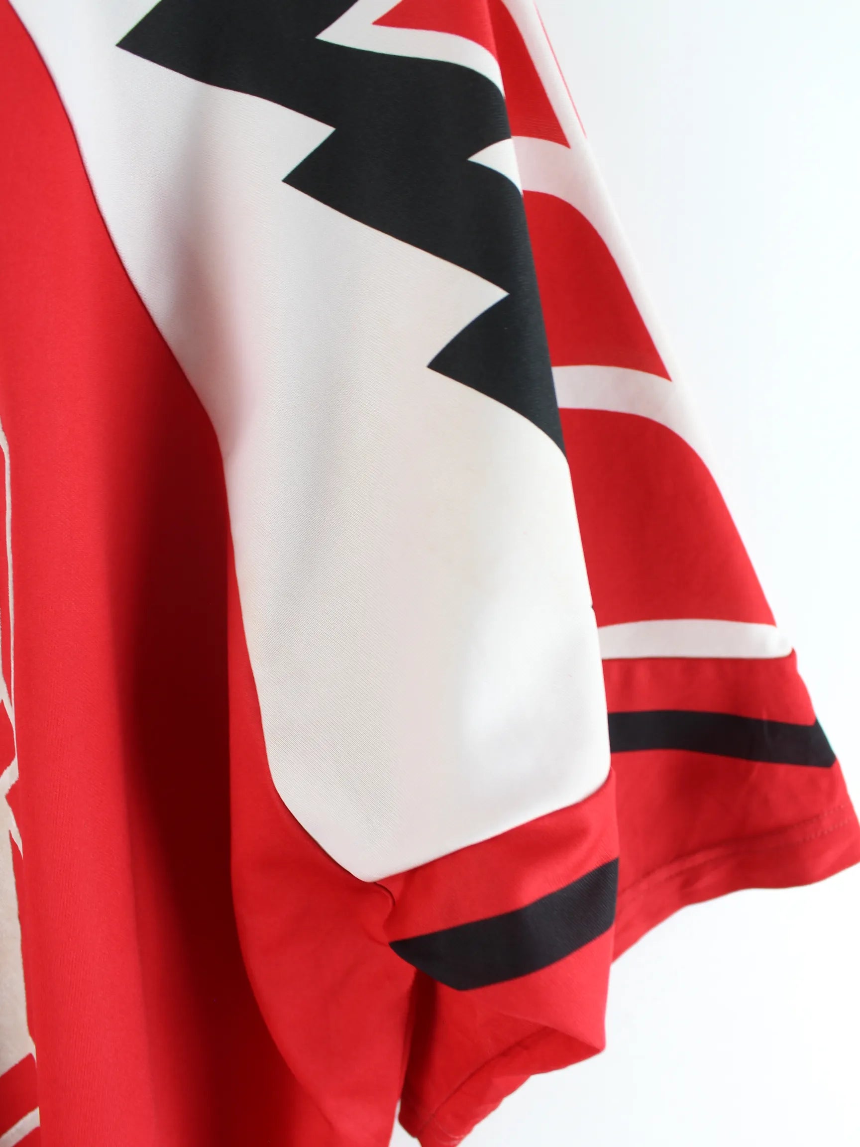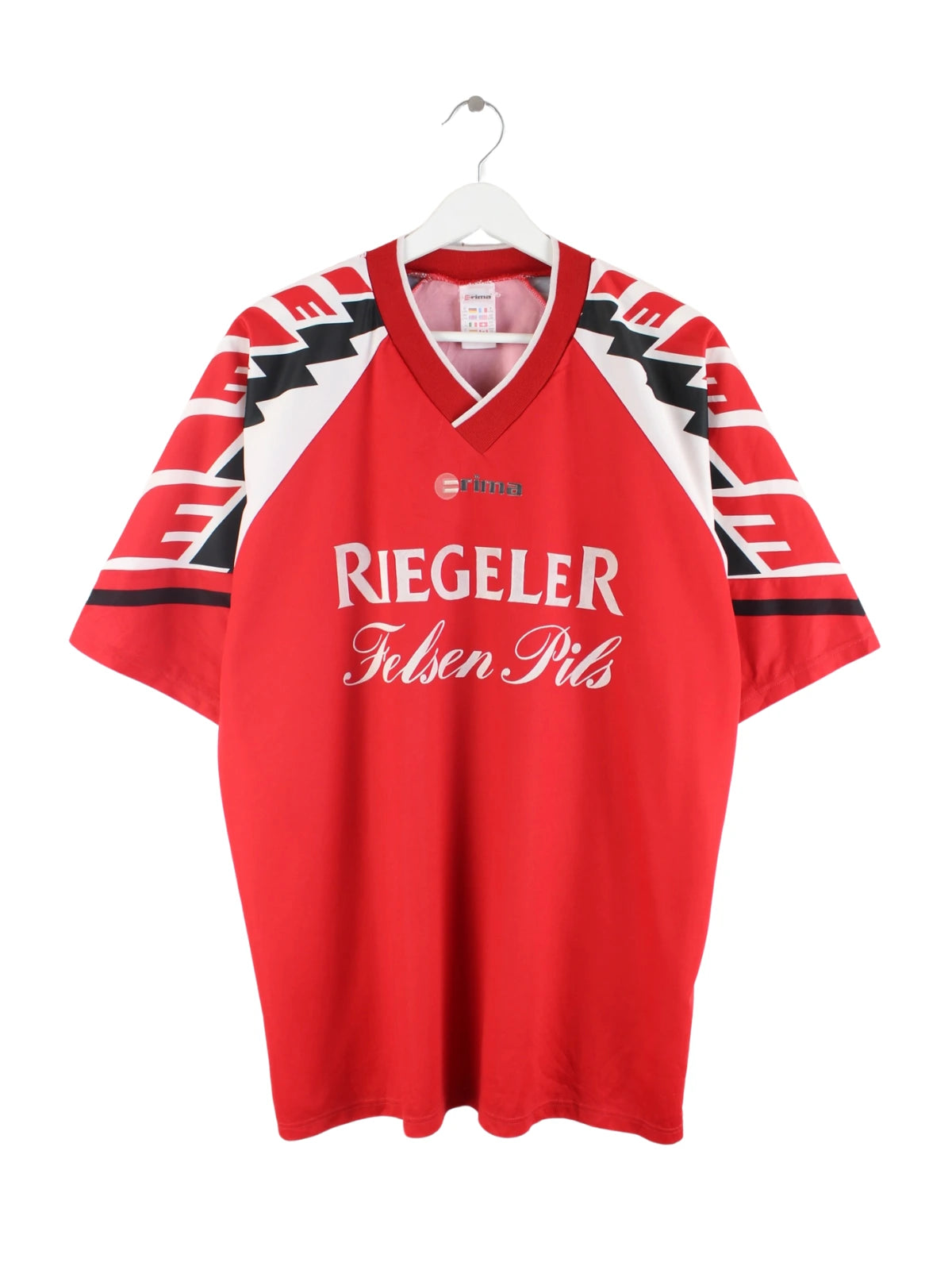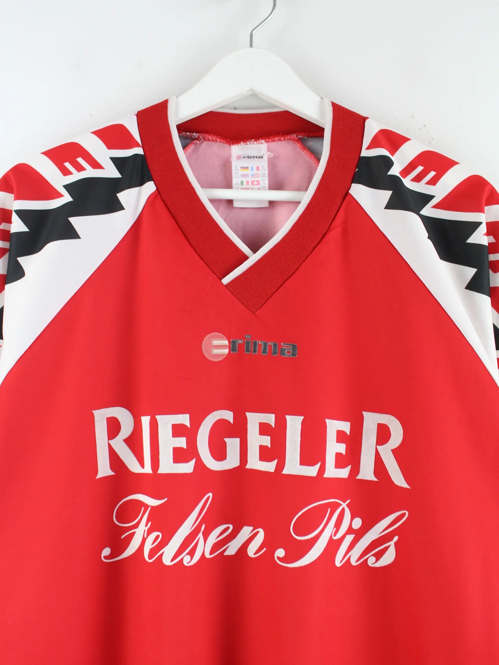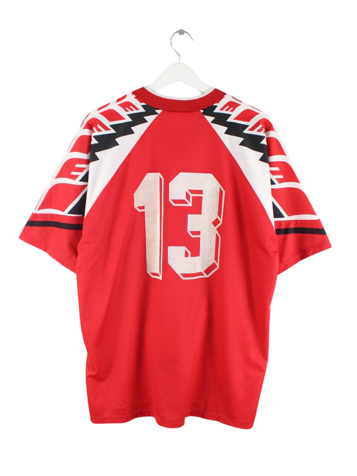 Roter Jersey vom Label Erima aus den 90'ern in Größe XL. Es ist aus Synthetik gefertigt und in gutem Zustand in Stock.
