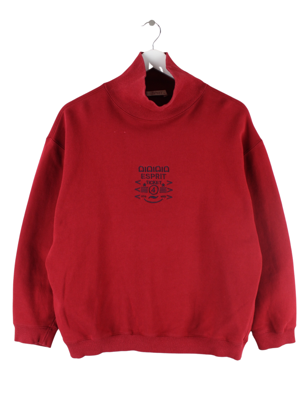 Esprit Damen 90s Vintage Embroidered Rollkragen Sweater Rot L