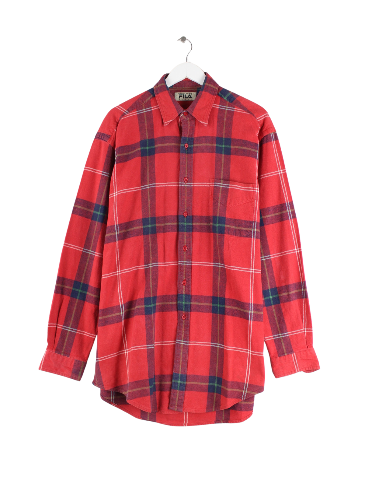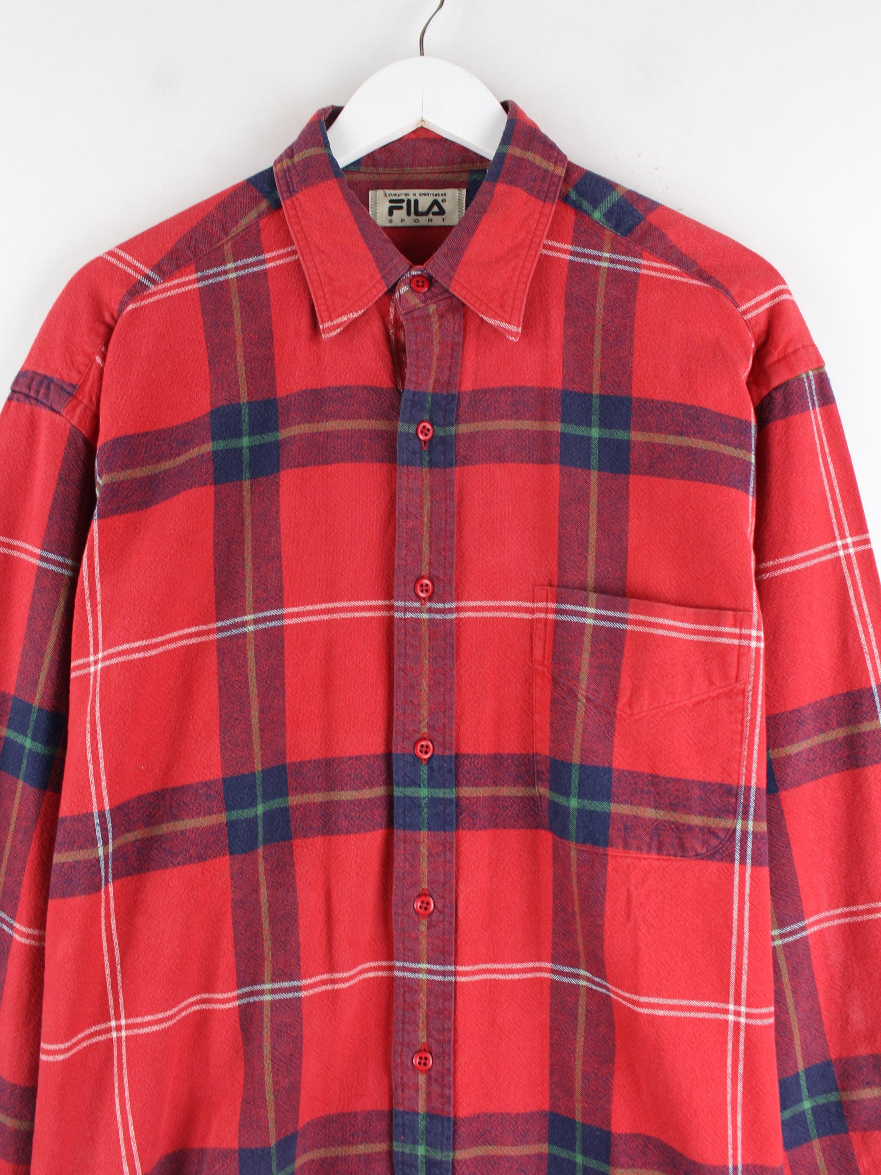 Rotes Freizeit Hemd vom Brand Fila in Größe M. Es ist aus Baumwolle angefertigt und in gutem Zustand im Angebot.