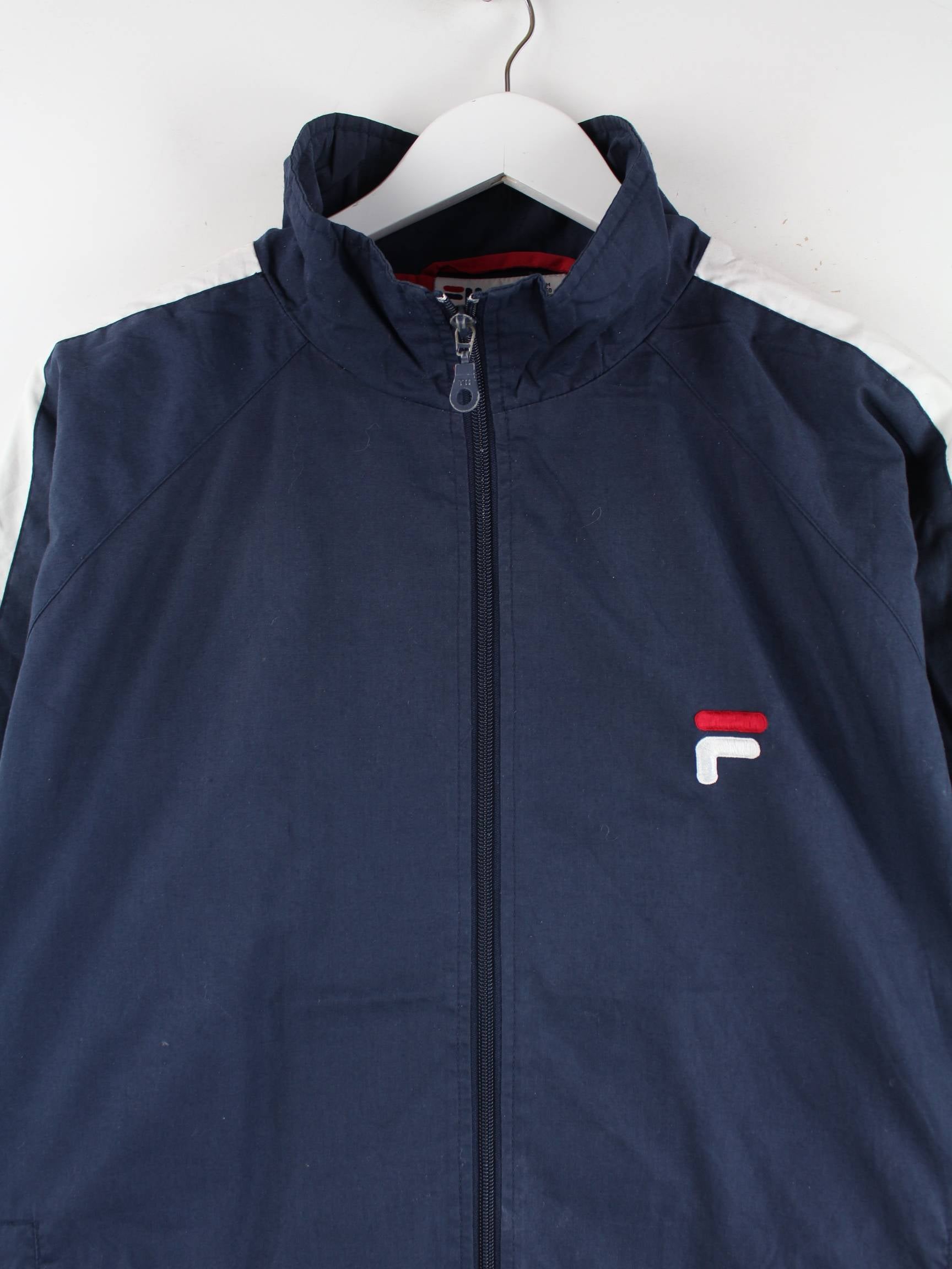 Blaue Trainingsjacke von Fila in Größe XL. Sie ist aus Synthetik angefertigt und in sehr gutem Zustand in Stock.
