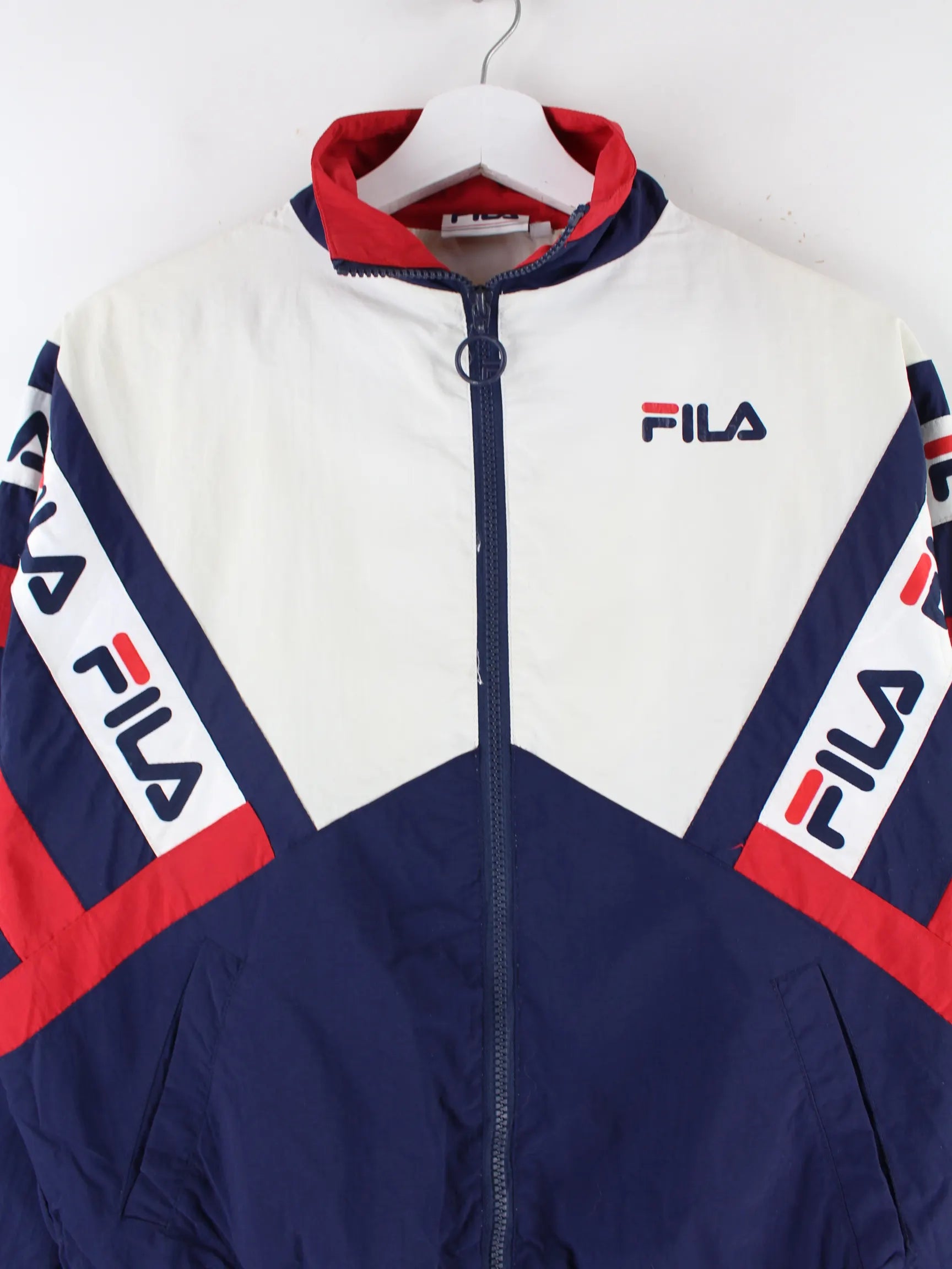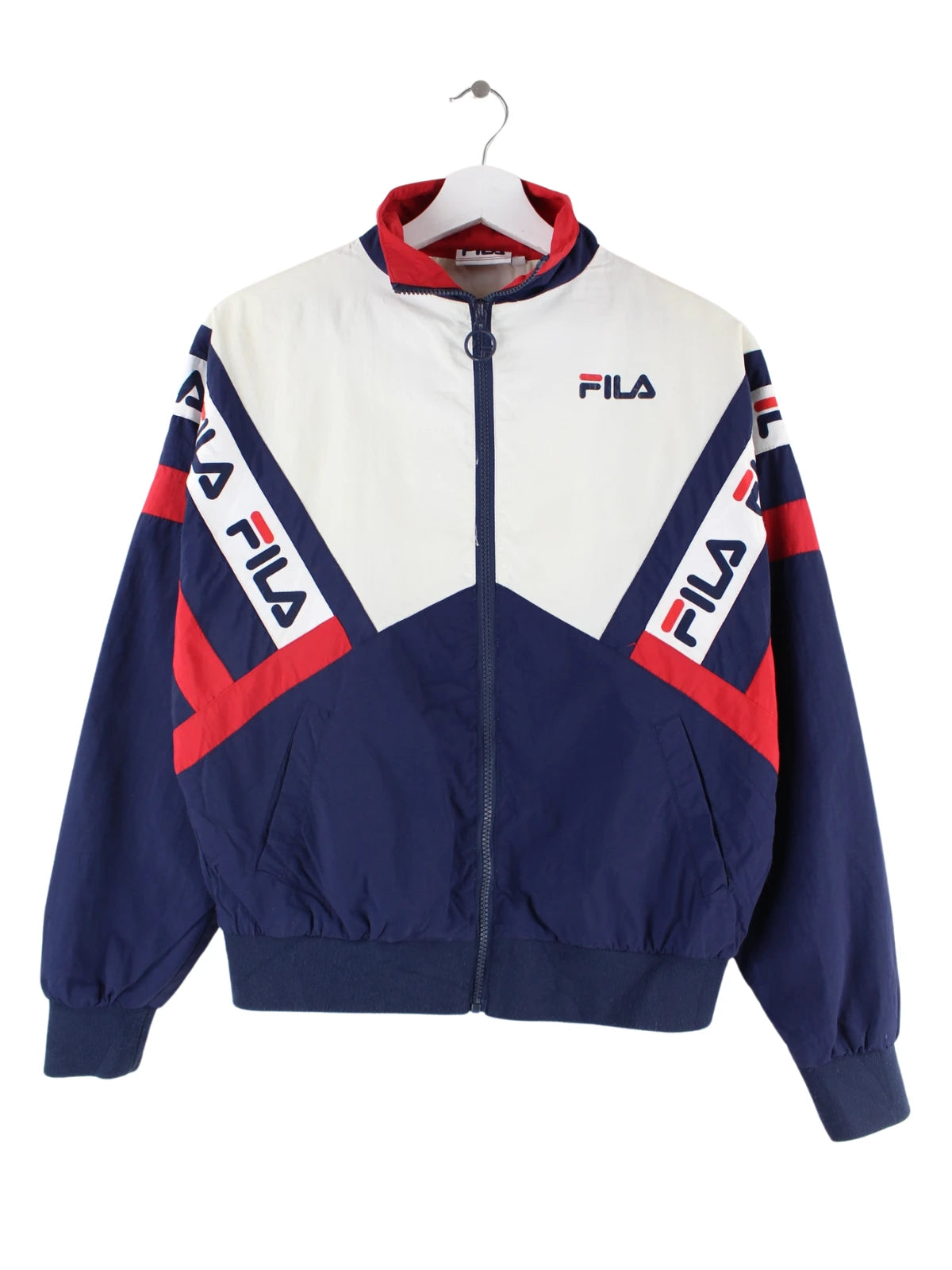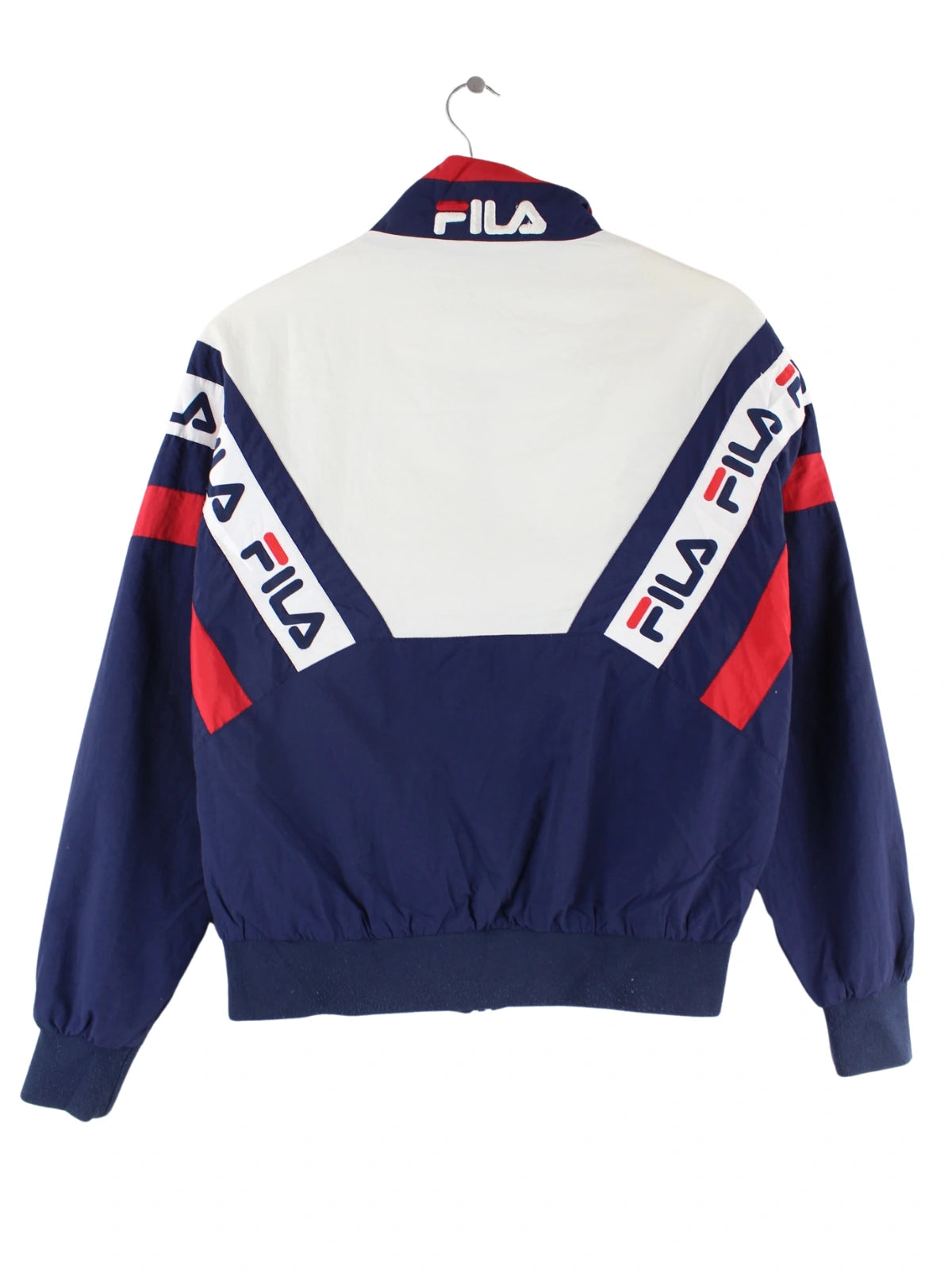 Blaue Trainingsjacke des Labels Fila in Größe XS. Sie ist aus Synthetik gemacht und in sehr gutem Zustand im Bestand.