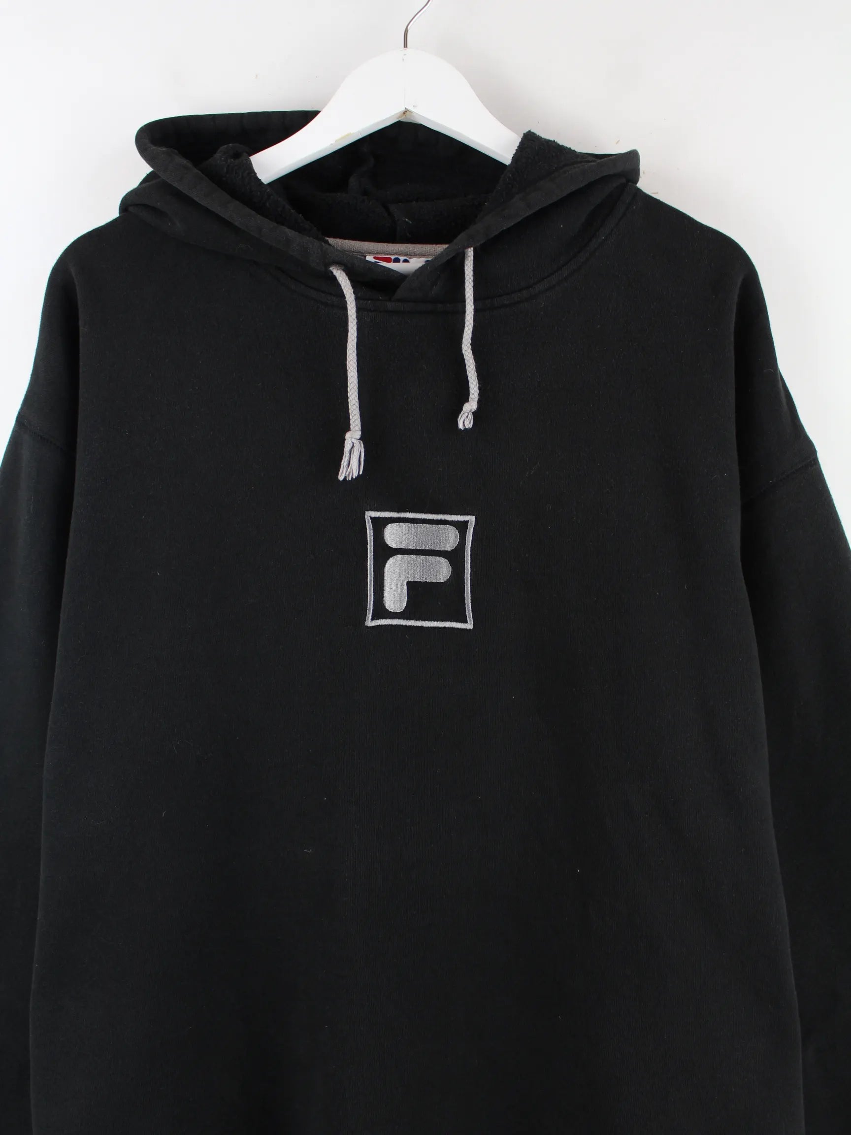 Hoodie von Fila mit Stick in Größe XL. Er ist aus einer Baumwollmischung produziert und in Schwarz auf Lager.