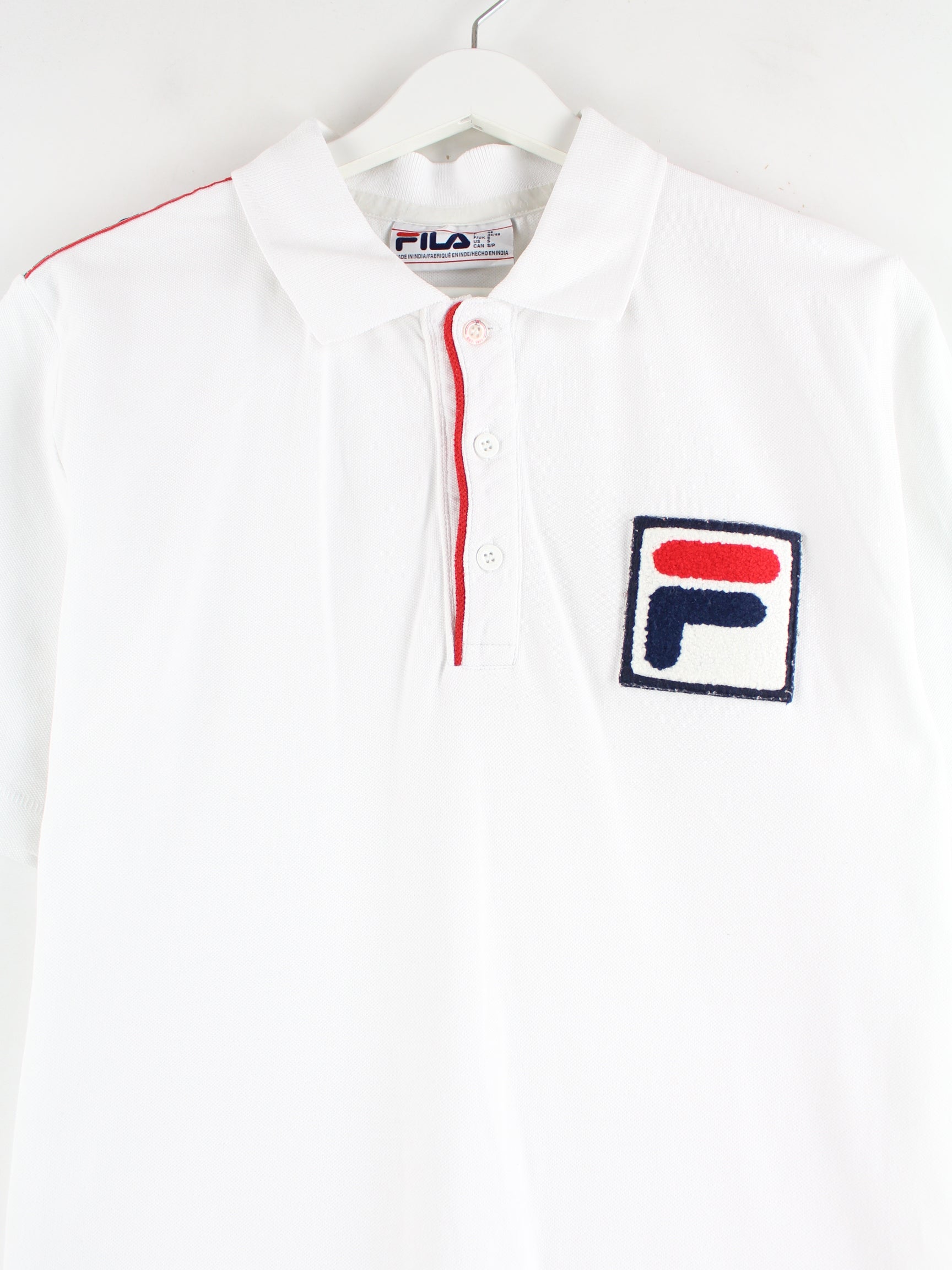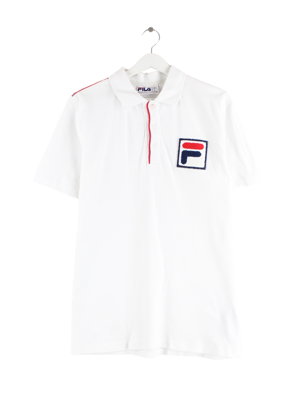 White polo shirt with embroidery from the Fila label in size S. It is made of cotton and is available from us in very good condition.