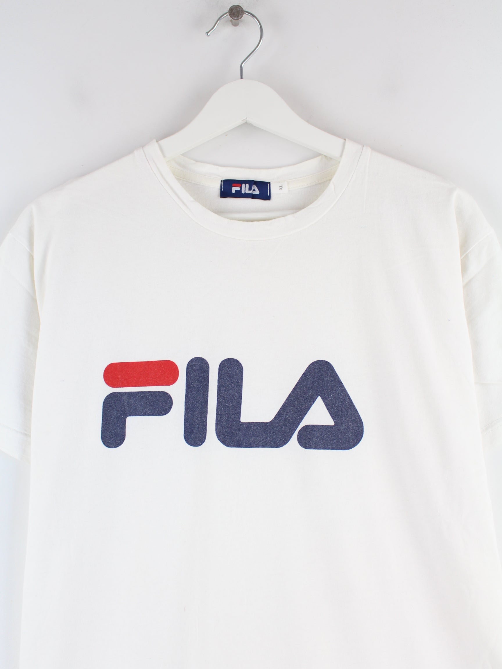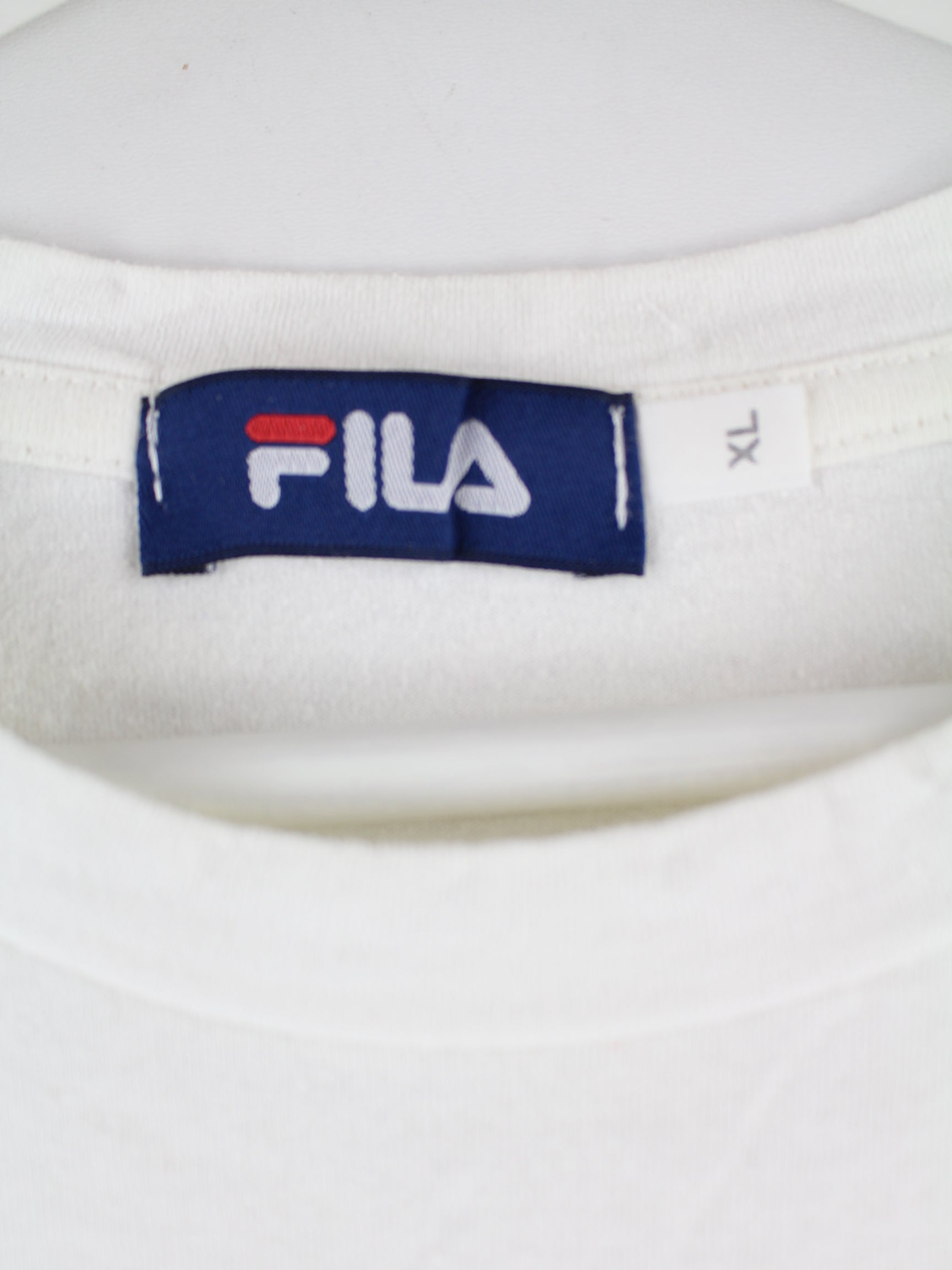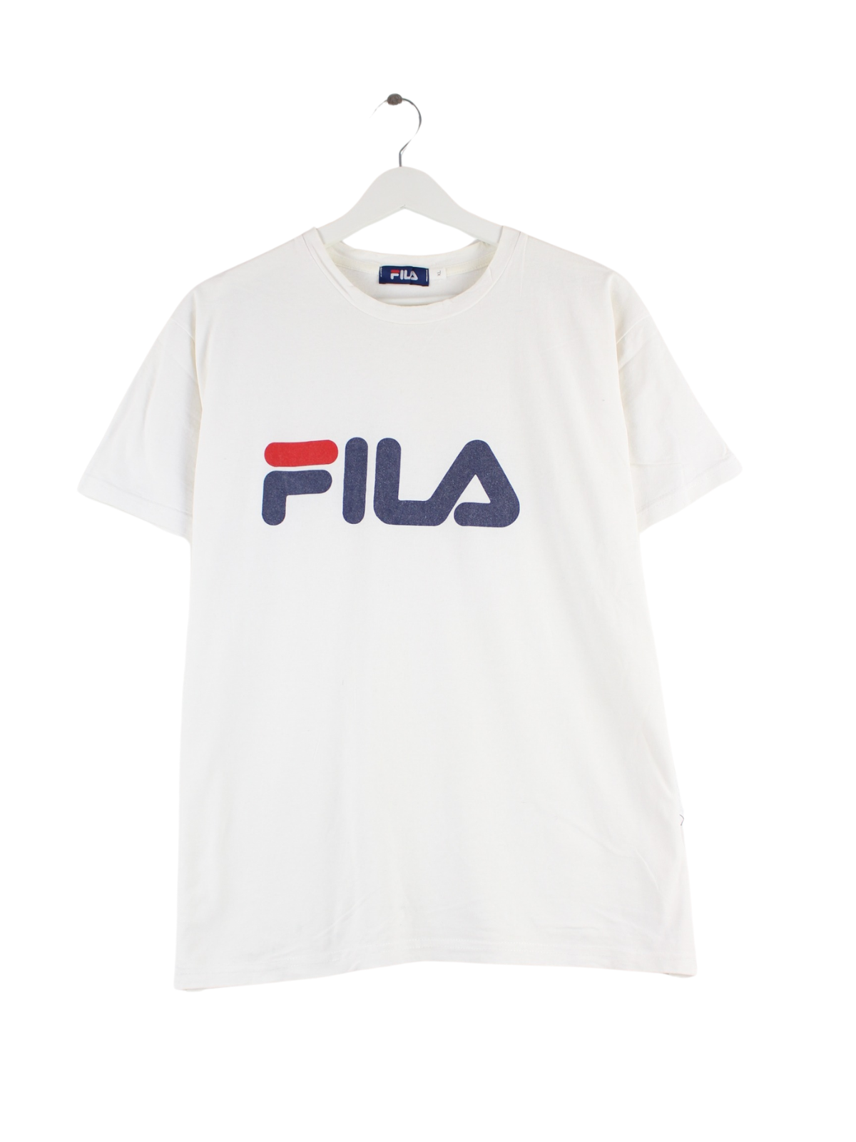 White T-shirt from Fila in size M. It is made from a cotton blend and is available from us in very good condition. With a chic print.