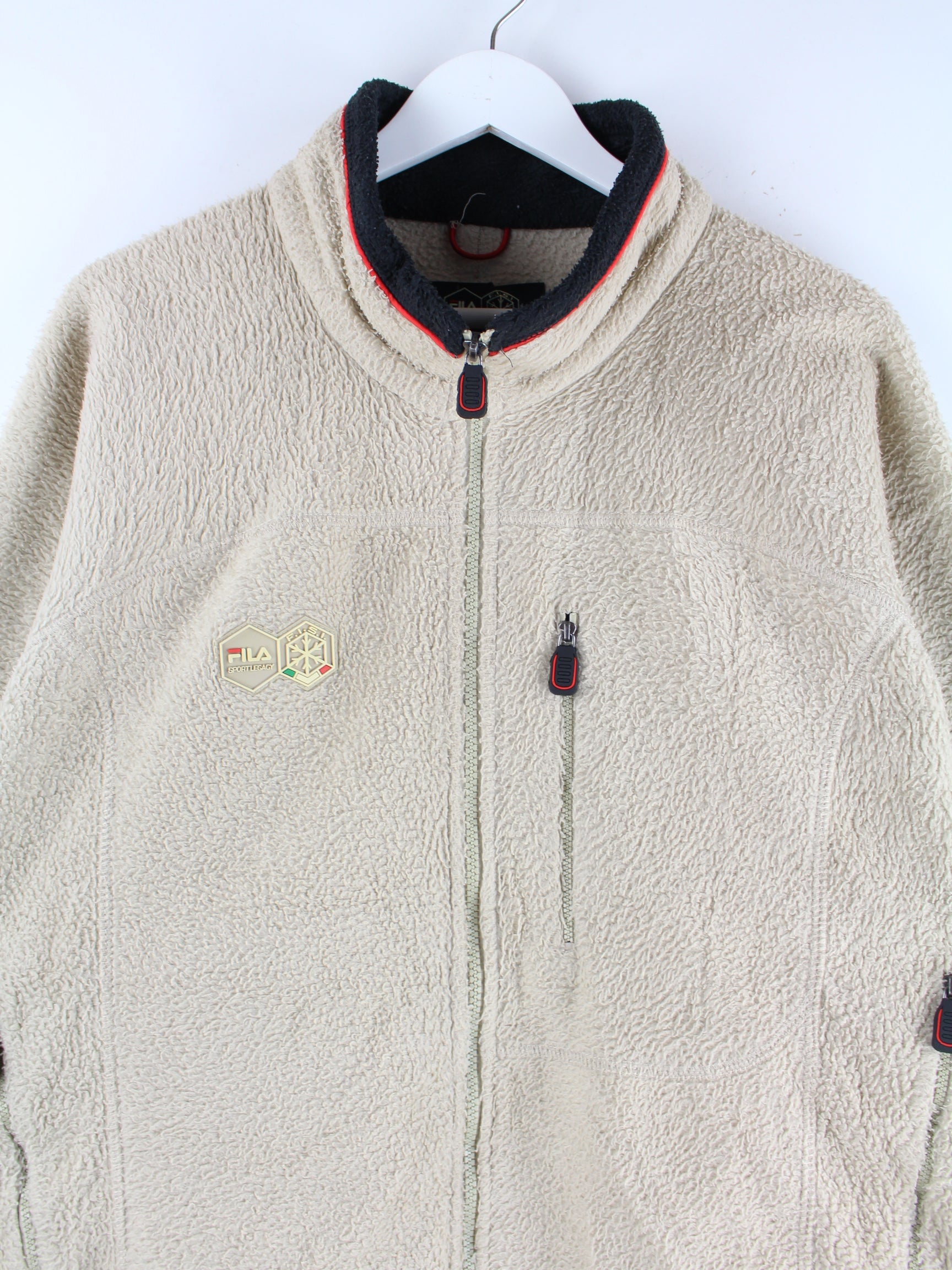Leichte Jacke der Brand Fila in Größe XXL. Sie ist aus behaglichem Fleece angefertigt und in Beige in Stock.