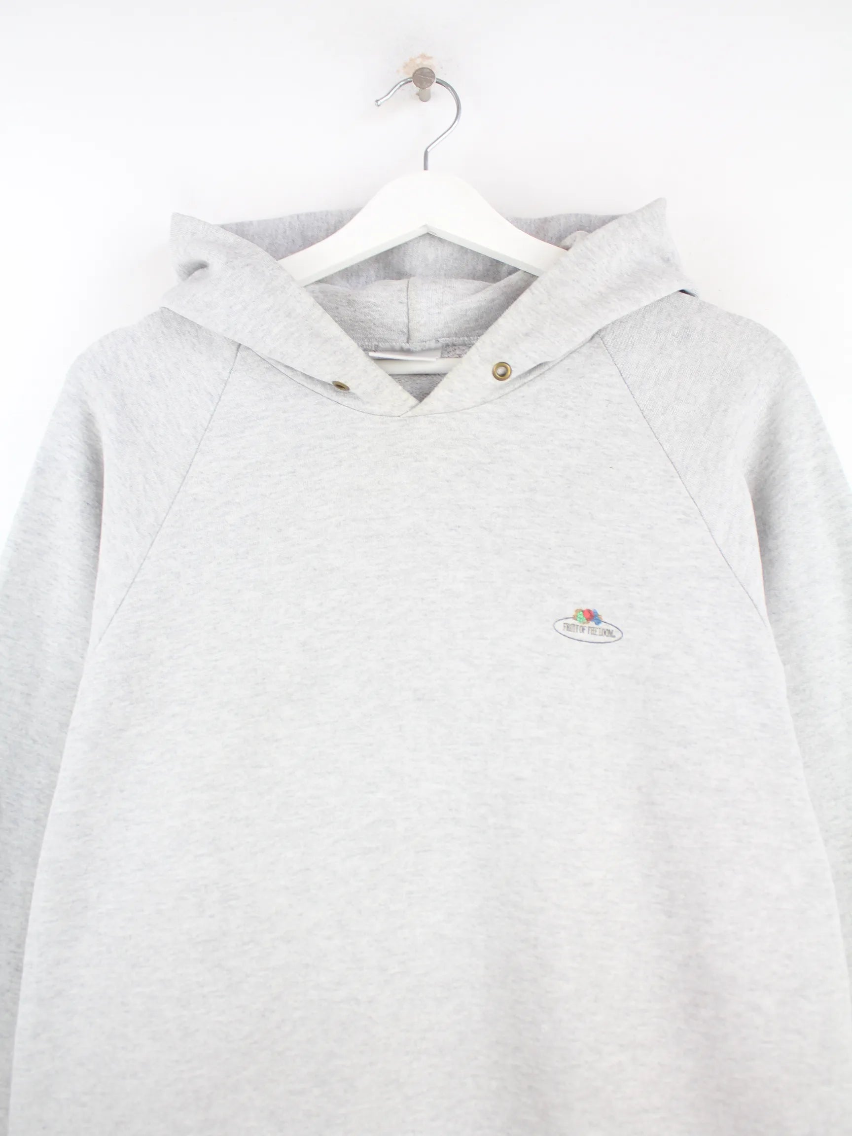 Grauer Hoodie vom Label Fruit of the Loom in Größe XL. Er ist aus einer Baumwollmischung produziert. Den Zustand würden wir als 'In Ordnung' bezeichnen (vergl. Bilder).