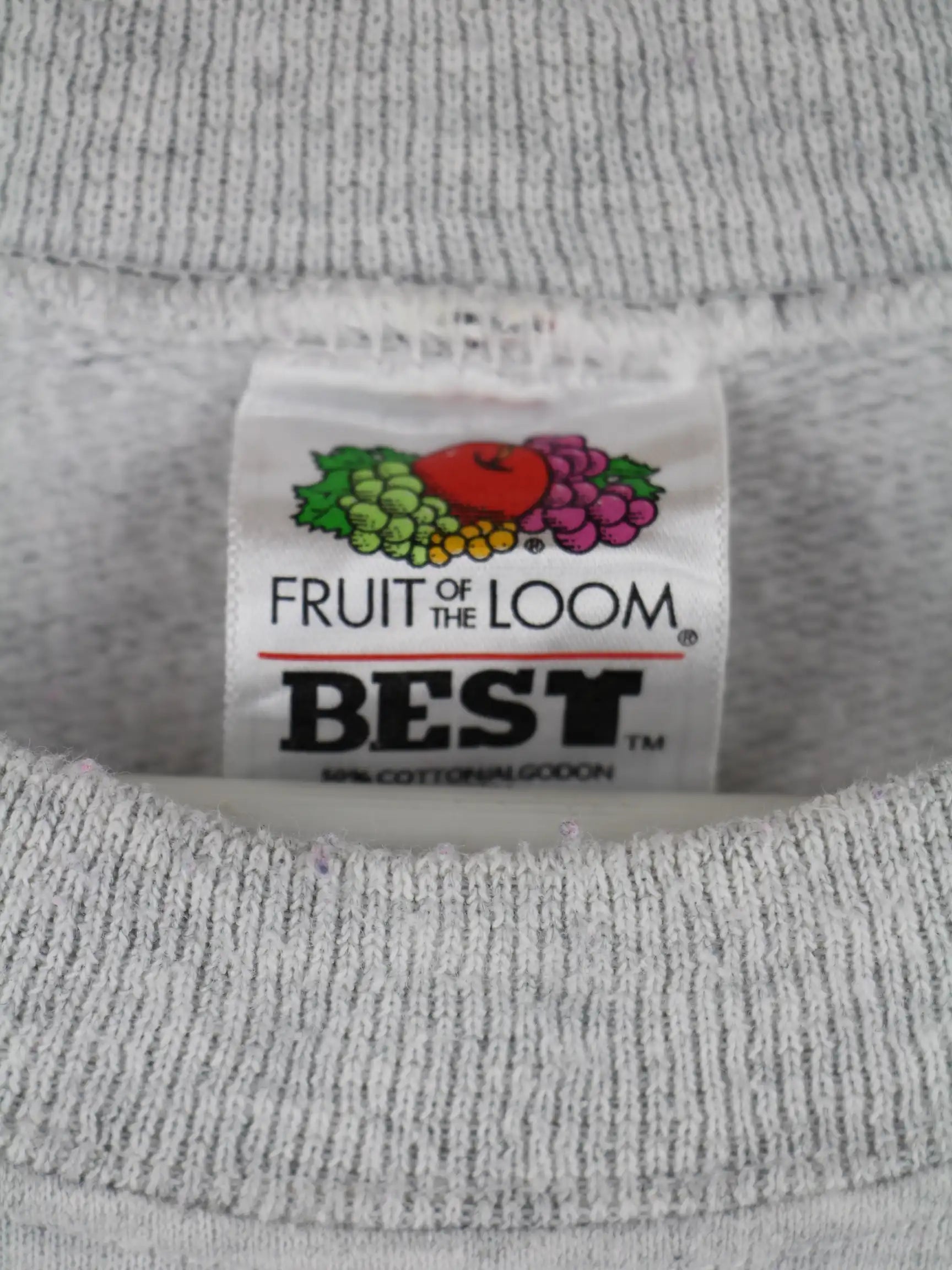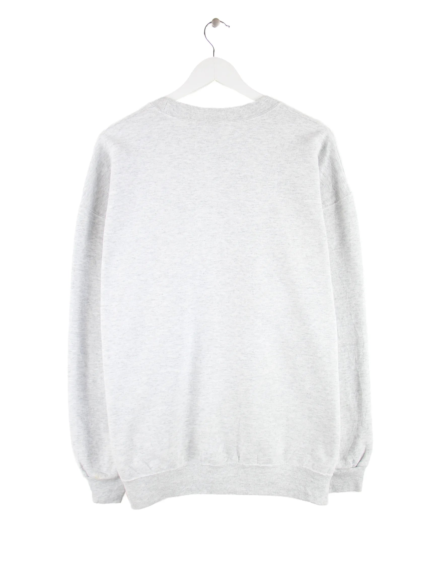 Grauer Sweater der Marke Fruit of the Loom in Größe XL. Er ist aus einer Baumwollmischung und in gutem Zustand im Bestand. Mit seltenem Champions Print.