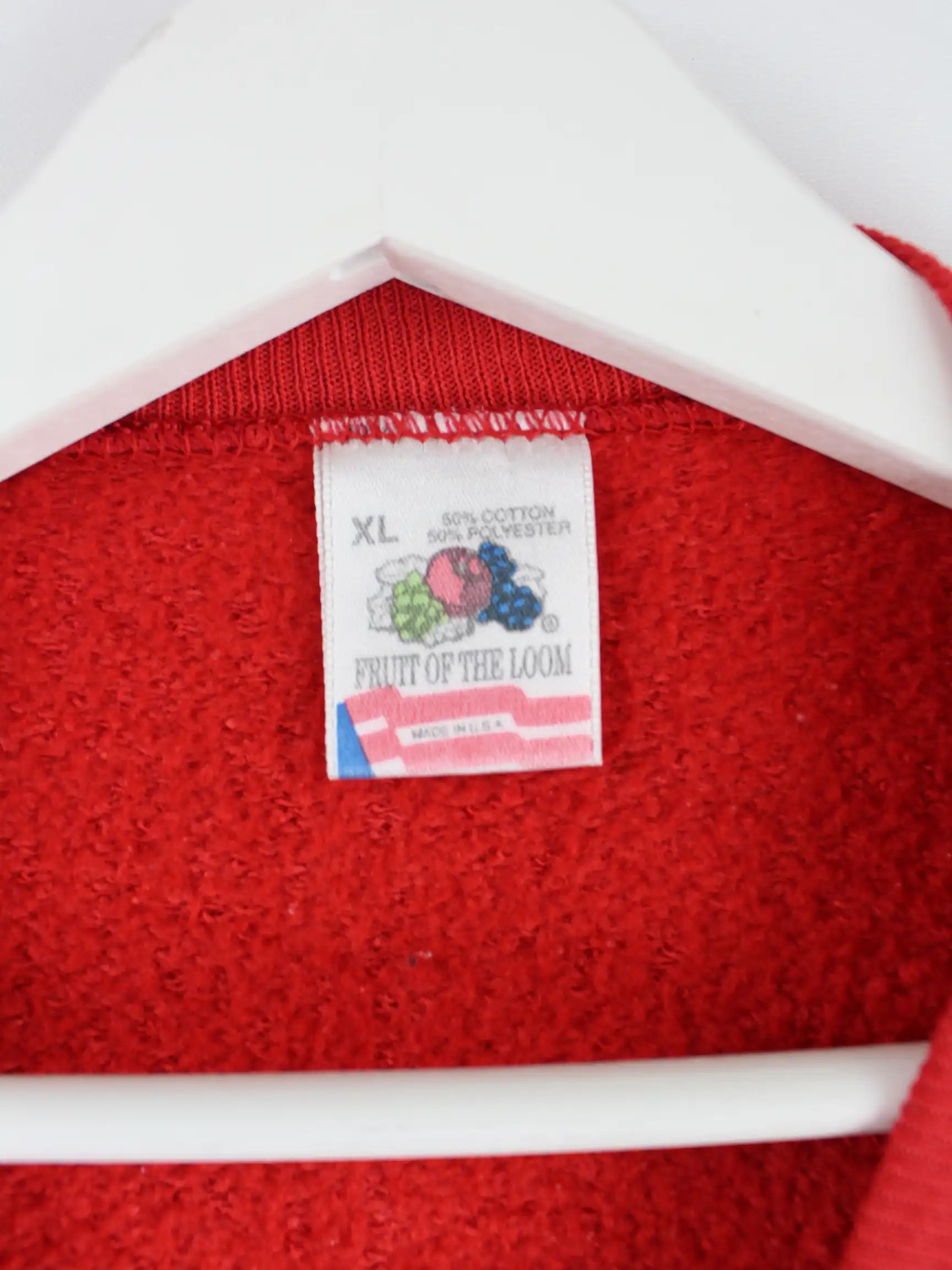 Sweater vom Brand Fruit of the Loom in Größe L aus den 90'ern. Er ist aus einer Baumwollmischung gemacht und in Rot im Angebot. Mit schönem Pennsylvania Print.