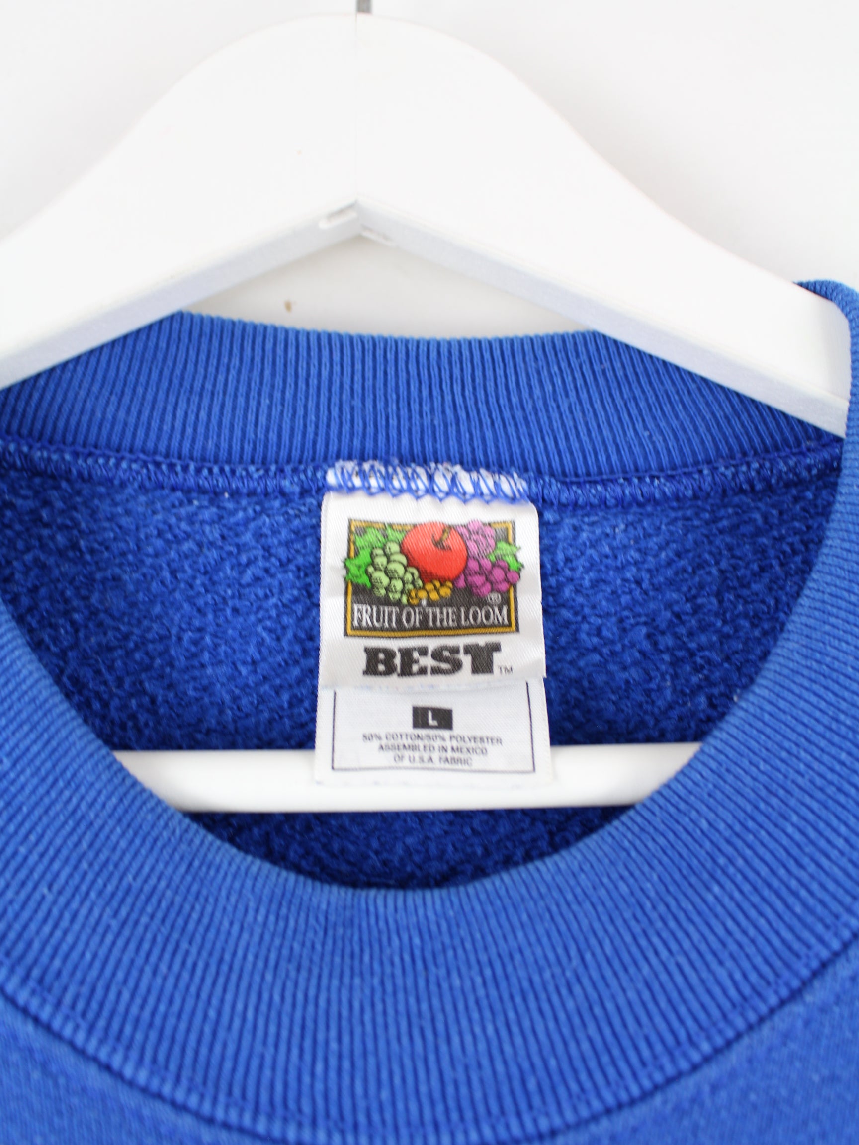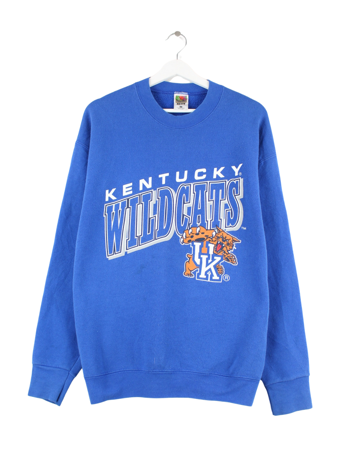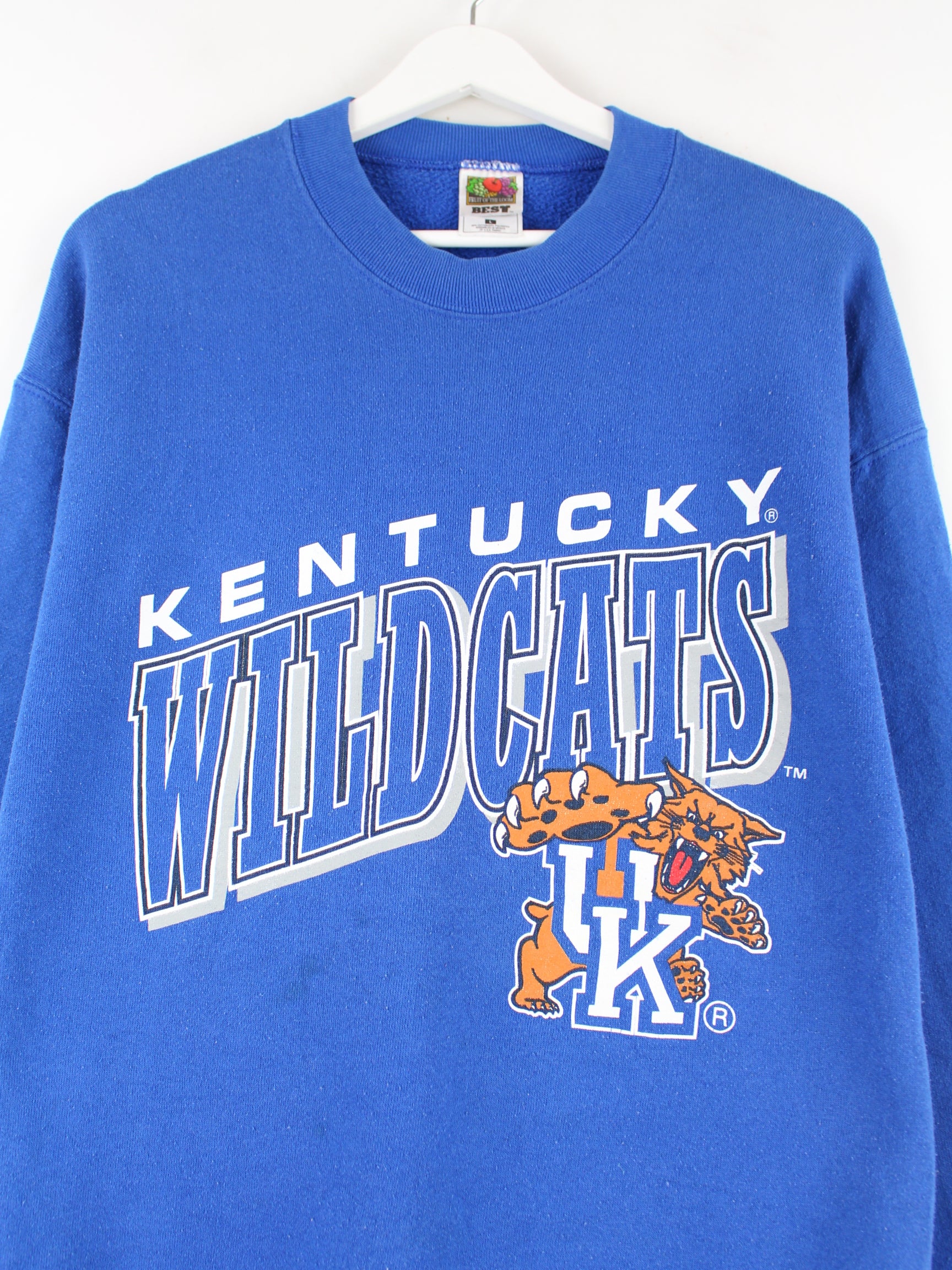 Sweater from the label Fruit of the Loom in size L from the 90's. It is made from a cotton blend and comes in blue. With a great Wildcats print.