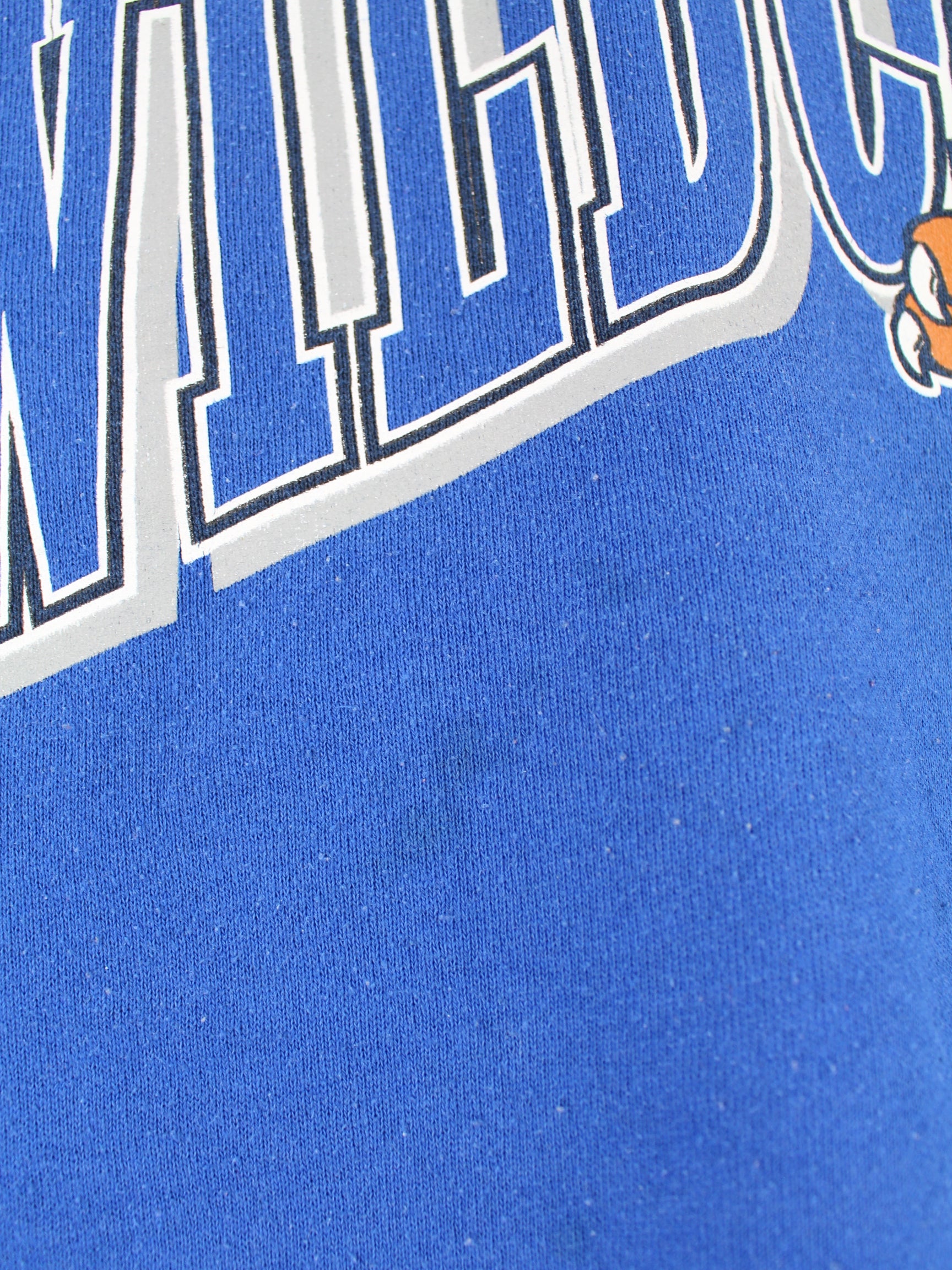 Fruit of the Loom 90s Vintage Wildcats Print Sweater Blue L