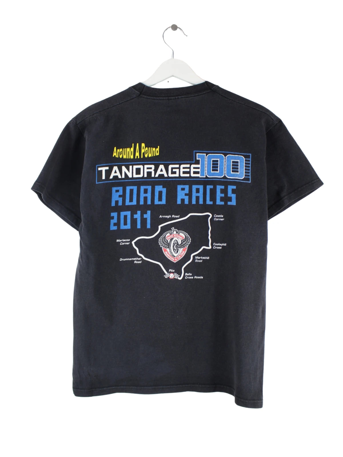 Schwarzes T-Shirt des Labels Fruit of the Loom in Größe M. Es ist aus Baumwolle gemacht und in gutem Zustand zu bekommen. Mit chiquem Racing Print.