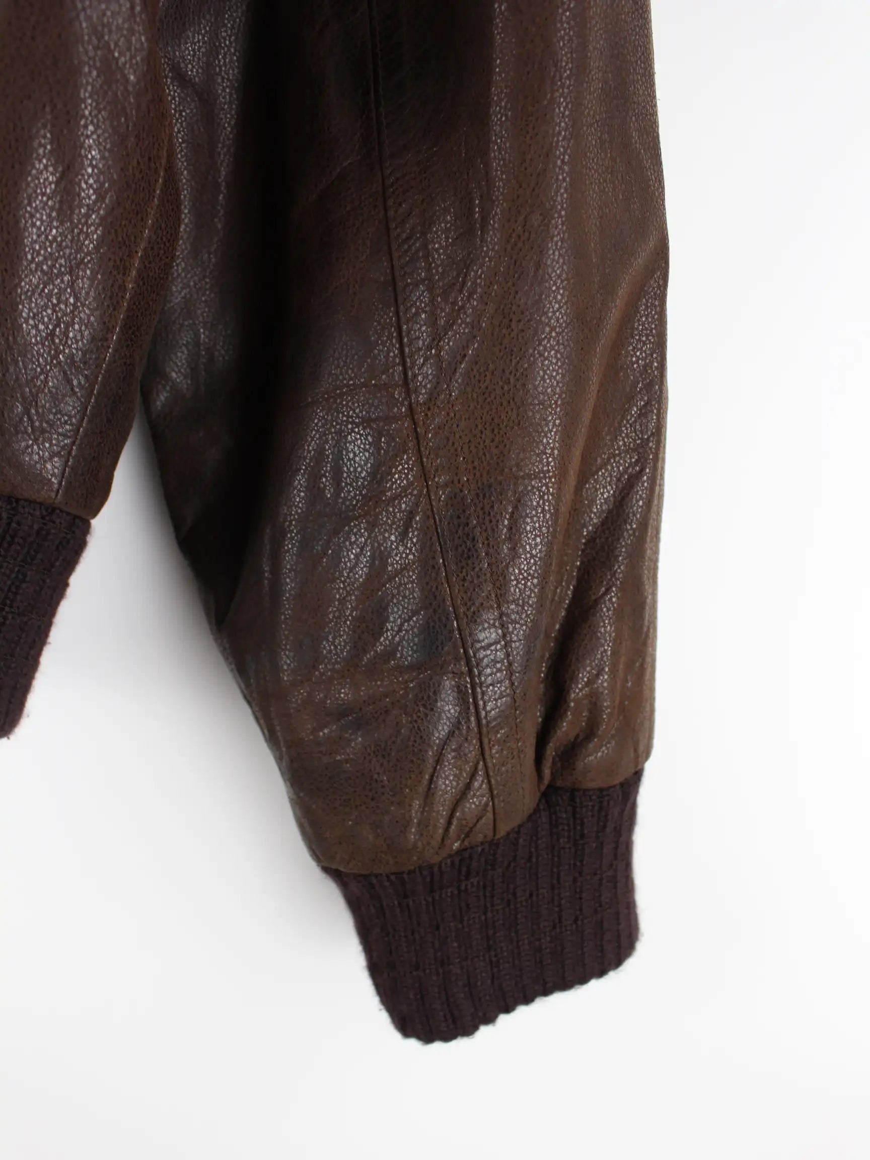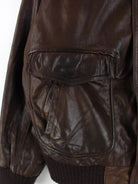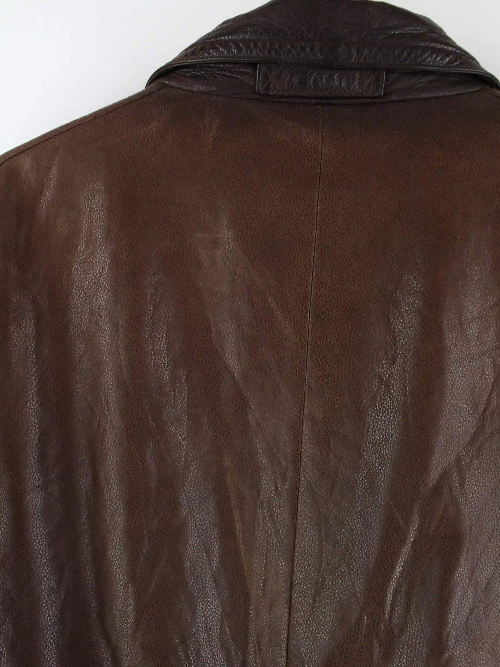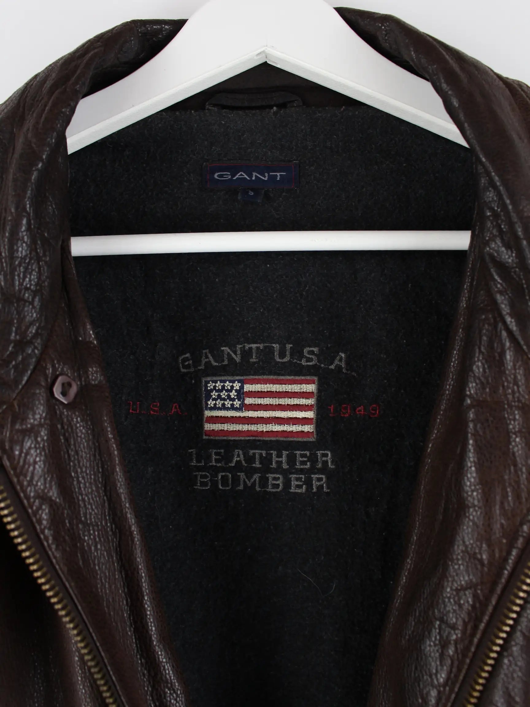 Braune Jacke von Gant aus den 90'ern in Größe L. Sie ist aus Leder gemacht und in gutem Zustand bei uns zu bekommen.