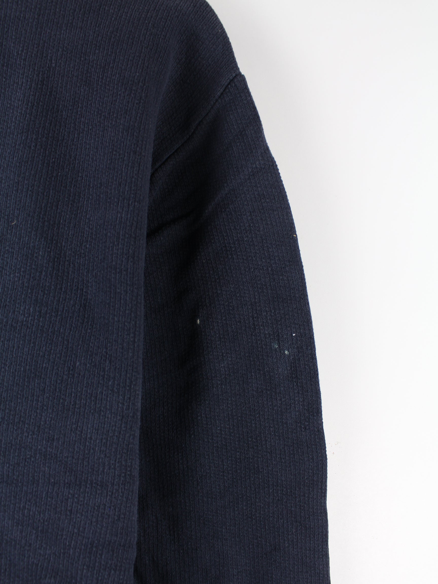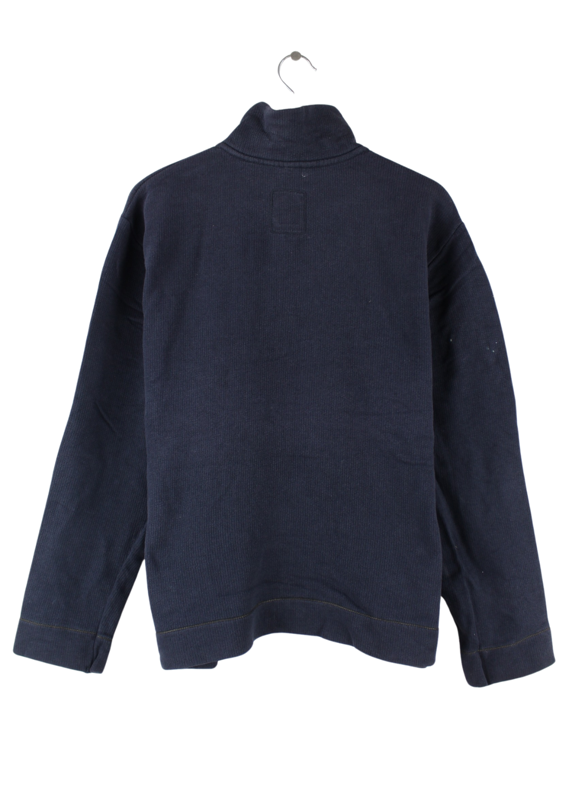Sweater der Marke GAP mit half Zip in Größe L. Er ist aus einer Baumwollmischung angefertigt und in Blau im Bestand.